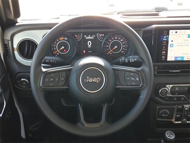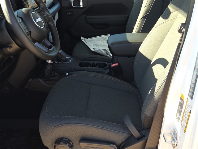 2026 Jeep Wrangler Sport 4D Sport Utility Bright White Clearcoat 4WD 8-Speed Automatic 2.0L I4 DOHC This vehicle comes well equipped with Wrangler Sport, 4D Sport Utility, 2.0L I4 DOHC, 8-Speed Automatic, 4WD, Bright White Clearcoat, Black Cloth, ABS brakes, Compass, Electronic Stability Control, Illuminated entry, Low tire pressure warning, ParkView Rear Back-Up Camera, Remote keyless entry, and Traction control Wrangler Sport, 4D Sport Utility, 2.0L I4 DOHC, 8-Speed Automatic, 4WD, Bright White Clearcoat, Black Cloth, ABS brakes, Compass, Electronic Stability Control, Illuminated entry, Low tire pressure warning, ParkView Rear Back-Up Camera, Remote keyless entry, Traction control, 12.3" Touchscreen Display, 3.45 Overall Top Gear Ratio, 4-Wheel Disc Brakes, 4G LTE Wi-Fi Hot Spot, 8 Speakers, Air Conditioning, AM/FM radio: SiriusXM with 360L, Apple CarPlay, Apple CarPlay/Android Auto, Aux Battery, Brake assist, Cloth Low-Back Bucket Seats, Connectivity - US/Canada, Delay-off headlights, Driver door bin, Driver vanity mirror, Dual front impact airbags, Dual front side impact airbags, For More Info, Call 800-643-2112, Front anti-roll bar, Front Bucket Seats, Front Center Armrest w/Storage, Front fog lights, Front reading lights, Google Android Auto, Integrated Center Stack Radio, Integrated roll-over protection, Non-Lock Fuel Cap Without Discriminator, Normal Duty Suspension, Occupant sensing airbag, Outside temperature display, Overhead airbag, Panic alarm, Passenger door bin, Passenger vanity mirror, Power steering, Power windows, Radio data system, Radio: Uconnect 5 with 12.3" Display, Rear anti-roll bar, Rear reading lights, SiriusXM Radio Service, SiriusXM with 360L, Speed control, Split folding rear seat, Steering wheel mounted audio controls, Stop-Start Dual Battery System, Tachometer, Telescoping steering wheel, Tilt steering wheel, Trip computer, Variably intermittent wipers, and Wheels: 17" x 7.5" Black Steel Styled.