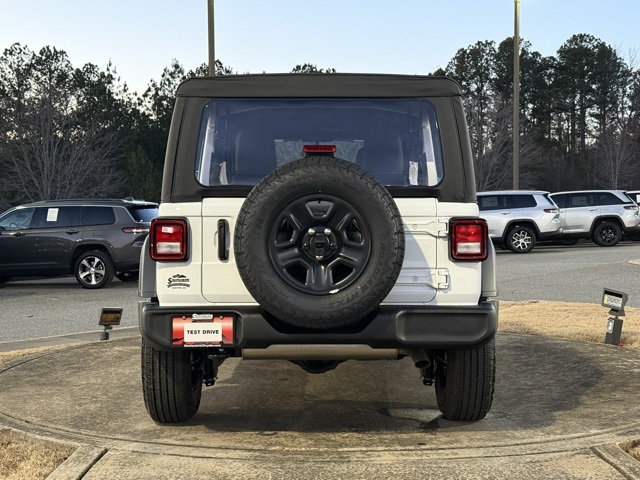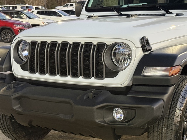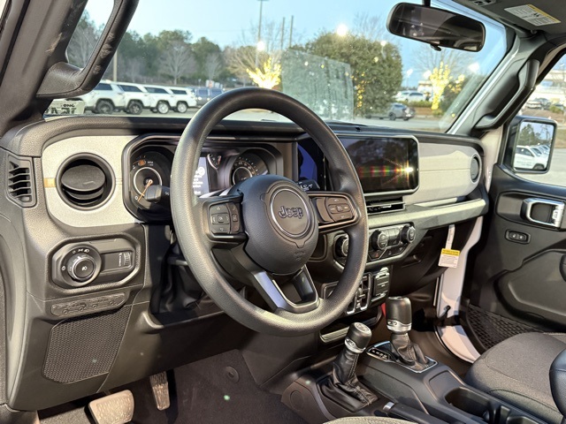 bright white clearcoat 2026 Jeep Wrangler Sport 4D Sport Utility Sport 8-Speed Automatic 2.0L I4 DOHC 4WD PRICE REDUCED TO SELL BY MONTH END, Wrangler Sport, 4D Sport Utility, 2.0L I4 DOHC, 8-Speed Automatic, 4WD, bright white clearcoat, Black Cloth, 12.3" Touchscreen Display, 4-Wheel Disc Brakes, 4G LTE Wi-Fi Hot Spot, 8 Speakers, ABS brakes, Air Conditioning, AM/FM radio: SiriusXM with 360L, Apple CarPlay, Apple CarPlay/Android Auto, Aux Battery, Brake assist, Cloth Low-Back Bucket Seats, Compass, Connectivity - US/Canada, Delay-off headlights, Driver door bin, Driver vanity mirror, Dual front impact airbags, Dual front side impact airbags, Electronic Stability Control, For More Info, Call 800-643-2112, Front anti-roll bar, Front Bucket Seats, Front fog lights, Front reading lights, Google Android Auto, Illuminated entry, Integrated Center Stack Radio, Integrated roll-over protection, Low tire pressure warning, Non-Lock Fuel Cap Without Discriminator, Normal Duty Suspension, Occupant sensing airbag, Outside temperature display, Overhead airbag, Panic alarm, ParkView Rear Back-Up Camera, Passenger vanity mirror, Power steering, Power windows, Quick Order Package 22B Sport, Radio data system, Radio: Uconnect 5 with 12.3" Display, Rear anti-roll bar, Rear reading lights, Remote keyless entry, SiriusXM Radio Service, SiriusXM with 360L, Speed control, Split folding rear seat, Steering wheel mounted audio controls, Stop-Start Dual Battery System, Tachometer, Telescoping steering wheel, Tilt steering wheel, Traction control, Trip computer.