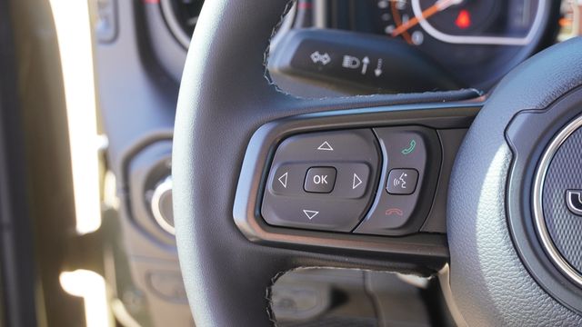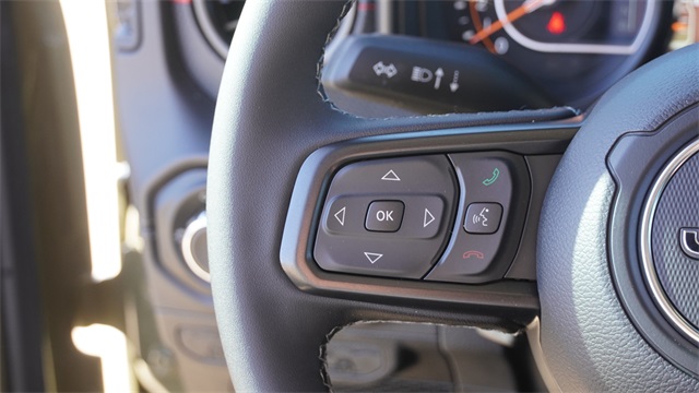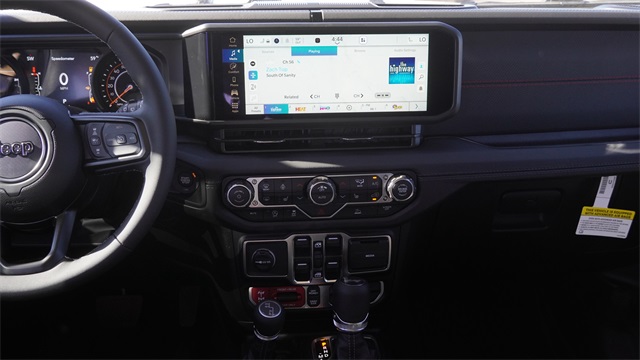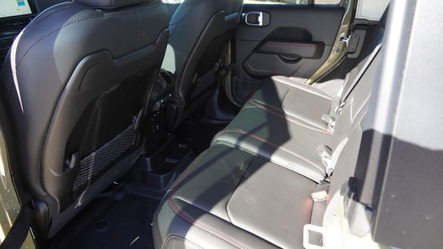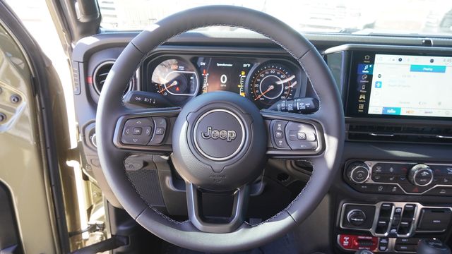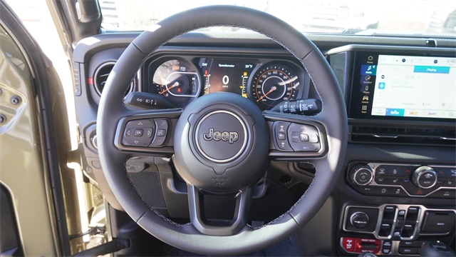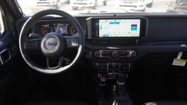 This Wrangler Rubicon comes well equipped with Convenience Group (Heated Front Seats, Heated Steering Wheel, and Universal Garage Door Opener), Quick Order Package 24R Rubicon, 12.3" Touchscreen Display, 4-Wheel Disc Brakes, 4.10 Rear Axle Ratio, 4G LTE Wi-Fi Hot Spot, 8 Speakers, ABS brakes, Air Conditioning, Alloy wheels, AM/FM radio: SiriusXM with 360L, Apple CarPlay, Apple CarPlay/Android Auto, Automatic temperature control, Aux Battery, Auxiliary Switches, Black 3-Piece Hard Top, Brake assist, Class II Receiver Hitch, Cloth Low-Back Bucket Seats, Compass, Connectivity - US/Canada, Delay-off headlights, Driver door bin, Driver vanity mirror, Dual front impact airbags, Dual front side impact airbags, Electronic Stability Control, Emergency communication system: Jeep Connect, For More Info, Call 800-643-2112, Freedom Panel Storage Bag, Front anti-roll bar, Front Bucket Seats, Front Center Armrest w/Storage, Front dual zone A/C, Front fog lights, Front License Plate Bracket, Front reading lights, Fully automatic headlights, Google Android Auto, Heated door mirrors, Illuminated entry, Integrated Center Stack Radio, Integrated roll-over protection, Low tire pressure warning, MOPAR All-Weather Floor Mats, No Soft Top, Non-Lock Fuel Cap Without Discriminator, Occupant sensing airbag, Outside temperature display, Overhead airbag, Panic alarm, ParkView Rear Back-Up Camera, Passenger door bin, Passenger vanity mirror, Performance Suspension, Power door mirrors, Power steering, Power windows, Radio data system, Radio: Uconnect 5 with 12.3" Display, Rear anti-roll bar, Rear reading lights, Rear Window Defroster, Rear Window Wiper/Washer, Remote keyless entry, Security system, SiriusXM Radio Service, SiriusXM with 360L, Speed control, Split folding rear seat, Steering wheel mounted audio controls, Stop-Start Dual Battery System, Tachometer, Telescoping steering wheel, Tilt steering wheel, Traction control, Trip computer, Variably intermittent wipers, Voltmeter, and Wheels: 17" x 7.5" Machined/Painted Black.