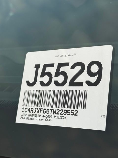 Black Clearcoat 2026 Jeep Wrangler Rubicon 4D Sport Utility Rubicon 8-Speed Automatic 3.6L V6 24V VVT 4WD PRICE REDUCED TO SELL BY MONTH END, 12.3" Touchscreen Display, 35" Tire Suspension, 4-Wheel Disc Brakes, 4.56 Rear Axle Ratio, 4G LTE Wi-Fi Hot Spot, 8 Speakers, ABS brakes, Air Conditioning, Alpine Premium Audio System, AM/FM radio: SiriusXM with 360L, Anti-Lock 4-Wheel Disc Perf Brakes, Apple CarPlay, Apple CarPlay/Android Auto, Auto-Dimming Rear-View Mirror, Automatic temperature control, Aux Battery, Auxiliary Switches, Body Color Rubicon Highline Flare, Brake assist, Class II Receiver Hitch, Cloth Low-Back Bucket Seats, Compass, Connected Travel and Traffic Services, Connectivity - US/Canada, Convenience Group, Delay-off headlights, Driver door bin, Driver vanity mirror, Dual front impact airbags, Dual front side impact airbags, Electronic Stability Control, Emergency communication system: Jeep Connect, For More Info, Call 800-643-2112, Front anti-roll bar, Front Bucket Seats, Front Center Armrest w/Storage, Front dual zone A/C, Front fog lights, Front reading lights, Fully automatic headlights, Google Android Auto, GPS Navigation, HD Radio, Heated door mirrors, Heated Front Seats, Heated Steering Wheel, Illuminated entry, Integrated Center Stack Radio, Integrated Off-Road Camera, Integrated roll-over protection, Integrated Voice Command with Bluetooth, Jeep Trail Rated Kit, Low tire pressure warning, MOPAR All-Weather Floor Mats, MOPAR Hinge-Gate Reinforcement, MOPAR Jack Spacer, MOPAR Tire Relocation Kit, Non-Lock Fuel Cap Without Discriminator, Occupant sensing airbag, Outside temperature display, Overhead airbag, Panic alarm, ParkView Rear Back-Up Camera, Passenger door bin, Passenger vanity mirror, Performance Hood, Performance Suspension, Power door mirrors, Power steering, Power windows, Quick Order Package 24R Rubicon, Radio data system, Radio: Uconnect 5 Navigation with 12.3" Display, Radio: Uconnect 5 with 12.3" Display, Rear anti-roll bar, Rear reading lights, Remote keyless entry, Security system, SiriusXM Radio Service, SiriusXM with 360L, Speed control, Split folding rear seat, Steel Performance Hood Package, Steering wheel mounted audio controls, Stop-Start Dual Battery System, Tachometer, Technology Group, Telescoping steering wheel, Tilt steering wheel, Traction control, Trip computer, Universal Garage Door Opener, Variably intermittent wipers, Voltmeter, Wheel Flare Extensions, Wheels: 17" x 8" Machined with Black Pockets, Xtreme 35 Tire Package.
