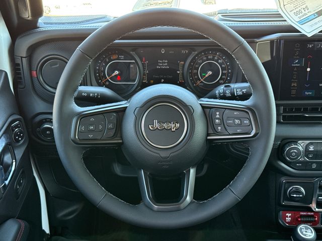 2026 Jeep Wrangler Rubicon X 4D Sport Utility Bright White Clearcoat 4WD 8-Speed Automatic 3.6L V6 24V VVT This vehicle comes well equipped with Quick Order Package 24Y Rubicon X (12.3" Touchscreen Display, 4G LTE Wi-Fi Hot Spot, Acoustic Front Seat Area Carpet, Acoustic Laminated Front Door Glass, Alpine Premium Audio System, Apple CarPlay, Auto High Beam Headlamp Control, Auto-Dimming Rear-View Mirror, Blind Spot and Cross Path Detection, Body Color 3-Piece Hard Top, Body Color Rubicon Highline Flare, Connected Travel and Traffic Services, Connectivity - US/Canada, Freedom Panel Storage Bag, Google Android Auto, HD Radio, Heated Front Seats, Heated Steering Wheel, Integrated Off-Road Camera, Integrated Voice Command with Bluetooth, Leather Wrapped Park Brake Handle, Leather Wrapped Shift Knob, MOPAR Hardtop Headliner, Nappa Leather Seats, No Soft Top, ParkSense Rear Park Assist System, Power 4-Way Driver Lumbar Adjust, Power 4-Way Passenger Lumbar Adjust, Power Adjust 8-Way Driver Seat, Power Adjust 8-Way Front Passenger Seat, Premium Door Trim Panel, Radio: Uconnect 5 Navigation with 12.3" Display, Rear Window Defroster, Rear Window Wiper/Washer, SiriusXM with 360L, Steel Front Bumper, Steel Rear Bumper, and Universal Garage Door Opener), Trailer Tow Prep Package, Wrangler Rubicon X, 4D Sport Utility, 3.6L V6 24V VVT, 4WD, Bright White Clearcoat, and Black Leather Quick Order Package 24Y Rubicon X (12.3" Touchscreen Display, 4G LTE Wi-Fi Hot Spot, Acoustic Front Seat Area Carpet, Acoustic Laminated Front Door Glass, Alpine Premium Audio System, Apple CarPlay, Auto High Beam Headlamp Control, Auto-Dimming Rear-View Mirror, Blind Spot and Cross Path Detection, Body Color 3-Piece Hard Top, Body Color Rubicon Highline Flare, Connected Travel and Traffic Services, Connectivity - US/Canada, Freedom Panel Storage Bag, Google Android Auto, HD Radio, Heated Front Seats, Heated Steering Wheel, Integrated Off-Road Camera, Integrated Voice Command with Bluetooth, Leather Wrapped Park Brake Handle, Leather Wrapped Shift Knob, MOPAR Hardtop Headliner, Nappa Leather Seats, No Soft Top, ParkSense Rear Park Assist System, Power 4-Way Driver Lumbar Adjust, Power 4-Way Passenger Lumbar Adjust, Power Adjust 8-Way Driver Seat, Power Adjust 8-Way Front Passenger Seat, Premium Door Trim Panel, Radio: Uconnect 5 Navigation with 12.3" Display, Rear Window Defroster, Rear Window Wiper/Washer, SiriusXM with 360L, Steel Front Bumper, Steel Rear Bumper, and Universal Garage Door Opener), Trailer Tow Prep Package, Wrangler Rubicon X, 4D Sport Utility, 3.6L V6 24V VVT, 4WD, Bright White Clearcoat, Black Leather, 35" Tire Suspension, 4-Wheel Disc Brakes, 8 Speakers, ABS brakes, Air Conditioning, Alloy wheels, AM/FM radio: SiriusXM with 360L, Apple CarPlay/Android Auto, Automatic temperature control, Aux Battery, Auxiliary Switches, Brake assist, Class II Receiver Hitch, Cloth Low-Back Bucket Seats, Compass, Delay-off headlights, Driver door bin, Driver vanity mirror, Dual front impact airbags, Dual front side impact airbags, Electronic Stability Control, Emergency communication system: Jeep Connect, For More Info, Call 800-643-2112, Front anti-roll bar, Front Bucket Seats, Front Center Armrest w/Storage, Front dual zone A/C, Front fog lights, Front License Plate Bracket, Front reading lights, Fully automatic headlights, Heated door mirrors, Illuminated entry, Integrated Center Stack Radio, Integrated roll-over protection, Jeep Trail Rated Kit, Low tire pressure warning, MOPAR All-Weather Floor Mats, MOPAR Hinge-Gate Reinforcement, Non-Lock Fuel Cap Without Discriminator, Occupant sensing airbag, Outside temperature display, Overhead airbag, Panic alarm, ParkView Rear Back-Up Camera, Passenger door bin, Passenger vanity mirror, Performance Suspension, Power door mirrors, Power steering, Power Top Quarter Window Storage Bag, Power windows, Radio data system, Radio: Uconnect 5 with 12.3" Display, Rear anti-roll bar, Rear reading lights, Remote keyless en