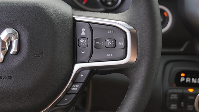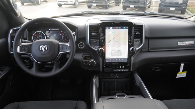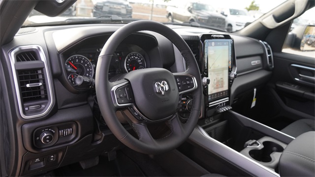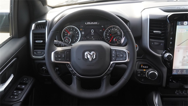 115V Auxiliary Power Outlet, 115V Auxiliary Rear Power Outlet, 12" Touchscreen Display, 2nd Row In Floor Storage Bins, 3 Rear Seat Head Restraints, 4 Way Front Headrests, 400W Inverter, 4G LTE Wi-Fi Hot Spot, 9 Amplified Speakers w/Subwoofer, Accent Color Door Handles, Accent Color Premium Power Mirrors, Accent Color Tailgate Handle, Air Conditioning ATC w/Dual Zone Control, Anti-Spin Differential Rear Axle, Apple CarPlay, Auto Power-Folding Mirrors, Auto-Dimming Exterior Driver Mirror, Auto-Dimming Rear-View Mirror, Big Horn Level 2 Equipment Group, Black Exterior Mirrors, Black Exterior Truck Badging, Black Headlamp Bezels, Black Interior Accents, Black Painted Exterior Mirrors Caps, Black Premium Power Mirrors, Black Tail Lamp Bezels, Body Color Fender Flares, Body Color Front Bumper, Body Color Rear Bumper w/Step Pads, Bucket Seats, Center Console Parts Module, Cluster 7.0" TFT Color Display, Configurable Drive Mode, Connected Travel & Traffic Services, Connectivity - US/Canada, Convex Wide-Angle Exterior Mirror Insert, Deluxe Cloth Bucket Seats, Disassociated Touchscreen Display, Dual Exhaust w/Black Tips, Exterior Mirrors Courtesy Lamps, Exterior Mirrors w/Heating Element, Exterior Mirrors w/Supplemental Signals, Front Seat Back Map Pockets, Full Length Floor Console, Global Telematics Box Module (TBM), Glove Box Lamp, Google Android Auto, GPS Antenna Input, GPS Navigation, Grille Black Surround Black Mesh, HD Radio, Heated Front Seats, Heated Steering Wheel, Integrated Center Stack Radio, Integrated Voice Command w/Bluetooth, Leather Wrapped Steering Wheel, LED Dome Lamp w/On/Off Switch, LED Footwell Lighting, Lone Star Badge, Manual Adjust 4-Way Front Passenger Seat, Media Hub w/2 Charge Only USBs, Night Edition, Overhead LED Lamps, Power 2-Way Driver Lumbar Adjust, Power Adjust 8-Way Driver Seat, Power Adjustable Pedals, Premium Overhead Console, Quick Order Package 27R Lone Star (Regional), Radio: Uconnect 5 Nav w/12.0" Display, RAM Grille Badge - Black, Rear 60/40 Folding Seat, Rear Center Armrest, Rear Power Sliding Window, Rear Window Defroster, Remote Tailgate Release, Security Alarm, SiriusXM Radio Service, SiriusXM w/360L, Steering Wheel Mounted Audio Controls, Sun Visors w/Illuminated Vanity Mirrors, Universal Garage Door Opener, USB Host Flip, Wheels: 20" x 9.0" Aluminum Painted Clad, Wheels: 20" x 9" Aluminum Chrome Clad (WRK).