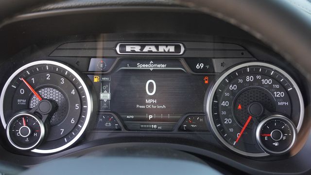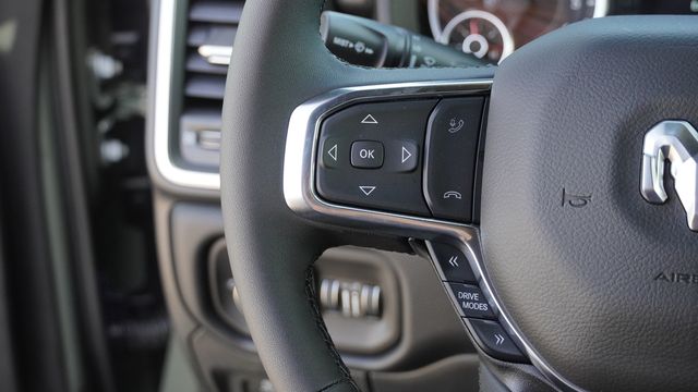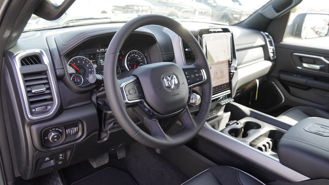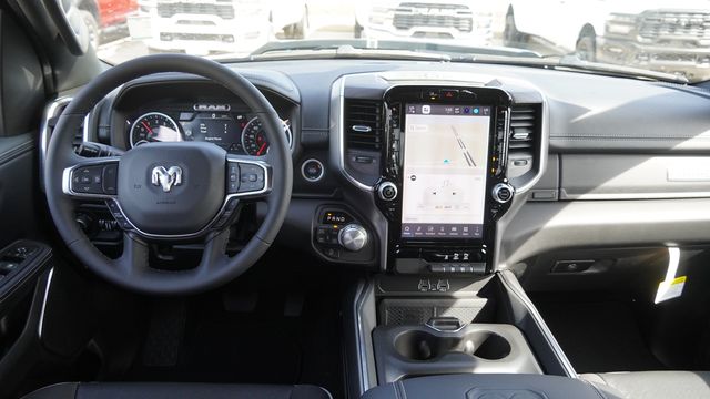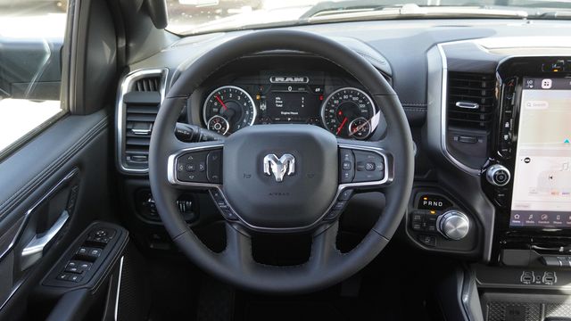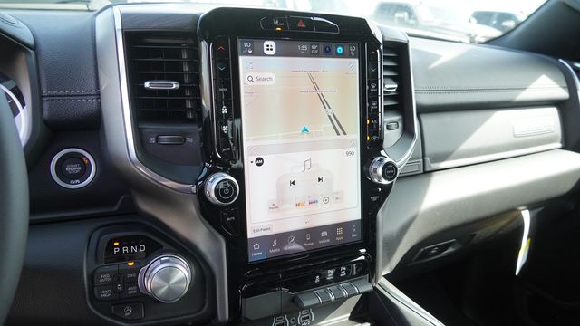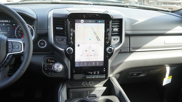 This 1500 Laramie comes well equipped with Bed Utility Group (Exterior 115V AC Outlet, MOPAR 4 Adjustable Cargo Tie-Down Hooks, and MOPAR Spray in Bedliner), Laramie Level 1 Equipment Group (Rain Sensitive Windshield Wipers and Remote Tailgate Release), Night Edition (Accent Color Door Handles, Accent Color Premium Power Mirrors, Accent Color Tailgate Handle, Anti-Spin Differential Rear Axle, Auto Power-Folding Mirrors, Auto-Dimming Exterior Driver Mirror, Black Exterior Truck Badging, Black Headlamp Bezels, Black Interior Accents, Black Painted Exterior Mirrors Caps, Black Tail Lamp Bezels, Body Color Front Bumper, Body Color Rear Bumper with Step Pads, Convex Wide-Angle Exterior Mirror Insert, Dual Exhaust with Black Tips, Exterior Mirrors Approach Lamps, Exterior Mirrors Courtesy Lamps, Exterior Mirrors with Heating Element, Exterior Mirrors with Memory, Exterior Mirrors with Supplemental Signals, Grille Surround 3 Black Texture 2 Black, Pirelli Brand Tires, Proximity Approach/Departure Lamps, RAM Grille Badge - Black, Sport Performance Hood, and Wheels: 22" x 9" Forged Aluminum), Quick Order Package 21H Laramie, 10 Speakers, 3.55 Rear Axle Ratio, 4-Wheel Disc Brakes, 4G LTE Wi-Fi Hot Spot, ABS brakes, Active Noise Control System, Adjustable pedals, Air Conditioning, Alloy wheels, AM/FM radio: SiriusXM with 360L, Apple CarPlay/Android Auto, Audio memory, Auto High-beam Headlights, Auto-dimming door mirrors, Auto-dimming Rear-View mirror, Automatic temperature control, Brake assist, Bumpers: chrome, Chrome Exterior Mirrors, Compass, Connected Travel and Traffic Services, Connectivity - US/Canada, Delay-off headlights, Dome Dual LED Reading Lamp, Driver door bin, Driver vanity mirror, Dual front impact airbags, Dual front side impact airbags, Dual-Pane Panoramic Sunroof, Electronic Stability Control, Front anti-roll bar, Front Bucket Seats, Front Center Armrest w/Storage, Front dual zone A/C, Front fog lights, Front License Plate Bracket, Front reading lights, Front wheel independent suspension, Fully automatic headlights, Garage door transmitter, GPS Navigation, Heated door mirrors, Heated front seats, Heated rear seats, Heated steering wheel, Illuminated entry, Integrated Center Stack Radio, Integrated Voice Command with Bluetooth, Leather steering wheel, Leather Trimmed Bucket Seats, LED Dome/Reading Lamp, Low tire pressure warning, Memory seat, Navigation System, Occupant sensing airbag, Off-Road Information Pages, Outside temperature display, Overhead airbag, Overhead console, Panic alarm, ParkView Rear Back-Up Camera, Passenger door bin, Passenger vanity mirror, Pedal memory, Power door mirrors, Power driver seat, Power passenger seat, Power steering, Power windows, Radio data system, Radio: Uconnect 5 Navigation with 12.0" Display, RAM Grille Badge - Chrome, Rear anti-roll bar, Rear reading lights, Rear seat center armrest, Rear step bumper, Rear Wheelhouse Liners, Remote keyless entry, Security system, SiriusXM Radio Service, SiriusXM with 360L, Speed control, Split folding rear seat, Steering wheel mounted audio controls, Tachometer, Telescoping steering wheel, Tilt steering wheel, Traction control, Trip computer, Turn signal indicator mirrors, USB Host Flip, Variably intermittent wipers, Ventilated front seats, Voltmeter, and Wheels: 20" x 9" Premium Paint/Polish.