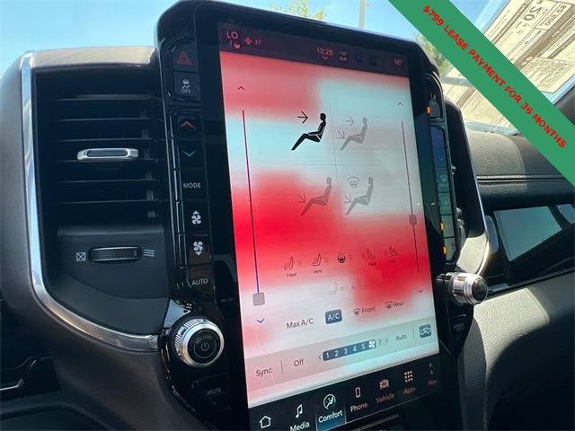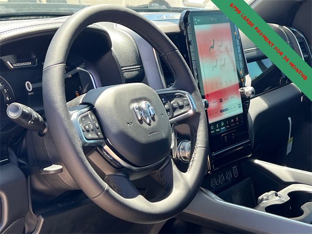 This 1500 Laramie comes well equipped with Laramie Level 2 Equipment Group (14.4" Touchscreen Display, 4G LTE Wi-Fi Hot Spot, Cluster 12" TFT Color Display, Connectivity - US/Canada, Front Passenger Interactive Display, GPS Navigation, Integrated Center Stack Radio, Power Tailgate, Rain Sensitive Windshield Wipers, SiriusXM Radio Service, and USB Host Flip), Night Edition (Accent Color Door Handles, Accent Color Premium Power Mirrors, Accent Color Tailgate Handle, Anti-Spin Differential Rear Axle, Auto Power-Folding Mirrors, Auto-Dimming Exterior Driver Mirror, Black Exterior Truck Badging, Black Headlamp Bezels, Black Interior Accents, Black Painted Exterior Mirrors Caps, Black Tail Lamp Bezels, Body Color Front Bumper, Convex Wide-Angle Exterior Mirror Insert, Exterior Mirrors Approach Lamps, Exterior Mirrors Courtesy Lamps, Grille Surround 3 Black Texture 2 Black, Pirelli Brand Tires, Proximity Approach/Departure Lamps, RAM Grille Badge - Black, Sport Performance Hood, and Wheels: 22" x 9" Forged Aluminum), Quick Order Package 21H Laramie, 1500 Laramie, 4D Crew Cab, 3.0L I6, 8-Speed Automatic, 4WD, Bright White Clearcoat, Black Leather, 10 Speakers, 3.55 Rear Axle Ratio, 4-Wheel Disc Brakes, ABS brakes, Air Conditioning, Alloy wheels, AM/FM radio: SiriusXM with 360L, Apple CarPlay/Android Auto, Audio memory, Auto High-beam Headlights, Auto-dimming door mirrors, Auto-dimming Rear-View mirror, Automatic temperature control, Brake assist, Bumpers: chrome, Chrome Exterior Mirrors, Compass, Delay-off headlights, Dome Dual LED Reading Lamp, Driver door bin, Driver vanity mirror, Dual front impact airbags, Dual front side impact airbags, Dual-Pane Panoramic Sunroof, Electronic Stability Control, Front anti-roll bar, Front Bucket Seats, Front Center Armrest w/Storage, Front dual zone A/C, Front fog lights, Front License Plate Bracket, Front reading lights, Front wheel independent suspension, Fully automatic headlights, Garage door transmitter, Heated door mirrors, Heated front seats, Heated rear seats, Heated steering wheel, Illuminated entry, Leather steering wheel, Leather Trimmed Bucket Seats, LED Dome/Reading Lamp, Low tire pressure warning, Memory seat, Navigation System, Occupant sensing airbag, Off-Road Information Pages, Outside temperature display, Overhead airbag, Overhead console, Panic alarm, ParkView Rear Back-Up Camera, Passenger door bin, Passenger vanity mirror, Power door mirrors, Power driver seat, Power passenger Price includes: $2000 - 2026 National Holiday Select Inventory Bonus Cash. Exp. 01/05/2026 $3500 - 2026 National Retail Consumer