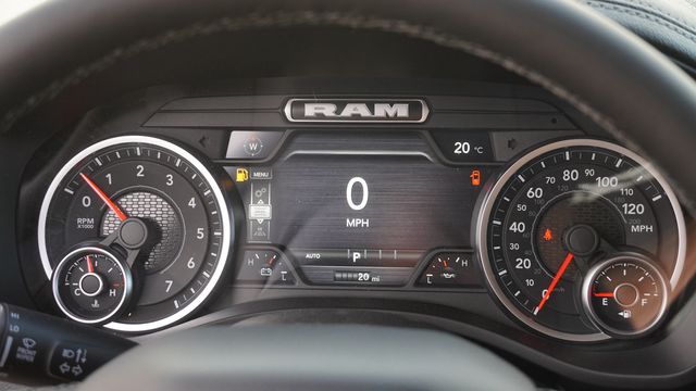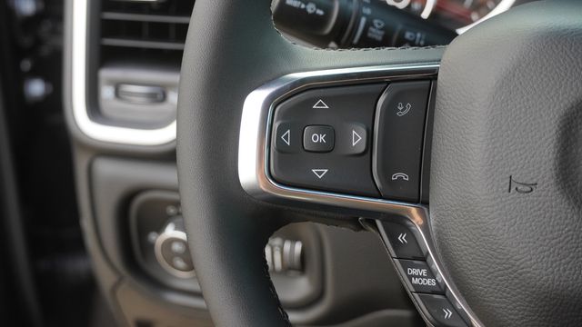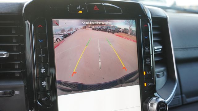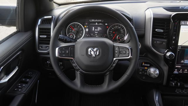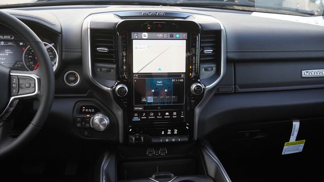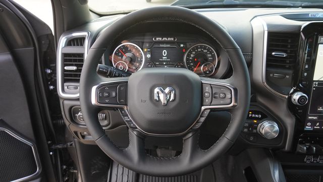 This 1500 Laramie comes well equipped with Bed Utility Group (Exterior 115V AC Outlet, MOPAR 4 Adjustable Cargo Tie-Down Hooks, and MOPAR Spray in Bedliner), Laramie Level 1 Equipment Group (Rain Sensitive Windshield Wipers and Remote Tailgate Release), Night Edition (Accent Color Door Handles, Accent Color Premium Power Mirrors, Accent Color Tailgate Handle, Anti-Spin Differential Rear Axle, Auto Power-Folding Mirrors, Auto-Dimming Exterior Driver Mirror, Black Exterior Truck Badging, Black Headlamp Bezels, Black Interior Accents, Black Painted Exterior Mirrors Caps, Black Tail Lamp Bezels, Body Color Front Bumper, Body Color Rear Bumper with Step Pads, Convex Wide-Angle Exterior Mirror Insert, Dual Exhaust with Black Tips, Exterior Mirrors Approach Lamps, Exterior Mirrors Courtesy Lamps, Exterior Mirrors with Heating Element, Exterior Mirrors with Memory, Exterior Mirrors with Supplemental Signals, Grille Surround 3 Black Texture 2 Black, Pirelli Brand Tires, Proximity Approach/Departure Lamps, RAM Grille Badge - Black, Sport Performance Hood, and Wheels: 22" x 9" Forged Aluminum), Quick Order Package 27H Laramie, 10 Speakers, 4-Wheel Disc Brakes, 4G LTE Wi-Fi Hot Spot, ABS brakes, Active Noise Control System, Adjustable pedals, Air Conditioning, Alloy wheels, AM/FM radio: SiriusXM with 360L, Apple CarPlay/Android Auto, Audio memory, Auto High-beam Headlights, Auto-dimming door mirrors, Auto-dimming Rear-View mirror, Automatic temperature control, Brake assist, Bumpers: chrome, Chrome Exterior Mirrors, Compass, Connected Travel and Traffic Services, Connectivity - US/Canada, Delay-off headlights, Dome Dual LED Reading Lamp, Driver door bin, Driver vanity mirror, Dual front impact airbags, Dual front side impact airbags, Dual-Pane Panoramic Sunroof, Electronic Stability Control, Front anti-roll bar, Front Bucket Seats, Front Center Armrest w/Storage, Front dual zone A/C, Front fog lights, Front License Plate Bracket, Front reading lights, Front wheel independent suspension, Fully automatic headlights, Garage door transmitter, GPS Navigation, Heated door mirrors, Heated front seats, Heated rear seats, Heated steering wheel, Illuminated entry, Integrated Center Stack Radio, Integrated Voice Command with Bluetooth, Leather steering wheel, Leather Trimmed Bucket Seats, LED Dome/Reading Lamp, Low tire pressure warning, Memory seat, MOPAR Front and Rear Rubber Floor Mats, Navigation System, Occupant sensing airbag, Off-Road Information Pages, Outside temperature display, Overhead airbag, Overhead console, Panic alarm, ParkView Rear Back-Up Camera, Passenger door bin, Passenger vanity mirror, Pedal memory, Power door mirrors, Power driver seat, Power passenger seat, Power steering, Power windows, Radio data system, Radio: Uconnect 5 Navigation with 12.0" Display, RAM Grille Badge - Chrome, Rear anti-roll bar, Rear reading lights, Rear seat center armrest, Rear step bumper, Rear Wheelhouse Liners, Remote keyless entry, Security system, SiriusXM Radio Service, SiriusXM with 360L, Speed control, Split folding rear seat, Steering wheel mounted audio controls, Tachometer, Telescoping steering wheel, Tilt steering wheel, Traction control, Trailer Brake Control, Trip computer, Turn signal indicator mirrors, USB Host Flip, Variably intermittent wipers, Ventilated front seats, Voltmeter, and Wheels: 20" x 9" Premium Paint/Polish.