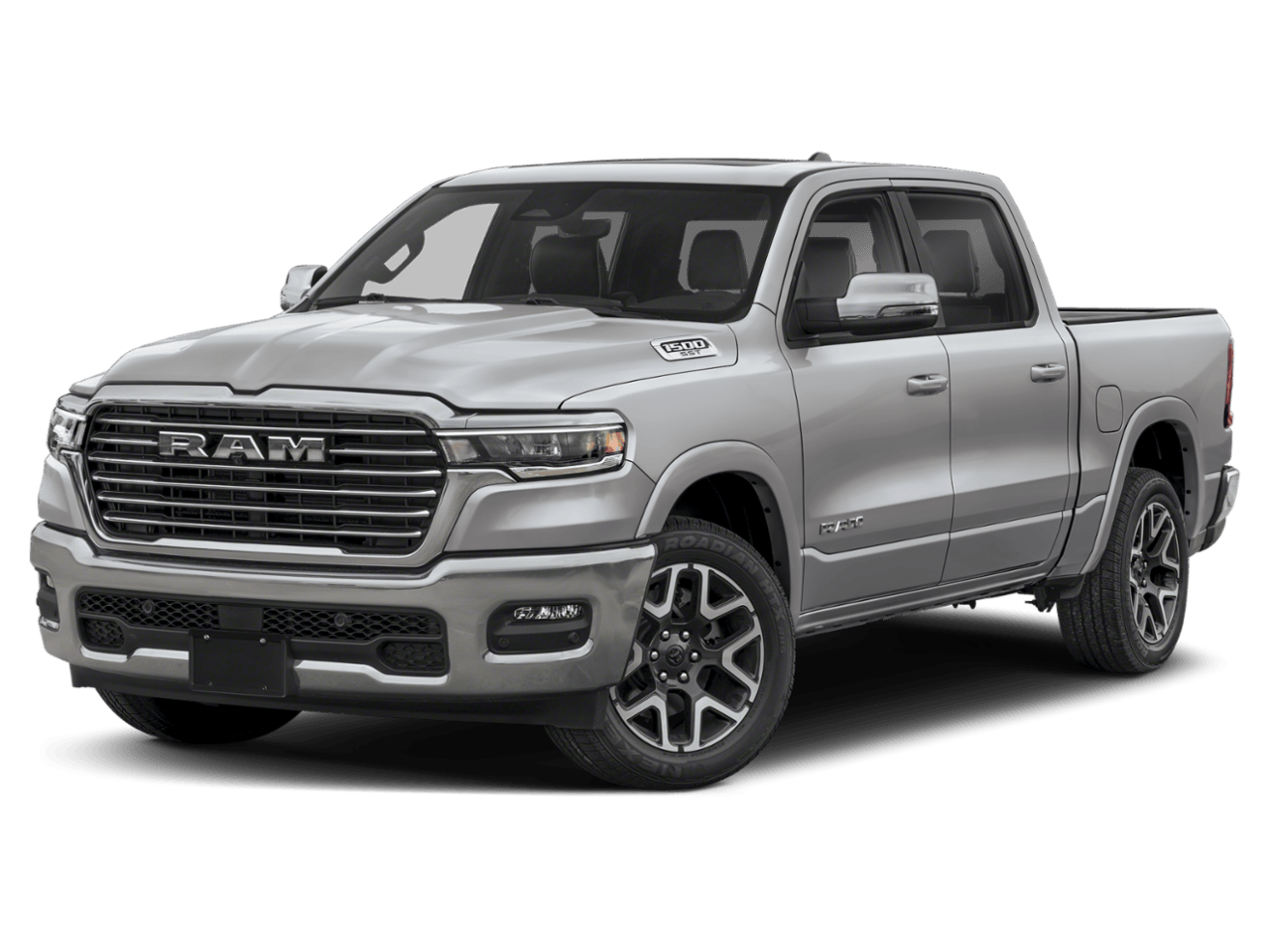 Silver Zynith 2026 Ram 1500 Laramie 4D Crew Cab HEMI 5.7L V8 Multi Displacement VVT eTorque 4WD 8-Speed Automatic