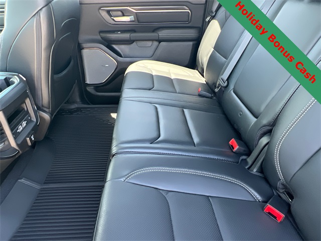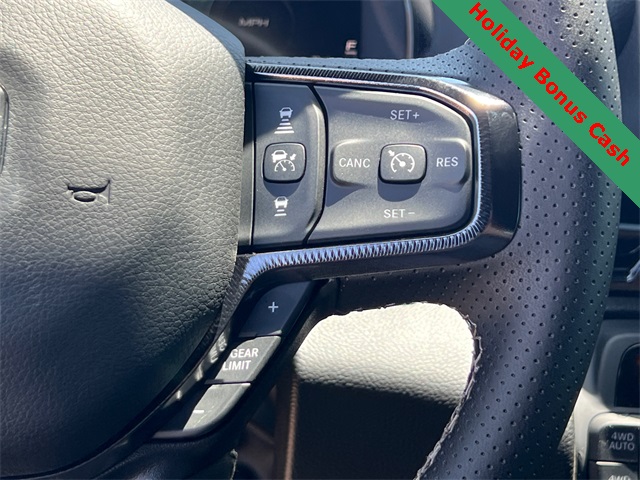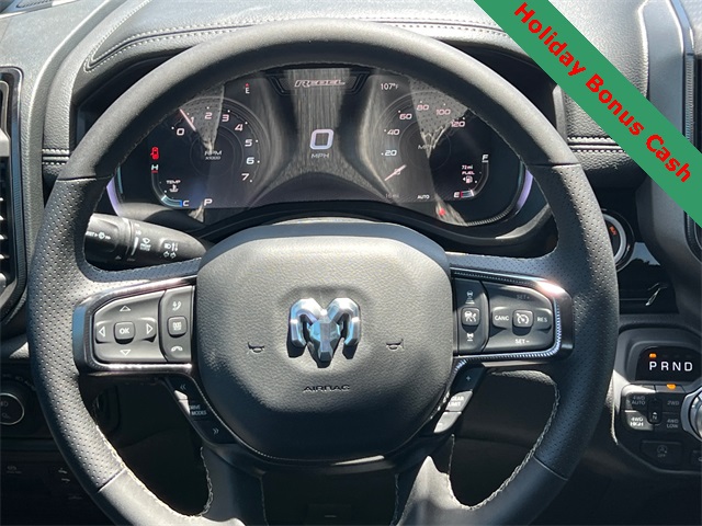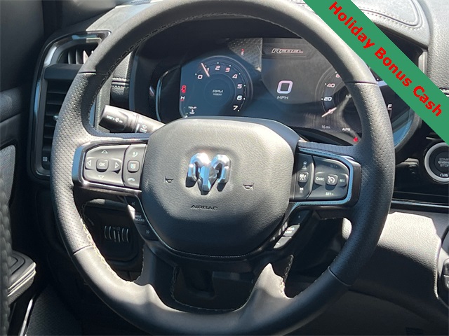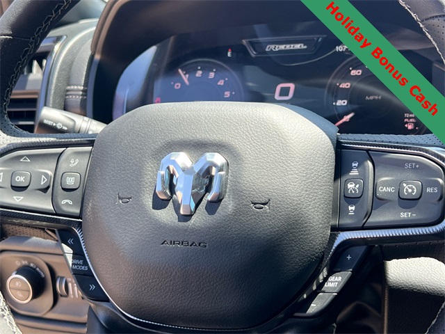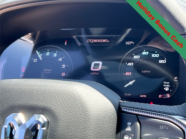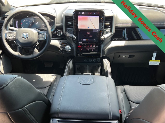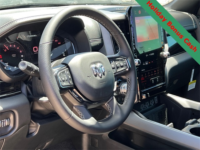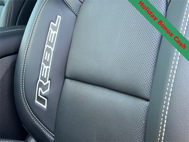 This 1500 Rebel comes well equipped with Bed Utility Group (Exterior 115V AC Outlet and MOPAR 4 Adjustable Cargo Tie-Down Hooks), Quick Order Package 21W Rebel, Rebel Level 2 Equipment Group (115V Auxiliary Rear Power Outlet, 14.4" Touchscreen Display, 2-Door Passive Entry, Front Door Locks, 4G LTE Wi-Fi Hot Spot, Accent Color Door Handles, Accent Color Premium Power Mirrors, Accent Color Tailgate Handle, Apple CarPlay, Auto Power-Folding Mirrors, Auto-Dimming Exterior Driver Mirror, Black Painted Exterior Mirrors Caps, Connectivity - US/Canada, Convex Wide-Angle Exterior Mirror Insert, Disassociated Touchscreen Display, Driver Seat Memory, Dual Wireless Charging Pad, Exterior Mirrors Approach Lamps, Exterior Mirrors Courtesy Lamps, Front Passenger Interactive Display, Google Android Auto, GPS Antenna Input, GPS Navigation, HD Radio, Heated Second Row Seats, Integrated Center Stack Radio, Off-Road Information Pages, Power 2-Way Passenger Lumbar Adjust, Power Adjust 8-Way Front Passenger Seat, Power Tailgate, Proximity Approach/Departure Lamps, Radio/Driver Seat/Mirrors/Pedals Memory, Rain Sensitive Windshield Wipers, Rear Window Defroster, Security Alarm, SiriusXM Radio Service, and USB Host Flip), 1500 Rebel, 4D Crew Cab, 3.0L I6, 8-Speed Automatic, 4WD, Granite Crystal Metallic Clearcoat, Black Leather, Wheels: 18" x 8.0" Painted Mid-Gloss Black, 10 Speakers, 3.92 Rear Axle Ratio, 33 Gallon Fuel Tank, 4 Way Front Headrests, 4-Wheel Disc Brakes, ABS brakes, Air Conditioning, Alloy wheels, AM/FM radio: SiriusXM with 360L, Apple CarPlay/Android Auto, Auto High-beam Headlights, Auto-dimming Rear-View mirror, Automatic temperature control, Black Exterior Mirrors, Brake assist, Bucket Seats, Cloth/Vinyl Bucket Seats, Compass, Delay-off headlights, Dome Dual LED Reading Lamp, Driver door bin, Driver vanity mirror, Dual front impact airbags, Dual front side impact airbags, Dual-Pane Panoramic Sunroof, Electronic Stability Control, Front anti-roll bar, Front Bucket Seats, Front Center Armrest w/Storage, Front dual zone A/C, Front fog lights, Front License Plate Bracket, Front reading lights, Front Seat Back Map Pockets, Front wheel independent suspension, Full Length Upgraded Floor Console, Fully automatic headlights, Garage door transmitter, Heated door mirrors Price includes: $2000 - 2026 National Holiday Select Inventory Bonus Cash. Exp. 01/05/2026 $3500 - 2026 National Retail Consumer