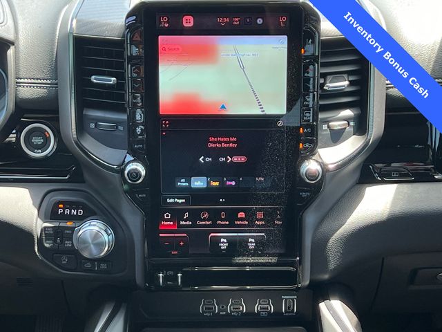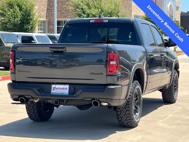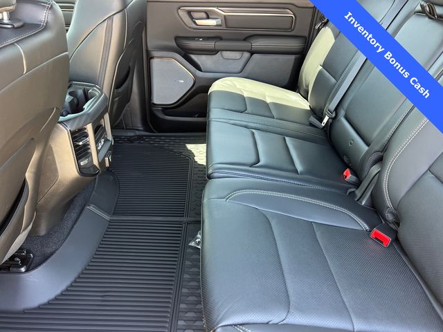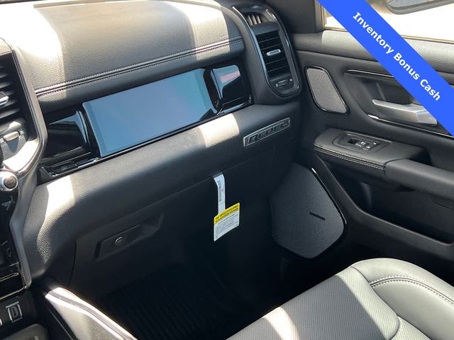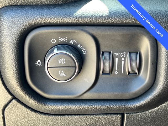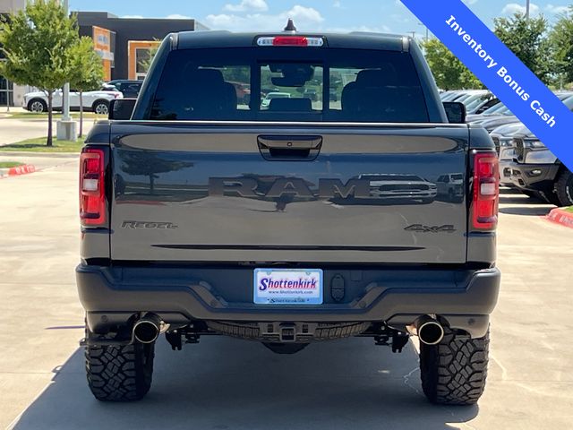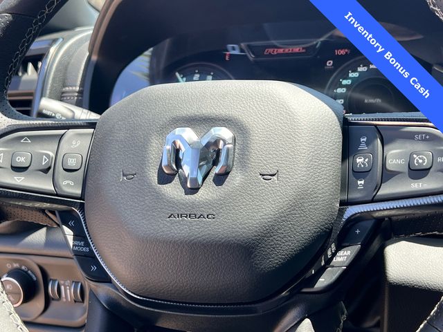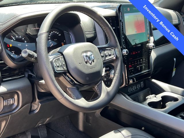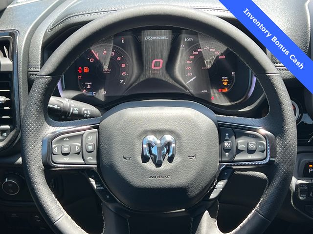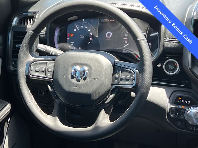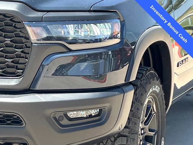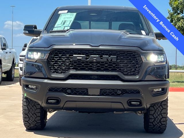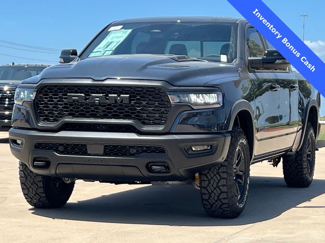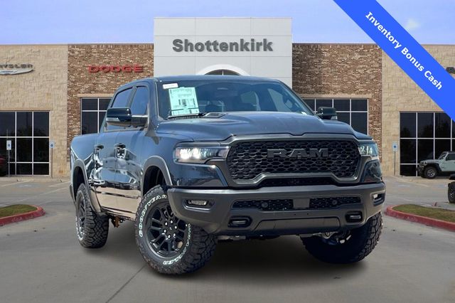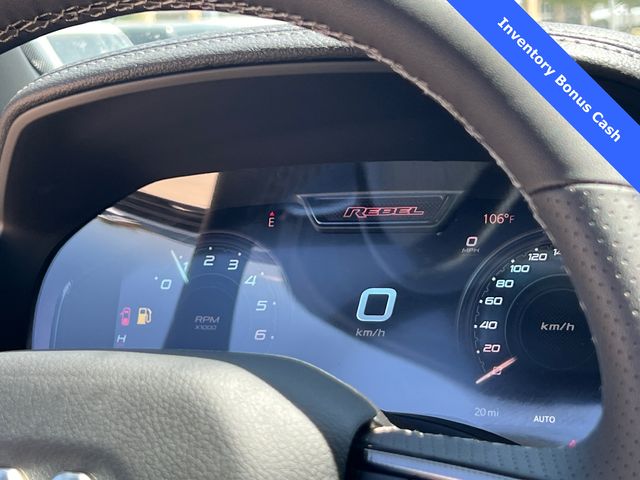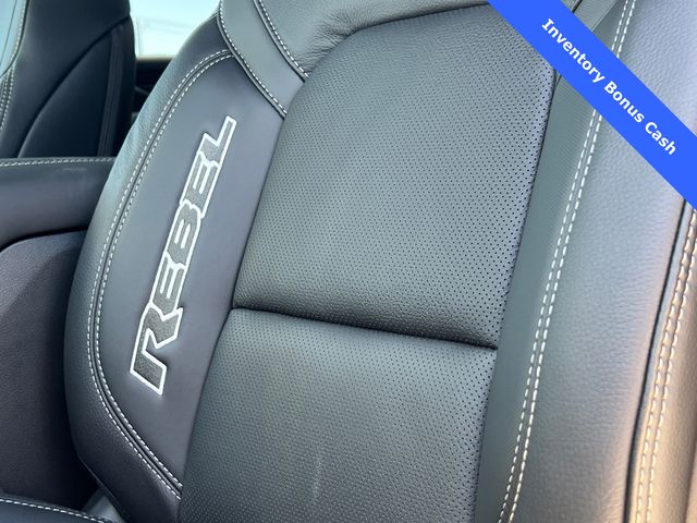 This 1500 Rebel comes well equipped with Bed Utility Group (Exterior 115V AC Outlet and MOPAR 4 Adjustable Cargo Tie-Down Hooks), Quick Order Package 21W Rebel, Rebel Level 2 Equipment Group (115V Auxiliary Rear Power Outlet, 14.4" Touchscreen Display, 2-Door Passive Entry, Front Door Locks, 4G LTE Wi-Fi Hot Spot, Accent Color Door Handles, Accent Color Premium Power Mirrors, Accent Color Tailgate Handle, Apple CarPlay, Auto Power-Folding Mirrors, Auto-Dimming Exterior Driver Mirror, Black Painted Exterior Mirrors Caps, Connectivity - US/Canada, Convex Wide-Angle Exterior Mirror Insert, Disassociated Touchscreen Display, Driver Seat Memory, Dual Wireless Charging Pad, Exterior Mirrors Approach Lamps, Exterior Mirrors Courtesy Lamps, Front Passenger Interactive Display, Google Android Auto, GPS Antenna Input, GPS Navigation, HD Radio, Heated Second Row Seats, Integrated Center Stack Radio, Off-Road Information Pages, Power 2-Way Passenger Lumbar Adjust, Power Adjust 8-Way Front Passenger Seat, Power Tailgate, Proximity Approach/Departure Lamps, Radio/Driver Seat/Mirrors/Pedals Memory, Rain Sensitive Windshield Wipers, Rear Window Defroster, Security Alarm, SiriusXM Radio Service, and USB Host Flip), 1500 Rebel, 4D Crew Cab, 3.0L I6, 8-Speed Automatic, 4WD, Forged Blue Metallic, Black Leather, Wheels: 18" x 8.0" Painted Mid-Gloss Black, 10 Speakers, 3.92 Rear Axle Ratio, 33 Gallon Fuel Tank, 4 Way Front Headrests, 4-Wheel Disc Brakes, ABS brakes, Air Conditioning, Alloy wheels, AM/FM radio: SiriusXM with 360L, Apple CarPlay/Android Auto, Auto High-beam Headlights, Auto-dimming Rear-View mirror, Automatic temperature control, Black Exterior Mirrors, Brake assist, Bucket Seats, Cloth/Vinyl Bucket Seats, Compass, Delay-off headlights, Dome Dual LED Reading Lamp, Driver door bin, Driver vanity mirror, Dual front impact airbags, Dual front side impact airbags, Dual-Pane Panoramic Sunroof, Electronic Stability Control, Front anti-roll bar, Front Bucket Seats, Front Center Armrest w/Storage, Front dual zone A/C, Front fog lights, Front License Plate Bracket, Front reading lights, Front Seat Back Map Pockets, Front wheel independent suspension, Full Length Upgraded Floor Console, Fully automatic headlights, Garage door transmitter, Price includes: $1000 - 2026 National Bonus Cash . Exp. 03/31/2026 $1000 - 2026 Southwest BC State of Texas Regional Bonus Cash . Exp. 03/31/2026 $3500 - 2026 National Retail Consumer