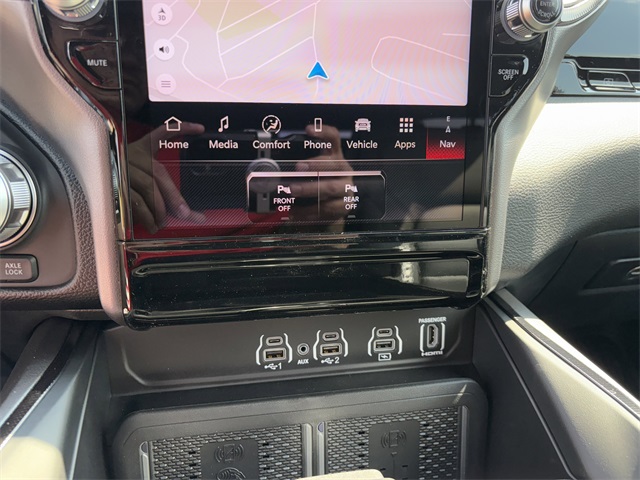 Diamond Black Crystal Pearlcoat 2026 Ram 1500 Rebel 4D Crew Cab Rebel 8-Speed Automatic 3.0L I6 4WD 10 Speakers, 115V Auxiliary Rear Power Outlet, 14.4" Touchscreen Display, 2-Door Passive Entry, Front Door Locks, 4 Way Front Headrests, 4-Wheel Disc Brakes, 4G LTE Wi-Fi Hot Spot, ABS brakes, Accent Color Door Handles, Accent Color Premium Power Mirrors, Accent Color Tailgate Handle, Air Conditioning, AM/FM radio: SiriusXM with 360L, Apple CarPlay, Apple CarPlay/Android Auto, Auto High-beam Headlights, Auto Power-Folding Mirrors, Auto-Dimming Exterior Driver Mirror, Auto-dimming Rear-View mirror, Automatic temperature control, Black Exterior Mirrors, Black Painted Exterior Mirrors Caps, Brake assist, Bucket Seats, Cloth/Vinyl Bucket Seats, Compass, Connectivity - US/Canada, Convex Wide-Angle Exterior Mirror Insert, Delay-off headlights, Disassociated Touchscreen Display, Driver door bin, Driver Seat Memory, Driver vanity mirror, Dual front impact airbags, Dual front side impact airbags, Dual Wireless Charging Pad, Electronic Stability Control, Exterior Mirrors Approach Lamps, Exterior Mirrors Courtesy Lamps, Front anti-roll bar, Front Bucket Seats, Front Center Armrest w/Storage, Front dual zone A/C, Front fog lights, Front Passenger Interactive Display, Front reading lights, Front Seat Back Map Pockets, Front wheel independent suspension, Full Length Upgraded Floor Console, Fully automatic headlights, Garage door transmitter, Google Android Auto, GPS Antenna Input, GPS Navigation, HD Radio, Heated door mirrors, Heated Front Seats, Heated front seats, Heated Second Row Seats, Heated Steering Wheel, Heated steering wheel, Illuminated entry, Integrated Center Stack Radio, Leather steering wheel, Low tire pressure warning, Manual Folding Exterior Mirrors, Navigation System, Occupant sensing airbag, Off-Road Information Pages, Outside temperature display, Overhead airbag, Overhead console, Panic alarm, ParkView Rear Back-Up Camera, Passenger door bin, Passenger vanity mirror, Power 2-Way Driver Lumbar Adjust, Power 2-Way Passenger Lumbar Adjust, Power Adjust 8-Way Driver Seat, Power Adjust 8-Way Front Passenger Seat, Power door mirrors, Power driver seat, Power steering, Power Tailgate, Power windows, Proximity Approach/Departure Lamps, Quick Order Package 21W Rebel, Radio data system, Radio/Driver Seat/Mirrors/Pedals Memory, Rain Sensitive Windshield Wipers, Rear 60/40 Folding Seat, Rear anti-roll bar, Rear seat center armrest, Rear step bumper, Rear Window Defroster, Rebel Level 2 Equipment Group, Remote keyless entry, Security Alarm, SiriusXM Radio Service, Speed control, Split folding rear seat, Tachometer, Telescoping steering wheel, Tilt steering wheel, Traction control, Trip computer, USB Host Flip, Variably intermittent wipers, Voltmeter.