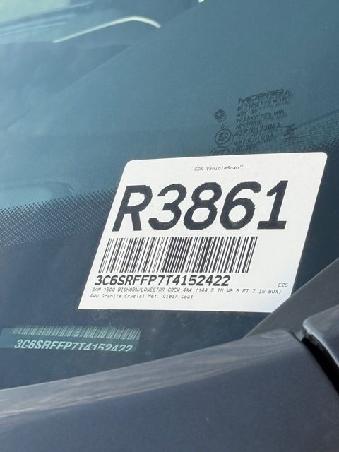 Granite Crystal Metallic Clearcoat 2026 Ram 1500 Big Horn/Lone Star 4D Crew Cab Big Horn/Lone Star 8-Speed Automatic 3.0L I6 4WD PRICE REDUCED TO SELL BY MONTH END, 115V Auxiliary Power Outlet, 115V Auxiliary Rear Power Outlet, 12" Touchscreen Display, 3 Rear Seat Head Restraints, 4 Way Front Headrests, 4-Wheel Disc Brakes, 400W Inverter, 48V Belt Starter Generator, 4G LTE Wi-Fi Hot Spot, 6 Speakers, ABS brakes, Accent Color Door Handles, Accent Color Premium Power Mirrors, Accent Color Tailgate Handle, Air Conditioning, AM/FM radio, Anti-Spin Differential Rear Axle, Apple CarPlay, Apple CarPlay/Android Auto, Auto High-beam Headlights, Auto Power-Folding Mirrors, Auto-Dimming Exterior Driver Mirror, Auto-Dimming Rear-View Mirror, Big Horn Level 2 Equipment Group, Black Exterior Mirrors, Black Exterior Truck Badging, Black Headlamp Bezels, Black Interior Accents, Black Painted Exterior Mirrors Caps, Black Premium Power Mirrors, Black Tail Lamp Bezels, Body Color Fender Flares, Body Color Front Bumper, Brake assist, Bucket Seats, Bumpers: chrome, Center Console Parts Module, Cloth Bucket Seats, Cluster 7.0" TFT Color Display, Compass, Configurable Drive Mode, Connectivity - US/Canada, Convex Wide-Angle Exterior Mirror Insert, Delay-off headlights, Deluxe Cloth Bucket Seats, Disassociated Touchscreen Display, Driver door bin, Dual front impact airbags, Dual front side impact airbags, Electronic Stability Control, Exterior Mirrors Courtesy Lamps, Front anti-roll bar, Front Bucket Seats, Front fog lights, Front reading lights, Front Seat Back Map Pockets, Front wheel independent suspension, Full Length Floor Console, Fully automatic headlights, Glove Box Lamp, Google Android Auto, GPS Antenna Input, GPS Navigation, Grille Black Surround Black Mesh, HD Radio, Heated door mirrors, Heated Front Seats, Heated Steering Wheel, Illuminated entry, Integrated Center Stack Radio, Leather Wrapped Steering Wheel, LED Footwell Lighting, Low tire pressure warning, Manual Adjust 4-Way Driver Seat, Manual Adjust 4-Way Front Passenger Seat, Manual Folding Exterior Mirrors, Night Edition, Occupant sensing airbag, Outside temperature display, Overhead airbag, Overhead console, Overhead LED Lamps, Panic alarm, ParkView Rear Back-Up Camera, Passenger vanity mirror, Power 2-Way Driver Lumbar Adjust, Power Adjust 8-Way Driver Seat, Power Adjustable Pedals, Power door mirrors, Power steering, Power windows, Premium Overhead Console, Quick Order Package 21Z Big Horn, Radio data system, RAM Grille Badge - Black, RAM Grille Badge - Chrome, Rear 60/40 Folding Seat, Rear anti-roll bar, Rear Center Armrest, Rear Power Sliding Window, Rear step bumper, Rear Wheelhouse Liners, Rear Window Defroster, Remote keyless entry, Remote Tailgate Release, Security Alarm, SiriusXM Radio Service, Speed control, Steering Wheel Mounted Audio Controls, Supplier Part Tracking (J-1), Tachometer, Telescoping steering wheel, Tilt steering wheel, Traction control, Trip computer, Universal Garage Door Opener, USB Host Flip, Voltmeter, Wheels: 20" x 9.0" Aluminum Painted Clad.