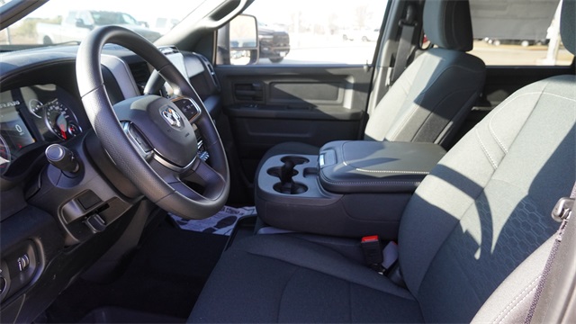 This 2500 Tradesman comes well equipped with Quick Order Package 24A Tradesman, Tradesman Level 1 Equipment Group (115-Volt Auxiliary Front Power Outlet, 12" Touchscreen Display, 400W Inverter, 4G LTE Wi-Fi Hot Spot, Air Conditioning ATC with Dual Zone Control, Alexa Built-in, Apple CarPlay, Auto-Dimming Rear-View Mirror, Connected Travel and Traffic Services, Connectivity - US/Canada, Disassociated Touchscreen Display, Emergency Vehicle Alert System (EVAS), Exterior 115V AC Outlet, For Details, Visit DriveUconnect.com, For More Info, Call 800-643-2112, Global Telematics Box Module, Google Android Auto, GPS Antenna Input, GPS Navigation, HD Radio, Integrated Voice Command with Bluetooth, Off-Road Info Pages, Radio: Uconnect 5 Navigation with 12.0" Display, Rear Power Sliding Window, Selectable Tire Fill Alert, SiriusXM Radio Service, SiriusXM with 360L, Tinted Acoustic Windshield Glass, and Trailer Tow Pages), 2 Way Rear Headrest Seat, 4 Way Front Headrests, 4-Wheel Disc Brakes, 40/20/40 Split Bench Seat, 5th Wheel/Gooseneck Towing Prep Group, 6 Speakers, ABS brakes, Air Conditioning, AM/FM radio: SiriusXM, Anti-Spin Differential Rear Axle, Apple CarPlay/Android Auto, Black Exterior Mirrors, Black Wheel Center Hub, Brake assist, Clearance Lamps, Compass, Delay-off headlights, Driver door bin, Dual front impact airbags, Dual front side impact airbags, Electronic Stability Control, Front anti-roll bar, Front Armrest with Cupholders, Front Center Armrest w/Storage, Front fog lights, Front License Plate Bracket, Front reading lights, Fully automatic headlights, Illuminated entry, Low tire pressure warning, Manual Adjust 4-Way Driver Seat, Manual Adjust 4-Way Front Passenger Seat, Manual Folding Exterior Mirrors, Manual Telescoping Mirrors, Mopar Black Tubular Side Steps, MOPAR Front and Rear Rubber Floor Mats, Occupant sensing airbag, Outside temperature display, Overhead airbag, Overhead console, Panic alarm, ParkView Rear Back-Up Camera, Passenger door bin, Passenger vanity mirror, Power steering, Power windows, Radio data system, Radio: Uconnect 5 with 8.4" Display, Rear anti-roll bar, Rear Folding Seat, Rear step bumper, Rear Wheelhouse Liners, Rear window defroster, Remote keyless entry, Remote USB Port - Charge Only, Speed control, Storage Tray, Tachometer, Tilt steering wheel, Traction control, Variably intermittent wipers, Voltmeter, Wheels: 17" x 7.5" Black Steel Styled, and Wheels: 18" x 8.0" Black Painted SteeL.
