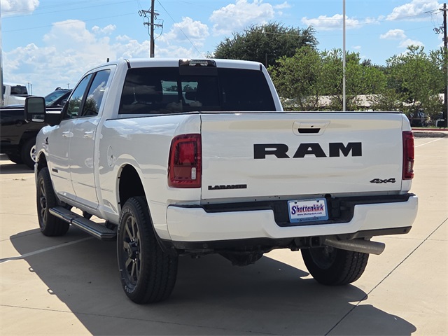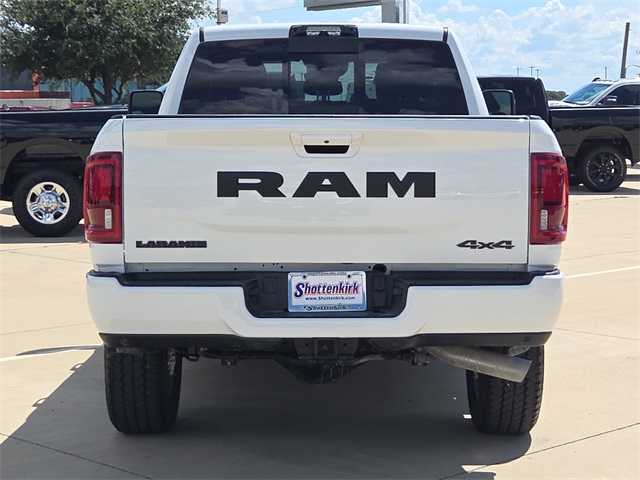 2026 Ram 2500 Laramie 4D Crew Cab Bright White Clearcoat 4WD 8-Speed Automatic 6.7L I6 This vehicle comes well equipped with 2500 Laramie, 4D Crew Cab, 4WD, Bright White Clearcoat, and Black Leather Laramie Level 1 Plus Equipment Group (#1 Seat Foam Cushion, 115V Auxiliary Rear Power Outlet, 2 Way Rear Headrest Seat, 2nd Row In Floor Storage Bins, 4 Way Front Headrests, Active Lane Management System, Adaptive Steering System, Anti-Spin Differential Rear Axle, Auto Adjust In Reverse Exterior Mirrors, Auto Dim Exterior Mirror, Auto High Beam Headlamp Control, Auto Power-Folding Mirrors, Auto-Dimming Exterior Passenger Mirror, Bucket Seats, Chrome Exterior Mirrors, CTR Stop Lamp w/Cargo View Camera, Drowsy Driver Detection, Dual Wireless Charging Pad, Exterior Mirrors Courtesy Lamps, Exterior Mirrors w/Heating Element, Exterior Mirrors w/Memory, Exterior Mirrors w/Supplemental Signals, Foam Bottle Insert (Door Trim Panel), Folding Flat Load Floor Storage, Forward & Reverse Utility Lights, Front Seat Back Map Pockets, Full Length Upgraded Floor Console, Heated Front Seats, Heated Second Row Seats, Heated Steering Wheel, High Back Seats, Leather Trimmed Bucket Seats, LED Bed Lighting, Mirror Running Lights, MOPAR Deployable Bed Step, MOPAR Spray In Bedliner, Power 2-Way Driver Lumbar Adjust, Power 2-Way Passenger Lumbar Adjust, Power Adjust 8-Way Driver Seat, Power Adjust 8-Way Front Passenger Seat, Power Adjust Mirrors, Power Adjustable Pedals w/Memory, Power Heated Fold Telescopic Mirrors w/Memory, Power Telescoping Mirrors, Power-Adjustable Convex Aux Mirrors, Radio/Driver Seat/Mirrors/Pedals Memory, Rain Sensitive Windshield Wipers, Rear 60/40 Folding Seat, Remote Tailgate Release, Traffic Sign Recognition, and Ventilated Front Seats), Night Edition (Black Exterior Mirrors, Black Exterior Truck Badging, Black Wheel Center Hub, Body Color Grille-Surround, Gloss Black Grille Billets/Accents, Sport Performance Hood, and Wheels: 20" x 8.0" Black Painted Aluminum), Quick Order Package 24H Laramie, Towing Technology Group (Surround View Camera System, Trailer Reverse Guidance, and Trailer Tire Pressure Monitoring System), 2500 Laramie, 4D Crew Cab, 4WD, Bright White Clearcoat, Black Leather, 10 Speakers, 4-Wheel Disc Brakes, 4G LTE Wi-Fi Hot Spot, ABS brakes, Air Conditioning, Alexa Built-In, Alloy wheels, AM/FM radio: SiriusXM with 360L, Apple CarPlay, Apple CarPlay/Android Auto, Auto-dimming Rear-View mirror, Automatic temperature control, Brake assist, Bumpers: body-color, Clearance Lamps, Compass, Connected Travel & Traffic Services, Connectivity - US/Canada, Delay-off headlights, Disassociated Touchscreen Display, Driver door bin, Driver vanity mirror, Dual Alternators Rated at 480 Amps, Dual front impact airbags, Dual front side impact airbags, Electronic Stability Control, Emergency Vehicle Alert System (EVAS), For Details, Visit DriveUconnect.com, For More Info, Call 800-643-2112, Front anti-roll bar, Front Center Armrest w/Storage, Front dual zone A/C, Front fog lights, Front License Plate Bracket, Front reading lights, Fully automatic headlights, Garage door transmitter, Global Telematics Box Module (TBM), Google Android Auto, GPS Antenna Input, GPS Navigation, HD Radio, Heated door mirrors, Heated front seats, Heated steering wheel, Illuminated entry, Integrated Voice Command w/Bluetooth, Leather Trim 40/20/40 Bench Seat, Low tire pressure warning, Navigation System, Occupant sensing airbag, Off-Road Info Pages, Outside temperature display, Overhead airbag, Overhead console, Painted Flat Wheel-to-Wheel Side Steps, Panic alarm, ParkView Rear Back-Up Camera, Passenger door bin, Passenger vanity mirror, Power door mirrors, Power driver seat, Power passenger seat, Power steering, Power windows, Radio data system, Radio: Uconnect 5 Nav w/12.0" Display, Rear anti-roll bar, Rear reading lights, Rear seat center armrest, Rear step bumper, Rear window defroster, Price includes: $1000 - 2026 National Bonus Cash . Exp. 11/03/2025