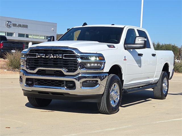 2026 Ram 2500 Tradesman 4D Crew Cab Bright White Clearcoat 4WD 8-Speed Automatic 6.7L I6 This vehicle comes well equipped with Bed Convenience Group (LED Bed Lighting and MOPAR Spray in Bedliner), Quick Order Package 24A Tradesman, Tradesman Level 2 Equipment Group (115-Volt Auxiliary Front Power Outlet, 12" Touchscreen Display, 2 Way Rear Headrest Seat, 4 Way Front Headrests, 40/20/40 Split Bench Seat, 400W Inverter, 4G LTE Wi-Fi Hot Spot, Air Conditioning ATC with Dual Zone Control, Alexa Built-in, Anti-Spin Differential Rear Axle, Apple CarPlay, Auto-Dimming Rear-View Mirror, Black Exterior Mirrors, Bright Front Bumper, Bright Rear Bumper, Carpet Floor Covering, Center Hub, Chrome Grille Surround, Cloth 40/20/40 Bench Seat, Connected Travel and Traffic Services, Connectivity - US/Canada, Disassociated Touchscreen Display, Emergency Vehicle Alert System (EVAS), Exterior 115V AC Outlet, Exterior Mirrors Courtesy Lamps, Exterior Mirrors with Heating Element, Exterior Mirrors with Supplemental Signals, For Details, Visit DriveUconnect.com, For More Info, Call 800-643-2112, Front and Rear Floor Mats, Front Armrest with Cupholders, Global Telematics Box Module, Google Android Auto, GPS Antenna Input, GPS Navigation, HD Radio, Integrated Voice Command with Bluetooth, Manual Adjust 4-Way Driver Seat, Manual Adjust 4-Way Front Passenger Seat, Manual Folding Exterior Mirrors, Manuarl Telescoping Mirrors, Matte Black Mesh Grille with Chrome, Mirror Running Lights, Mopar Black Tubular Side Steps, Off-Road Info Pages, ParkSense Front/Rear Park Assist System, Power Adjust Mirrors, Power Heated Folding Telescope Mirrors, Power-Adjustable Convex Aux Mirrors, Radio: Uconnect 5 Navigation with 12.0" Display, Rear Folding Seat, Rear Power Sliding Window, Remote USB Port - Charge Only, Selectable Tire Fill Alert, SiriusXM Radio Service, SiriusXM with 360L, Storage Tray, Tinted Acoustic Windshield Glass, Trailer Tow Pages, and Wheels: 18" x 8.0" Steel Chrome Clad), 4-Wheel Disc Brakes, 5th Wheel/Gooseneck Towing Prep Group, 6 Speakers, ABS brakes, Air Conditioning, AM/FM radio: SiriusXM, Apple CarPlay/Android Auto, Black Wheel Center Hub, Brake assist, Compass, Delay-off headlights, Driver door bin, Dual front impact airbags, Dual front side impact airbags, Electronic Stability Control, Front anti-roll bar, Front Center Armrest w/Storage, Front fog lights, Front License Plate Bracket, Front reading lights, Fully automatic headlights, Illuminated entry, Low tire pressure warning, Occupant sensing airbag, Outside temperature display, Overhead airbag, Overhead console, Panic alarm, ParkView Rear Back-Up Camera, Passenger door bin, Passenger vanity mirror, Power steering, Power windows, Radio data system, Radio: Uconnect 5 with 8.4" Display, Rear anti-roll bar, Rear step bumper, Rear window defroster, Remote keyless entry, Speed control, Tachometer, Tilt steering wheel, Traction control, Variably intermittent wipers, Voltmeter, and Wheels: 17" x 7.5" Black Steel StyleD.