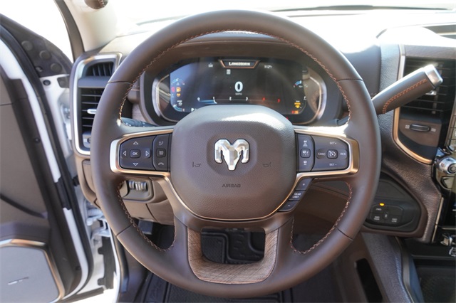This 3500 Limited comes well equipped with Cold Weather Group (MOPAR Winter Front Grille Cover and Engine Block Heater), Longhorn Level 1 Equipment Group (Active Lane Management System, Adaptive Steering System, Digital Rearview Mirror, Drowsy Driver Detection, LED Bed Lighting, Power Deployable Running Boards, Surround View Camera System, Traffic Sign Recognition, Trailer Reverse Guidance, and Trailer Tire Pressure Monitoring System), Max Tow Package (5th Wheel/Gooseneck Towing Prep Group and Auto Level Rear Air Suspension), Quick Order Package 24K Longhorn (Premium Door Trim Panel, Premium Filigree Leather Seats, Warm Chrome Key Fob, Longhorn Badge, and Longhorn Instrument Cluster Theme 3), 3500 Limited, 4D Crew Cab, 6.7L I6, 8-Speed Automatic, 4WD, Bright White Clearcoat, Bison Brown Leather, Navigation System, Rain sensing wipers, Wheels: 17" x 6.0" Polished Aluminum, 17 Speakers, 4-Wheel Disc Brakes, 50 Gallon Fuel Tank, ABS brakes, Adjustable pedals, Air Conditioning, Alloy wheels, AM/FM radio: SiriusXM with 360L, Apple CarPlay/Android Auto, Audio memory, Auto High-beam Headlights, Auto-dimming door mirrors, Auto-dimming Rear-View mirror, Automatic temperature control, Bodyside moldings, Brake assist, Bumpers: body-color, Center Hub, Clearance Lamps, Compass, Dash Pass Thru Wire Circuits, Delay-off headlights, Driver door bin, Driver vanity mirror, Dual front impact airbags, Dual front side impact airbags, Dual Rear Wheels, Electronic Stability Control, Front anti-roll bar, Front Bucket Seats, Front Center Armrest w/Storage, Front dual zone A/C, Front fog lights, Front License Plate Bracket, Front reading lights, Fully automatic headlights, Garage door transmitter, Genuine wood console insert, Genuine wood dashboard insert, Genuine wood door panel insert, harman/kardon® Speakers, Heated door mirrors, Heated front seats, Heated rear seats, Heated steering wheel, Illuminated entry, Leather steering wheel, Low tire pressure warning, Memory seat, Nexen Brand Tires, Occupant sensing airbag, Outside temperature display, Overhead airbag, Overhead console, Panic alarm, ParkView Rear Back-Up Camera, Passenger door bin, Passenger vanity mirror, Pedal memory, Power door mirrors, Power driver seat, Power passenger seat, Power steering, Power windows, Radio data system, Rear reading lights, Rear seat center armrest, Rear step bumper, Rear window defroster, Remote keyless entry, Security system, Speed control, Split folding rear seat, Steering wheel mounted audio controls, Tachometer, Tilt steering wheel, Traction control, Trip computer, Turn signal indicator mirrors, Ultra Premium Leather Seats, Variably intermittent wipers, Ventilated front seats, and Voltmeter.