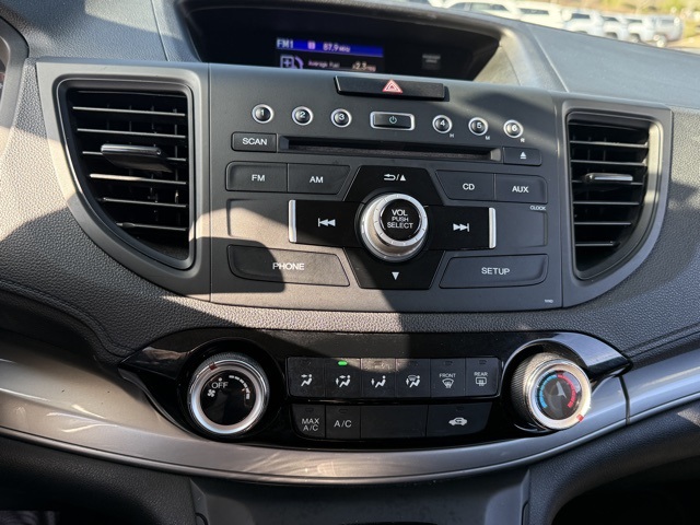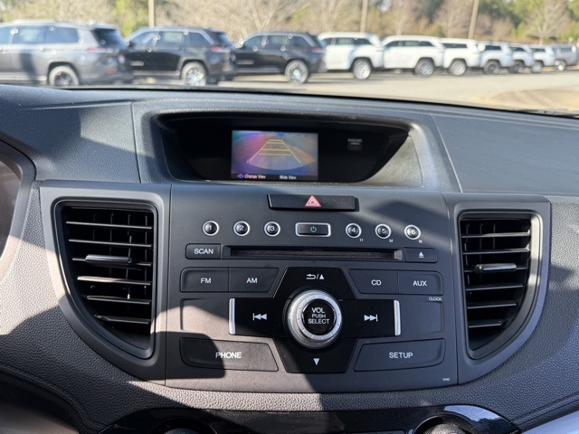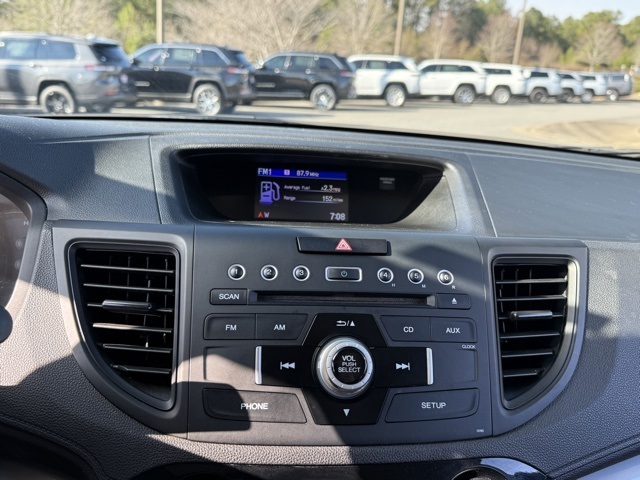 This vehicle comes well equipped with CR-V LX, 4D Sport Utility, 2.4L I4 DOHC 16V i-VTEC, CVT, FWD, and Gray Cloth CR-V LX, 4D Sport Utility, 2.4L I4 DOHC 16V i-VTEC, CVT, FWD, Gray Cloth, 16" Styled Steel Wheels, 4 Speakers, 4-Wheel Disc Brakes, 5.048 Axle Ratio, ABS brakes, Air Conditioning, AM/FM radio, AM/FM/CD Audio System w/4 Speakers, Brake assist, Bumpers: body-color, CD player, Cloth Seat Trim, Compass, Delay-off headlights, Driver door bin, Driver vanity mirror, Dual front impact airbags, Dual front side impact airbags, Electronic Stability Control, Exterior Parking Camera Rear, Four wheel independent suspension, Front anti-roll bar, Front Bucket Seats, Front Center Armrest, Front reading lights, Illuminated entry, Low tire pressure warning, Occupant sensing airbag, Outside temperature display, Overhead airbag, Overhead console, Panic alarm, Passenger door bin, Passenger vanity mirror, Power door mirrors, Power steering, Power windows, Radio data system, Rear anti-roll bar, Rear seat center armrest, Rear window defroster, Rear window wiper, Remote keyless entry, Speed control, Speed-sensing steering, Split folding rear seat, Steering wheel mounted audio controls, Tachometer, Telescoping steering wheel, Tilt steering wheel, Traction control, and Trip computer.