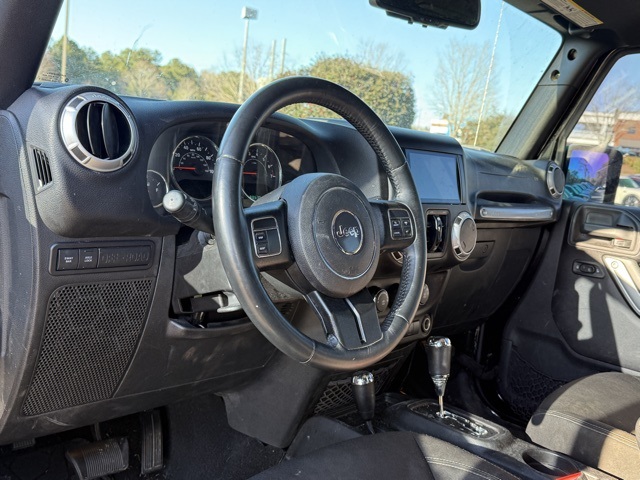 This vehicle comes well equipped with Wrangler Unlimited Rubicon, 4D Sport Utility, 3.6L V6 24V VVT, 5-Speed Automatic, 4WD, Black Clearcoat, and Black Cloth Dual Top Group (Black 3-Piece Hard Top, Delete Sunrider Soft Top, Freedom Panel Storage Bag, Premium Black Sunrider Soft Top, Rear Window Defroster, Rear Window Wiper/Washer, and Sunrider Soft Top), Quick Order Package 24R, Wrangler Unlimited Rubicon, 4D Sport Utility, 3.6L V6 24V VVT, 5-Speed Automatic, 4WD, Black Clearcoat, Black Cloth, 17" x 7.5" Polished Mineral Gray Wheels, 3.73 Rear Axle Ratio, 4-Wheel Disc Brakes, 8 Speakers, ABS brakes, Air Conditioning, Alloy wheels, AM/FM radio: SiriusXM, Audio Jack Input for Mobile Devices, Auto-dimming Rear-View mirror, Brake assist, CD player, Cloth Seats w/Adjustable Head Restraints, Compass, Driver door bin, Driver vanity mirror, Dual front impact airbags, Electronic Stability Control, Front anti-roll bar, Front Bucket Seats, Front Center Armrest w/Storage, Front fog lights, Front reading lights, Fully automatic headlights, Heated door mirrors, Illuminated entry, Integrated roll-over protection, Leather steering wheel, Leather Wrapped Steering Wheel, Low tire pressure warning, MOPAR Slush Mats, Occupant sensing airbag, Outside temperature display, Panic alarm, Passenger door bin, Passenger vanity mirror, Performance Suspension, Power door mirrors, Power steering, Power windows, Radio data system, Radio: 130, Rear anti-roll bar, Remote keyless entry, Remote Start System, Security system, Speed control, Split folding rear seat, Steering wheel mounted audio controls, Supplemental Front Seat Side Airbags, Tachometer, Tilt steering wheel, Traction control, Trip computer, and Variably intermittent wipers.
