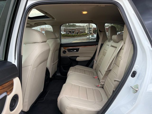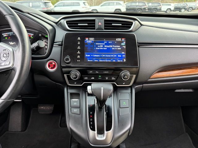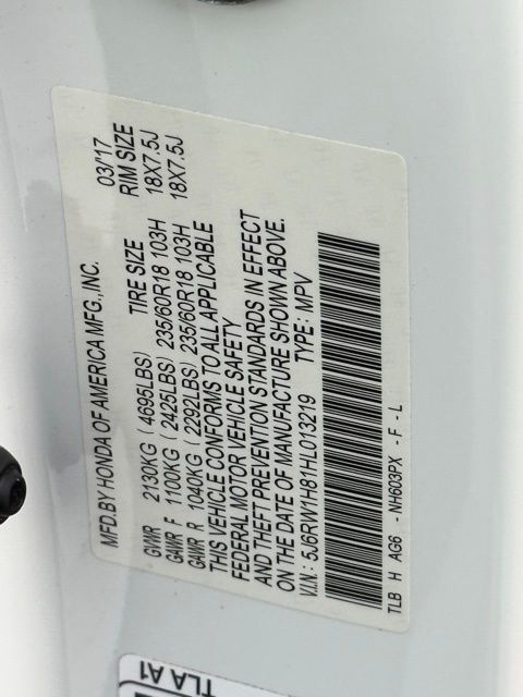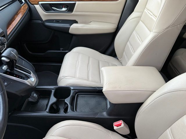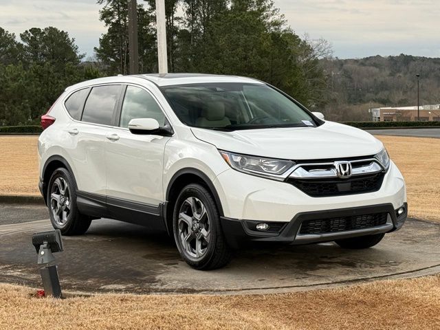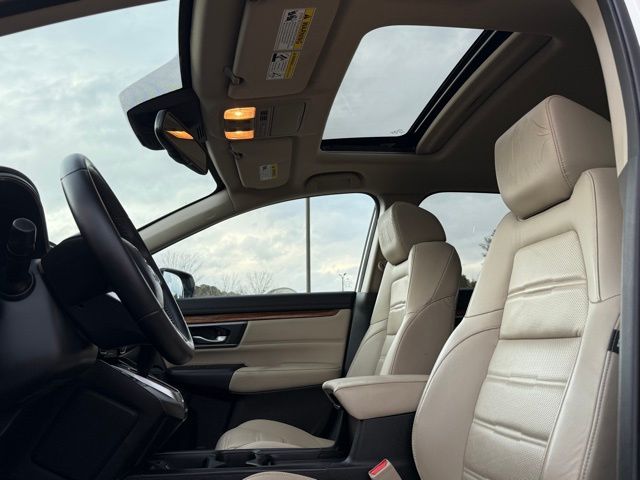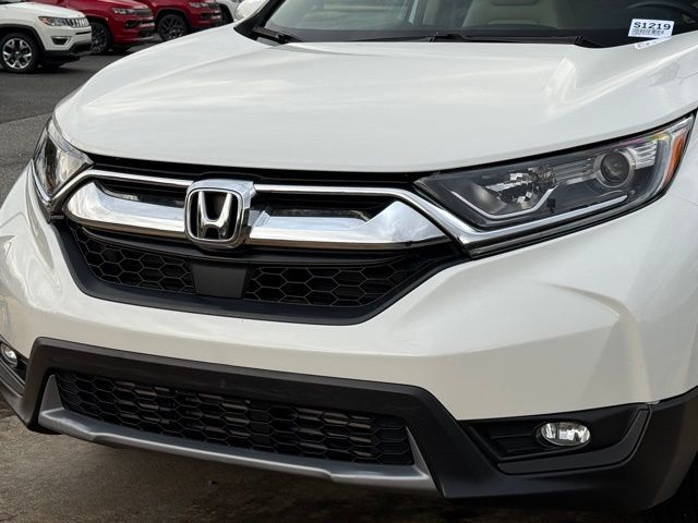 This vehicle comes well equipped with CR-V EX-L, 4D Sport Utility, 1.5L I4 DOHC 16V, CVT, FWD, White, and Gray Leather CR-V EX-L, 4D Sport Utility, 1.5L I4 DOHC 16V, CVT, FWD, White, Gray Leather, 18" Alloy Wheels, 4-Wheel Disc Brakes, 5.64 Axle Ratio, 8 Speakers, ABS brakes, Air Conditioning, Alloy wheels, AM/FM radio: SiriusXM, Apple CarPlay/Android Auto, Auto High-beam Headlights, Auto-dimming Rear-View mirror, Automatic temperature control, Blind Spot Information (BSI) System warning, Brake assist, Bumpers: body-color, Compass, Delay-off headlights, Driver door bin, Driver vanity mirror, Dual front impact airbags, Dual front side impact airbags, Electronic Stability Control, Exterior Parking Camera Rear, Four wheel independent suspension, Front anti-roll bar, Front Bucket Seats, Front Center Armrest, Front dual zone A/C, Front fog lights, Front reading lights, Fully automatic headlights, Garage door transmitter: HomeLink, Heated door mirrors, Heated Front Bucket Seats, Heated front seats, Illuminated entry, Leather Seat Trim, Leather Shift Knob, Low tire pressure warning, Memory seat, Occupant sensing airbag, Outside temperature display, Overhead airbag, Overhead console, Panic alarm, Passenger door bin, Passenger vanity mirror, Power door mirrors, Power driver seat, Power Liftgate, Power moonroof, Power passenger seat, Power steering, Power windows, Radio data system, Radio: AM/FM/HD/SiriusXM Audio System, Rear anti-roll bar, Rear seat center armrest, Rear window defroster, Rear window wiper, Remote keyless entry, Security system, Speed control, Speed-sensing steering, Speed-Sensitive Wipers, Split folding rear seat, Spoiler, Steering wheel mounted audio controls, Tachometer, Telescoping steering wheel, Tilt steering wheel, Traction control, Trip computer, Turn signal indicator mirrors, and Variably intermittent wipers.