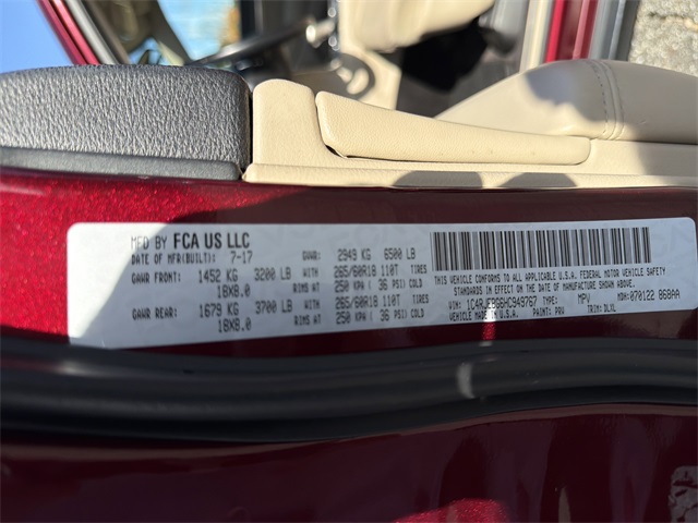 19/26 City/Highway MPG LOCAL TRADE IN, CLEAN CARFAX, SUPER CLEAN, PRICE REDUCED TO SELL BY MONTH END, 1-Year SiriusXM Radio Service, 4-Wheel Disc Brakes, 5-Year SiriusXM Traffic Service, 5-Year SiriusXM Travel Link Service, 506 Watt Amplifier, 6 Month Trial (Registration Required), 6 Speakers, 8.4" Touchscreen Display, 9 Amplified Speakers w/Subwoofer, ABS brakes, Air Conditioning, AM/FM radio: SiriusXM, Anti-whiplash front head restraints, Audio memory, Auto High Beam Headlamp Control, Auto-dimming door mirrors, Auto-Dimming Rear-View Mirror, Auto-dimming Rear-View mirror, Automatic Headlamp Leveling System, Automatic temperature control, Bi-Xenon High-Intensity Discharge Headlamps, Brake assist, Bumpers: body-color, Cargo Compartment Cover, Compass, Delay-off headlights, Driver door bin, Driver vanity mirror, Dual front impact airbags, Dual front side impact airbags, Dual-Pane Panoramic Sunroof, Eco Suspension I, Electronic Stability Control, Engine Oil Cooler, For Details Visit DriveUconnect.com, For More Info, Call 800-643-2112, Four wheel independent suspension, Front anti-roll bar, Front Bucket Seats, Front dual zone A/C, Front fog lights, Front reading lights, Fully automatic headlights, Garage door transmitter, GPS Antenna Input, GPS Navigation, HD Radio, Heated door mirrors, Heated front seats, Heated rear seats, Heated steering wheel, Illuminated entry, Integrated Voice Command w/Bluetooth, Knee airbag, Leather Shift Knob, Leather Trimmed Bucket Seats, Leather Trimmed Seats w/Perforated Inserts, LED Daytime Running Headlamps, LED Fog Lamps, Low tire pressure warning, Luxury Group II, Manufacturer's Statement of Origin, Memory seat, Nav-Capable! See Dealer for Details, Occupant sensing airbag, Outside temperature display, Overhead airbag, Overhead console, Panic alarm, ParkView Rear Back-Up Camera, Passenger vanity mirror, Power door mirrors, Power driver seat, Power Liftgate, Power passenger seat, Power steering, Power Tilt/Telescope Steering Column, Power windows, Quick Order Package 2BH, Radio data system, Radio: Uconnect 3 w/5" Display, Radio: Uconnect 3C Nav w/8.4" Display, Radio: Uconnect 3C w/8.4" Display, Rain Sensitive Windshield Wipers, Rear anti-roll bar, Rear reading lights, Rear seat center armrest, Rear window defroster, Remote keyless entry, Roadside Assistance & 9-1-1 Call, Roof rack: rails only, Security system, SiriusXM Satellite Radio, SiriusXM Traffic, SiriusXM Travel Link, Speed control, Split folding rear seat, Spoiler, Steering wheel mounted audio controls, Tachometer, Telescoping steering wheel, Tilt steering wheel, Traction control, Trip computer, Turn signal indicator mirrors, Uconnect Access, Ventilated Front Seats.