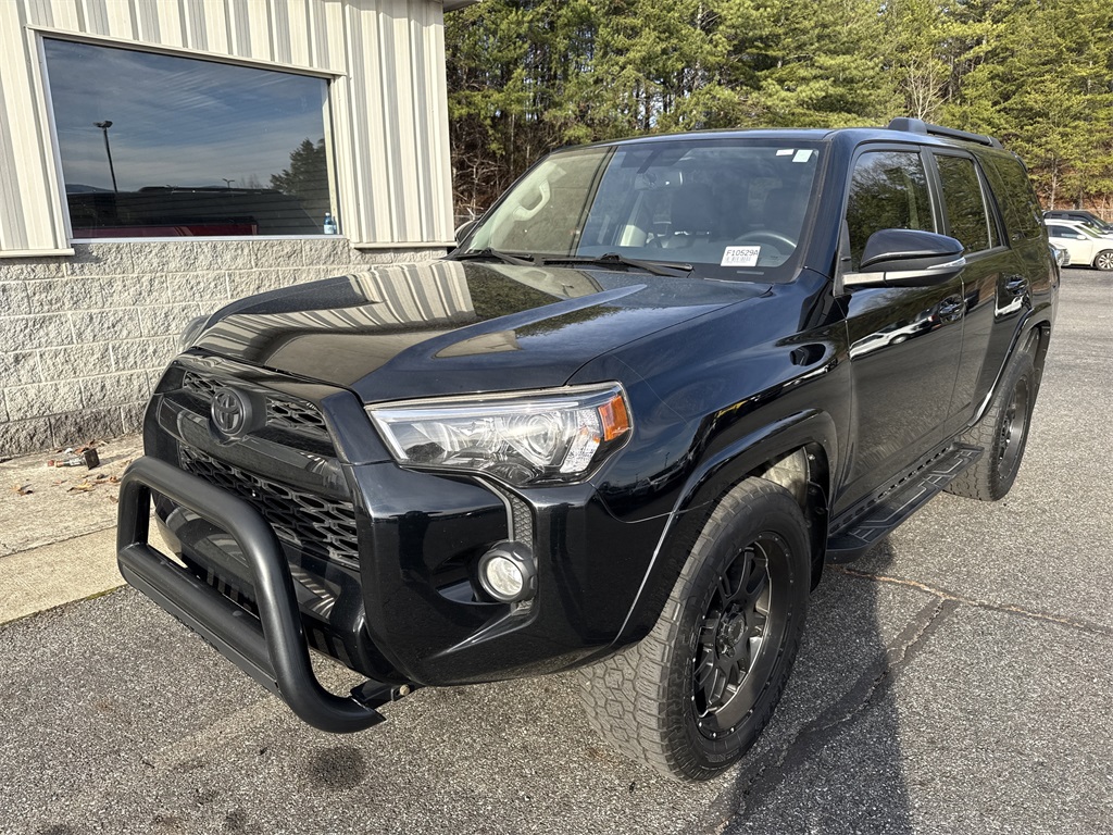 **Local Trade In**, **One Owner**, **Clean Carfax**, **Leather interior**, **Heated Seats, **Front bucket seats with center console**, **Bluetooth/Hands Free**, **Rear back up camera**, **Reverse Sensing System**, **Blind Spot Detection**, **Lane monitor**, **Drivers Power Seat**, **Passenger power seat**, **Remote start**, **Fixed running boards/side steps**, and **SIRIUS SAT. RADIO** SR5 Premium Package w/Softex (Auto-Dimming Rear-View Mirror, Body Color Heated Mirrors, and Garage Door Opener), 4-Wheel Disc Brakes, 8 Speakers, ABS brakes, Air Conditioning, Alloy wheels, AM/FM radio: SiriusXM, Anti-whiplash front head restraints, Auto-dimming Rear-View mirror, Brake assist, Bumpers: body-color, CD player, Compass, Driver door bin, Driver vanity mirror, Dual front impact airbags, Dual front side impact airbags, Electronic Stability Control, Emergency communication system: Safety Connect, Exterior Parking Camera Rear, Front anti-roll bar, Front Bucket Seats, Front Center Armrest, Front fog lights, Front reading lights, Front wheel independent suspension, Garage door transmitter: HomeLink, Heated door mirrors, Heated Front Bucket Seats, Heated front seats, Illuminated entry, Knee airbag, Leather Shift Knob, Leather steering wheel, Low tire pressure warning, Occupant sensing airbag, Outside temperature display, Overhead airbag, Overhead console, Panic alarm, Passenger door bin, Passenger vanity mirror, Power door mirrors, Power driver seat, Power passenger seat, Power steering, Power windows, Radio: Entune Premium Audio w/Navigation, Rear anti-roll bar, Rear seat center armrest, Rear window defroster, Rear window wiper, Remote keyless entry, Roof rack: rails only, Security system, Softex Synthetic Leather Seat Trim, Speed control, Speed-sensing steering, Split folding rear seat, Spoiler, Steering wheel mounted audio controls, Tachometer, Telescoping steering wheel, Tilt steering wheel, Traction control, Trip computer, Turn signal indicator mirrors, and Variably intermittent wipers Shottenkirk Ford of Jasper is pleased to offer you this exceptional 2017 Toyota 4Runner. This SR5 Premium 4Runner Exterior is finished in Midnight Black Metallic and the interior is finished in Black w/Leather Seat Trim. CARFAX One-Owner. Clean CARFAX.