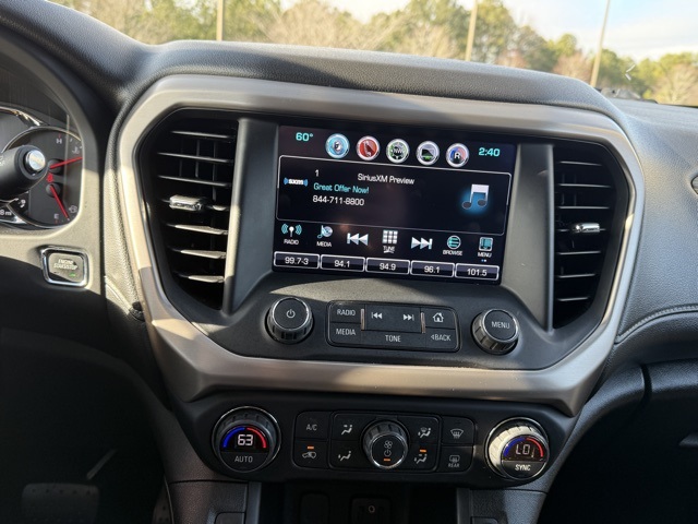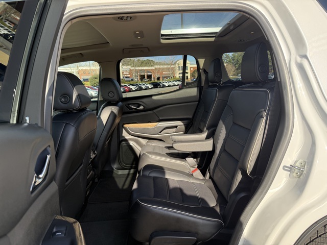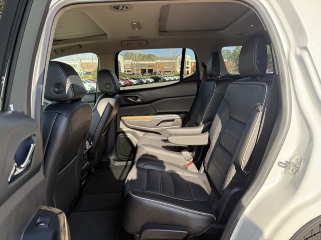 This vehicle comes well equipped with Acadia Denali, 4D Sport Utility, 3.6L V6 SIDI DOHC VVT, 6-Speed Automatic, FWD, White Frost Tricoat, and Jet Black Leather Preferred Equipment Group 5SA (Electronic Cruise Control w/Set & Resume Speed), Technology Package (Forward Automatic Braking, Full Speed Adaptive Cruise Control w/Stop/Go, and Surround Vision System), Acadia Denali, 4D Sport Utility, 3.6L V6 SIDI DOHC VVT, 6-Speed Automatic, FWD, White Frost Tricoat, Jet Black Leather, 3.16 Axle Ratio, 3rd row seats: split-bench, 4-Wheel Disc Brakes, 6-Passenger (2-2-2 Seating Configuration), 8 Speakers, ABS brakes, Air Conditioning, Alloy wheels, AM/FM radio: SiriusXM, Apple CarPlay/Android Auto, Auto High-beam Headlights, Auto-dimming door mirrors, Auto-dimming Rear-View mirror, Automatic temperature control, Brake assist, Bumpers: body-color, Compass, Delay-off headlights, Driver door bin, Driver vanity mirror, Dual front impact airbags, Dual front side impact airbags, Dual SkyScape 2-Panel Power Sunroof, Electronic Stability Control, Emergency communication system: OnStar and GMC connected services capable, Exterior Parking Camera Rear, Four wheel independent suspension, Front anti-roll bar, Front Bucket Seats, Front Center Armrest, Front dual zone A/C, Front fog lights, Front reading lights, Fully automatic headlights, Garage door transmitter: HomeLink, Heated door mirrors, Heated front seats, Heated rear seats, Heated steering wheel, High-Intensity Discharge Headlights, Illuminated entry, Knee airbag, Low tire pressure warning, Memory seat, Navigation System, Occupant sensing airbag, Outside temperature display, Overhead airbag, Overhead console, Panic alarm, Passenger door bin, Passenger vanity mirror, Perforated Leather-Appointed Seat Trim, Power door mirrors, Power driver seat, Power Liftgate, Power passenger seat, Power steering, Power windows, Premium audio system: GMC Infotainment System, Radio data system, Radio: AM/FM 8" Diagonal Color Touch Navigation, Rear air conditioning, Rear anti-roll bar, Rear reading lights, Rear window defroster, Rear window wiper, Remote keyless entry, Roof rack: rails only, Security system, SiriusXM Satellite Radio, Speed control, Speed-sensing steering, Spoiler, Steering wheel mounted audio controls, Tachometer, Telescoping steering wheel, Tilt steering wheel, Traction control, Trip computer, Variably intermittent wipers, Ventilated front seats, Voltmeter, Wheels: 20" x 8" Polished Aluminum (4), and Wireless Charging (LPO)