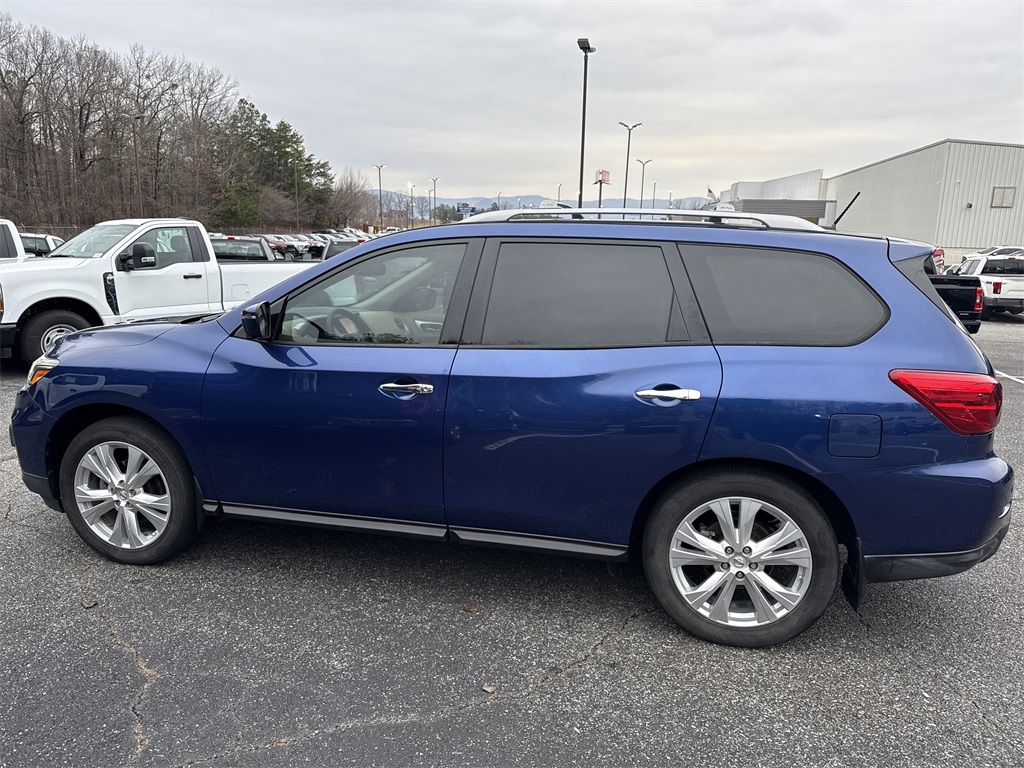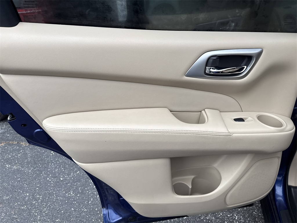 **Local Trade In**, **Clean Carfax**, **Low Mileage**, **Power Sunroof/Moonroof**, **Leather interior**, **Heated Seats, **Front bucket seats with center console**, **Bluetooth/Hands Free**, **Rear back up camera**, **Reverse Sensing System**, **Blind Spot Detection**, **Lane monitor**, **Remote start**, and **SIRIUS SAT. RADIO** SL Premium Package (20" Painted Alloy Wheels, Power Panoramic Moonroof, Radio: Bose Premium Audio w/AM/FM/CD & 13 Speakers, Trailer Hitch Receiver w/Integrated Finisher, and Trailer Towing Harness), 3rd row seats: bench, 4-Wheel Disc Brakes, 5.25 Axle Ratio, 6 Speakers, ABS brakes, Air Conditioning, AM/FM radio: SiriusXM, Auto-dimming Rear-View mirror, Automatic temperature control, Black Mold-In Color Splash Guards, Blind Spot Warning, Brake assist, Bumpers: body-color, Carpeted Floor Mats (4-pc Set), CD player, Compass, Cross Bars, Delay-off headlights, Driver door bin, Driver vanity mirror, Dual front impact airbags, Dual front side impact airbags, Electronic Stability Control, Emergency communication system: NissanConnect Services, Four wheel independent suspension, Front anti-roll bar, Front Bucket Seats, Front Center Armrest, Front dual zone A/C, Front fog lights, Front Heated Bucket Seats, Front reading lights, Fully automatic headlights, Garage door transmitter: HomeLink, Heated door mirrors, Heated front seats, Heated rear seats, Heated steering wheel, Illuminated entry, Leather Seating Surfaces, Leather Shift Knob, Leather steering wheel, Low tire pressure warning, Memory seat, Navigation System, Occupant sensing airbag, Outside temperature display, Overhead airbag, Overhead console, Panic alarm, Passenger door bin, Passenger vanity mirror, Power door mirrors, Power driver seat, Power Liftgate, Power passenger seat, Power steering, Power windows, Radio data system, Radio: AM/FM/CD w/NissanConnect Navigation, Rear air conditioning, Rear anti-roll bar, Rear Bumper Protector, Rear Parking Sensors, Rear reading lights, Rear seat center armrest, Rear window defroster, Rear window wiper, Reclining 3rd row seat, Remote keyless entry, Roof rack: rails only, Security system, Speed control, Speed-sensing steering, Speed-Sensitive Wipers, Split folding rear seat, Spoiler, Steering wheel mounted audio controls, Tachometer, Telescoping steering wheel, Tilt steering wheel, Traction control, Trip computer, Turn signal indicator mirrors, and Variably intermittent wipers Shottenkirk Ford of Jasper is pleased to offer you this exceptional 2018 Nissan Pathfinder. This SL Pathfinder Exterior is finished in Caspian Blue and the interior is finished in Almond Leather. Clean CARFAX. 20/27 City/Highway MPG
