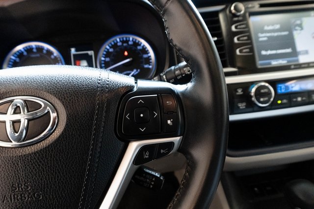 2018 Toyota Highlander XLE ABS brakes, Active Cruise Control, Alloy wheels, Electronic Stability Control, Front dual zone A/C, Heated door mirrors, Heated Front Bucket Seats, Heated front seats, Illuminated entry, Leather Seat Trim, Low tire pressure warning, Navigation System, Power Liftgate, Power moonroof, Remote keyless entry, Traction control.