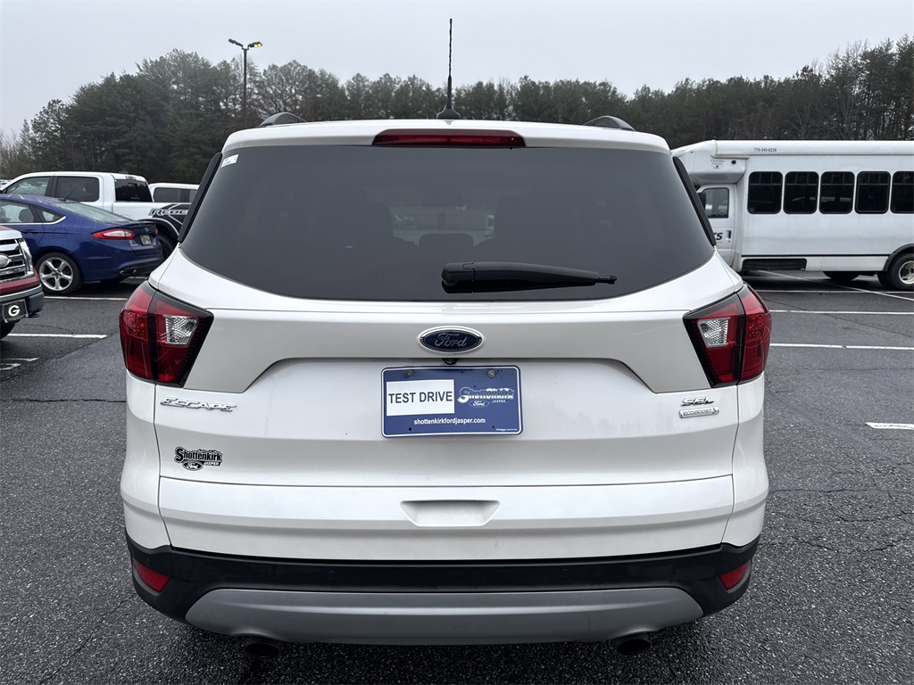 ** Price reduced to sell by month end**, **Local Trade In**, **Clean Carfax**, **Low Mileage**, **Heated Seats, **Front bucket seats with center console**, **Ford Sync Bluetooth**, **Bluetooth/Hands Free**, **Rear back up camera**, **Reverse Sensing System**, **Blind Spot Detection**, **Lane monitor**, **Power liftgate**, **Remote start**, and **SIRIUS SAT. RADIO** Equipment Group 300A, Ford Safe & Smart Package (Adaptive Cruise Control & Fwd Collision Warning, Auto High-Beam Headlamps, Auto-Dimming Rear-View Mirror, Blind Spot Info System w/Cross-Traffic Alert, Lane-Keeping System, Rain-Sensing Wipers, and Windshield Wiper De-Icer), Sun & Style Package (Panoramic Vista Roof and Wheels: 18" Sparkle Silver Painted Aluminum), 3.21 Axle Ratio, 4-Wheel Disc Brakes, 6 Speakers, ABS brakes, Air Conditioning, Alloy wheels, AM/FM radio: SiriusXM, AppLink/Apple CarPlay and Android Auto, Automatic temperature control, Brake assist, Bumpers: body-color, Compass, Delay-off headlights, Driver door bin, Driver vanity mirror, Dual front impact airbags, Dual front side impact airbags, Electronic Stability Control, Emergency communication system: SYNC 3 911 Assist, Exterior Parking Camera Rear, FordPass Connect, Four wheel independent suspension, Front anti-roll bar, Front Bucket Seats, Front Center Armrest, Front dual zone A/C, Front fog lights, Front reading lights, Fully automatic headlights, Heated door mirrors, Heated front seats, Illuminated entry, Knee airbag, Leather Shift Knob, Low tire pressure warning, Occupant sensing airbag, Outside temperature display, Overhead airbag, Overhead console, Panic alarm, Passenger door bin, Passenger vanity mirror, Power door mirrors, Power driver seat, Power Liftgate, Power steering, Power windows, Radio data system, Radio: AM/FM Stereo w/MP3 Capable, Rear anti-roll bar, Rear Parking Sensors, Rear seat center armrest, Rear window defroster, Rear window wiper, Remote keyless entry, Roof rack: rails only, Security system, Speed control, Speed-sensing steering, Split folding rear seat, Steering wheel mounted audio controls, Tachometer, Telescoping steering wheel, Tilt steering wheel, Traction control, Trip computer, and Variably intermittent wipers Shottenkirk Ford of Jasper is pleased to offer you this exceptional 2019 Ford Escape. This SEL Escape Exterior is finished in White Platinum and the interior is finished in Charcoal Black Cloth. Clean CARFAX. 23/30 City/Highway MPG