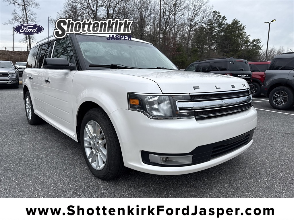 **Local Trade In**, **Clean Carfax**, **Dual moonroof**, **Leather interior**, **Heated Seats, **Front bucket seats with center console**, **Ford Sync Bluetooth**, **Bluetooth/Hands Free**, **Rear back up camera**, **Reverse Sensing System**, **Blind Spot Detection**, **Lane monitor**, **Drivers Power Seat**, **Passenger power seat**, **Power liftgate**, **Remote start**, and **SIRIUS SAT. RADIO** Equipment Group 200A, 2nd Row 40/40 Reclining Seats, 3.39 Axle Ratio, 3rd row seats: split-bench, 4-Wheel Disc Brakes, 6 Speakers, ABS brakes, Air Conditioning, Alloy wheels, AM/FM radio: SiriusXM, AppLink/Apple CarPlay and Android Auto, Auto-dimming Rear-View mirror, Automatic temperature control, Brake assist, Bumpers: body-color, CD player, Child-Seat-Sensing Airbag, Cloth Heated Front Bucket Seats, Compass, Delay-off headlights, Driver door bin, Driver vanity mirror, Dual front impact airbags, Dual front side impact airbags, Electronic Stability Control, Emergency communication system: 911 Assist, Exterior Parking Camera Rear, Four wheel independent suspension, Front anti-roll bar, Front Bucket Seats, Front Center Armrest, Front dual zone A/C, Front fog lights, Front reading lights, Fully automatic headlights, Heated door mirrors, Heated front seats, Illuminated entry, Low tire pressure warning, Monochromatic Roof, Occupant sensing airbag, Outside temperature display, Overhead airbag, Overhead console, Panic alarm, Passenger door bin, Passenger vanity mirror, Power door mirrors, Power driver seat, Power passenger seat, Power steering, Power windows, Radio data system, Radio: AM/FM Single-CD/MP3 Capable, Rear air conditioning, Rear anti-roll bar, Rear Parking Sensors, Rear reading lights, Rear window defroster, Rear window wiper, Remote keyless entry, Roof-Rack Side Rails, Security system, Speed control, Speed-Sensitive Wipers, Split folding rear seat, Steering wheel mounted audio controls, SYNC 3 Communications & Entertainment System, Tachometer, Telescoping steering wheel, Tilt steering wheel, Traction control, Trip computer, Variably intermittent wipers, and Wheels: 18" Sparkle Silver-Painted Aluminum Shottenkirk Ford of Jasper is pleased to offer you this exceptional 2019 Ford Flex. This SEL Flex Exterior is finished in White Platinum and the interior is finished in Charcoal Black Cloth.