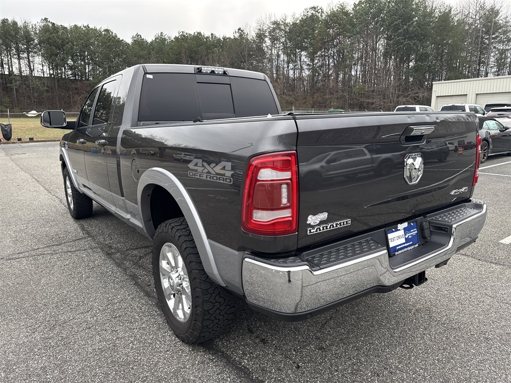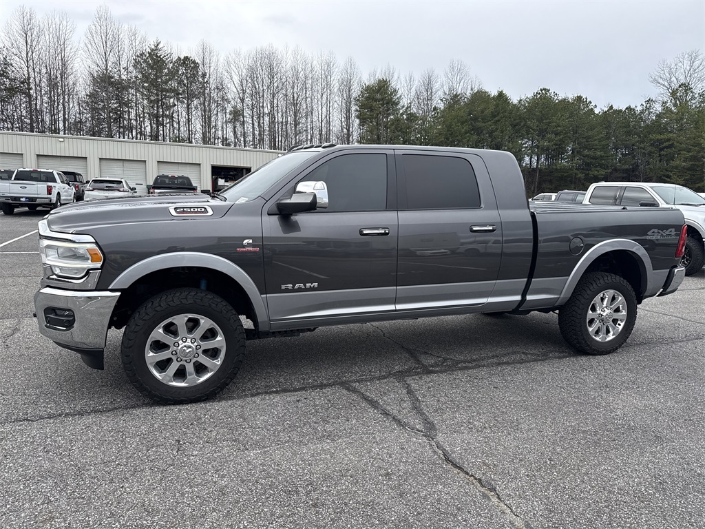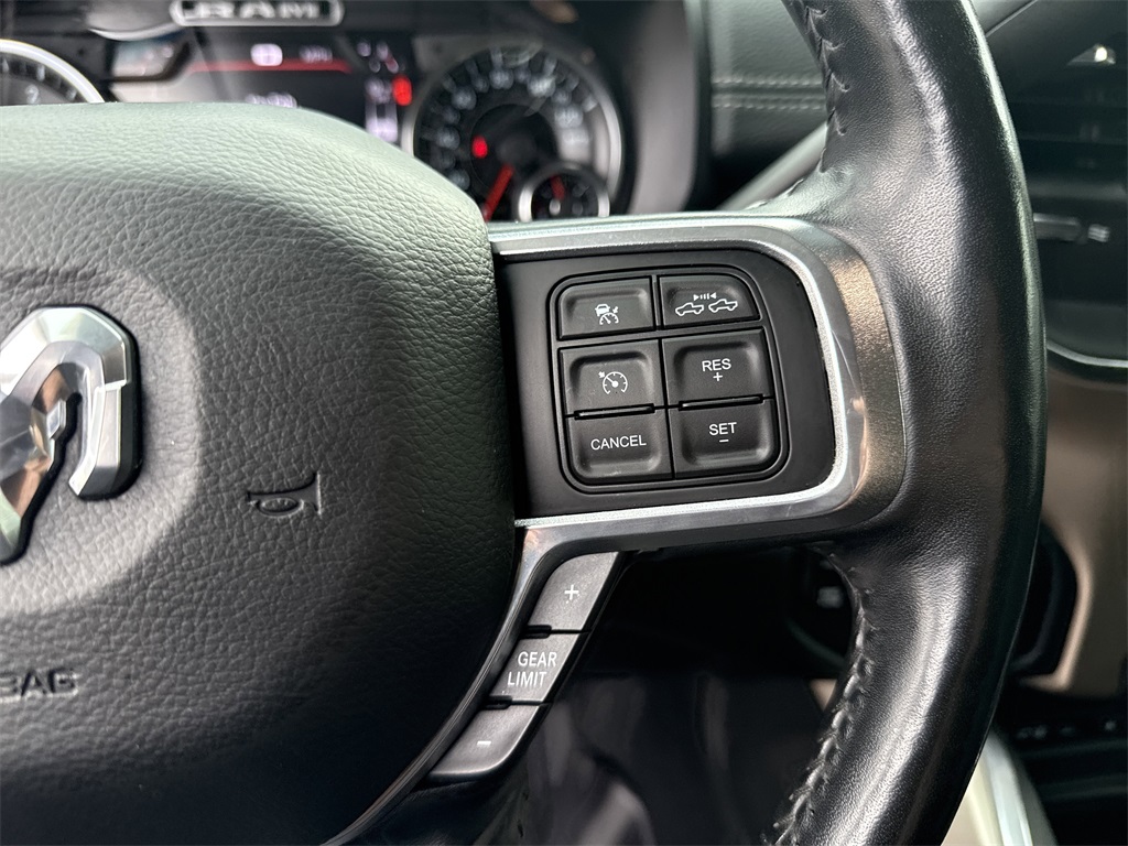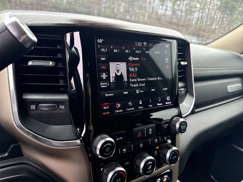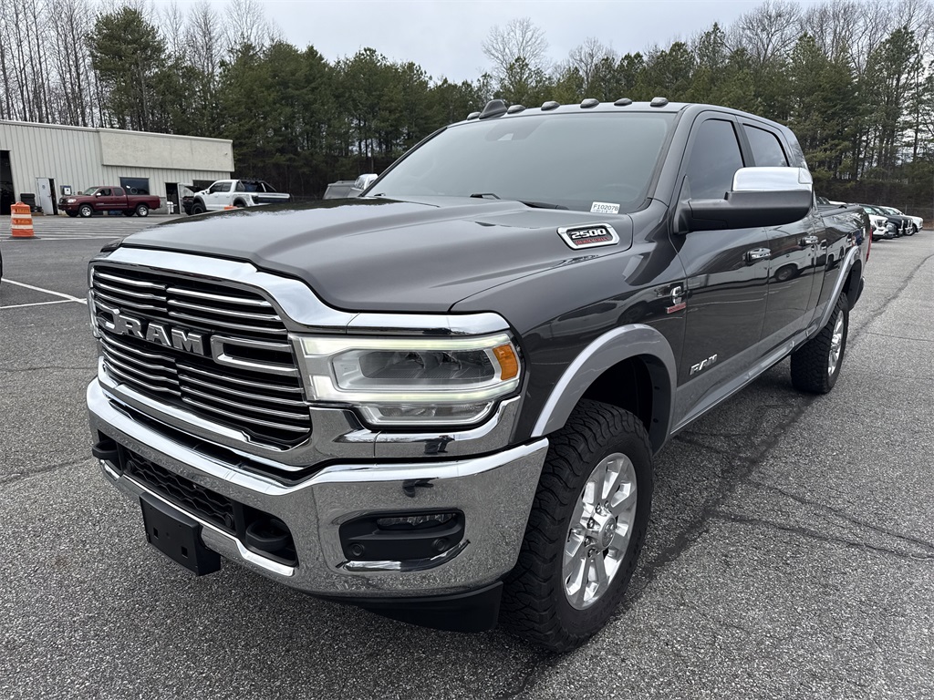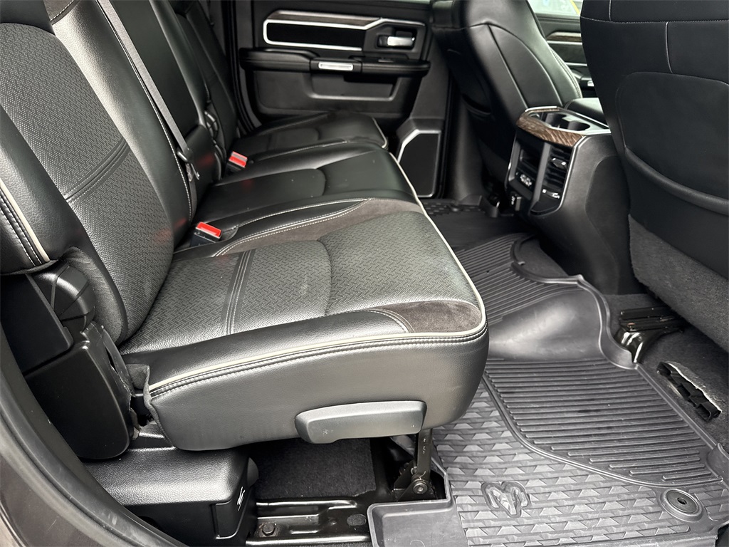 **Local Trade In**, **Low Mileage**, **Leather interior**, **Heated/Cooled Seats**, **Heated Seats, **Front bucket seats with center console**, Apple car play/ Android auto, **Bluetooth/Hands Free**, **Rear back up camera**, **Reverse Sensing System**, **Blind Spot Detection**, **Lane monitor**, **GPS/ Navigation**, **Drivers Power Seat**, **Passenger power seat**, **Power windows and locks**, **Remote start**, **Fixed running boards/side steps**, **SIRIUS SAT. RADIO**, and **Spray in bedliner** Bed Utility Group (Deployable Bed Step, LED Bed Lighting, and Spray In Bedliner), Laramie Level 2 Equipment Group (1-Year SiriusXM Guardian Trial, 17 Speaker High Performance Audio, 5-Year SiriusXM Traffic Service, 5-Year SiriusXM Travel Link Service, Auto High Beam Headlamp Control, Blind Spot & Cross Path Detection, Disassociated Touchscreen Display, Exterior Mirrors w/Memory, Foam Bottle Insert (Door Trim Panel), For Details Visit DriveUconnect.com, GPS Navigation, HD Radio, Heated Second Row Seats, Media Hub w/2 Charge Only USBs, Mirror-Mounted Aux Reverse Lamps, Power Adjustable Convex Aux Mirrors, Power Adjustable Pedals w/Memory, Pwr Convenience Chrome Tow Mirrors w/Spotter & Memory, Radio: Uconnect 4C Nav w/8.4" Display, Radio/Driver Seat/Mirrors/Pedals Memory, Rain Sensitive Windshield Wipers, Ramcharger Wireless Charging Pad, Remote Tailgate Release, Selectable Tire Fill Alert, Single Disc Remote CD Player, SiriusXM Satellite Radio, SiriusXM Traffic Plus, SiriusXM Travel Link, and Ventilated Front Seats), Off Road Package (Front Performance Tuned Shock Absorbers, Hill Descent Control, Off Road Decal, and Rear Performance Tuned Shock Absorbers), Protection Group (Tow Hooks), Quick Order Package 2HH Laramie, Safety Group (Adaptive Cruise Control w/Stop and Full Speed Forward Collision Warning Plus), #1 Seat Foam Cushion, 10 Speakers, 115V Auxiliary Rear Power Outlet, 2 Way Rear Headrest Seat, 220 Amp Alternator, 3.73 Axle Ratio, 4 Way Front Headrests, 4-Wheel Disc Brakes, 5th Wheel/Gooseneck Towing Prep Group, ABS brakes, Active Noise Control System, Adjustable pedals, Air Conditioning, Alloy wheels, AM/FM radio: SiriusXM, Anti-Spin Differential Rear Axle, Apple CarPlay, Apple CarPlay/Android Auto, Auto-dimming Rear-View mirror, Automatic temperature control, Brake assist, Bumpers: chrome, Center Hub, Center Stop Lamp w/Cargo View Camera, Chrome Flat Wheel-to-Wheel Side Steps, Clearance Lamps, Compass, Delay-off headlights, Driver door bin, Driver vanity mirror, Dual front impact airbags, Dual front side impact airbags, Electronic Stability Control, Electronically Controlled Throttle, Front & Rear Rubber Floor Mats, Front anti-roll bar, Front Center Armrest w/Storage, Front dual zone A/C, Front fog lights, Front reading lights, Front Seat Back Map Pockets, Fully automatic headlights, Garage door transmitter, Google Android Auto, GPS Antenna Input, Heated door mirrors, Heated Front Seats, Heated front seats, Heated Steering Wheel, Heated steering wheel, High Back Seats, Illuminated entry, Integrated Voice Command w/Bluetooth, Leather steering wheel, Leather Trim 40/20/40 Bench Seat, Low tire pressure warning, Occupant sensing airbag, Outside temperature display, Overhead airbag, Overhead console, Panic alarm, ParkSense Front/Rear Park Assist System, ParkView Rear Back-Up Camera, Passenger door bin, Passenger vanity mirror, Power 2-Way Driver Lumbar Adjust, Power 2-Way Passenger Lumbar Adjust, Power Adjust 8-Way Driver Seat, Power Adjust 8-Way Front Passenger Seat, Power door mirrors, Power driver seat, Power passenger seat, Power steering, Power windows, Radio data system, Radio: Uconnect 4 w/8.4" Display, Rear 60/40 Folding Seat, Rear anti-roll bar, Rear reading lights, Rear seat center armrest, Rear step bumper, Rear window defroster, Remote keyless entry, Security system, Selectable Tire Fill Alert (DISC), Speed control, Split folding rear seat, Steering wheel mounted audio controls, Tachometer, Tilt steering wheel, Tip Start