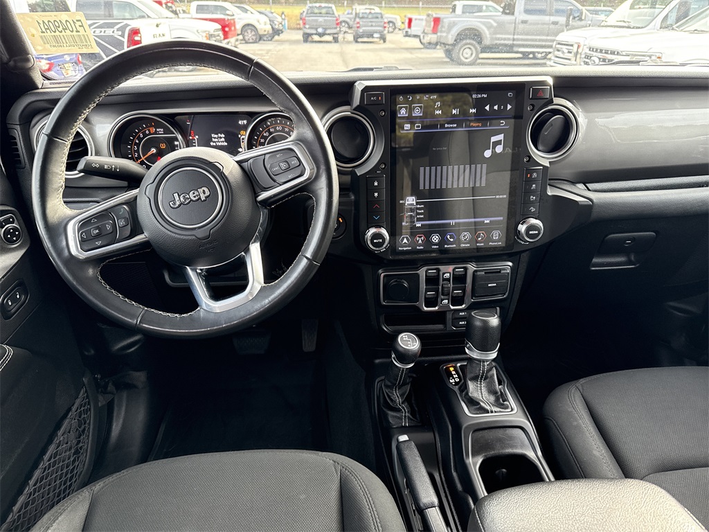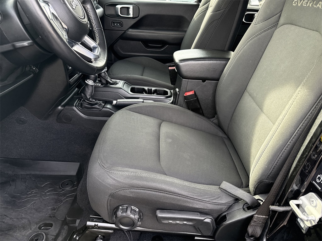 **Local Trade In**, **Clean Carfax**, **Low Mileage**, Soft Top, **Heated Seats, **Front bucket seats with center console**, Apple car play/ Android auto, **Bluetooth/Hands Free**, **Rear back up camera**, **Reverse Sensing System**, **Lane monitor**, **Remote start**, **Fixed running boards/side steps**, and **SIRIUS SAT. RADIO** Auxiliary Switch Group (240 Amp Alternator, 700 Amp Maintenance Free Battery, and Auxiliary Switches), Quick Order Package 24G, Safety Group (Blind Spot & Cross Path Detection and ParkSense Rear Park Assist System), Trailer Tow Package (Class IV Hitch Receiver, Heavy-Duty Engine Cooling, and Trailer Hitch Zoom), 3.73 Rear Axle Ratio, 4-Wheel Disc Brakes, 400W Inverter, 8 Speakers, ABS brakes, Air Conditioning, Alloy wheels, AM/FM radio: SiriusXM, Anti-Spin Differential Rear Axle, Apple CarPlay/Android Auto, Automatic temperature control, Brake assist, Compass, Delay-off headlights, Driver door bin, Driver vanity mirror, Dual front impact airbags, Dual front side impact airbags, Electronic Stability Control, Front anti-roll bar, Front Bucket Seats, Front Center Armrest w/Storage, Front dual zone A/C, Front fog lights, Front reading lights, Fully automatic headlights, Garage door transmitter, Heated door mirrors, Illuminated entry, Integrated roll-over protection, Leather steering wheel, Low tire pressure warning, Normal Duty Plus Suspension, Occupant sensing airbag, Outside temperature display, Overland Cloth Bucket Seats, Panic alarm, ParkView Rear Back-Up Camera, Passenger door bin, Passenger vanity mirror, Power door mirrors, Power steering, Power windows, Premium Black Sunrider Soft Top, Premium Door Trim Panel, Radio data system, Radio: Uconnect 4 w/7" Display, Rear anti-roll bar, Rear reading lights, Remote keyless entry, Security system, Speed control, Split folding rear seat, Steering wheel mounted audio controls, Tachometer, Telescoping steering wheel, Tilt steering wheel, Traction control, Trip computer, Variably intermittent wipers, Voltmeter, and Wheels: 18" x 7.5" Granite Crystal Aluminum Shottenkirk Ford of Jasper is pleased to offer you this exceptional 2020 Jeep Gladiator. This Overland Gladiator Exterior is finished in Black Clearcoat and the interior is finished in Black w/Overland Cloth Bucket Seats or Leather Trimmed Bucket Seats. Clean CARFAX.