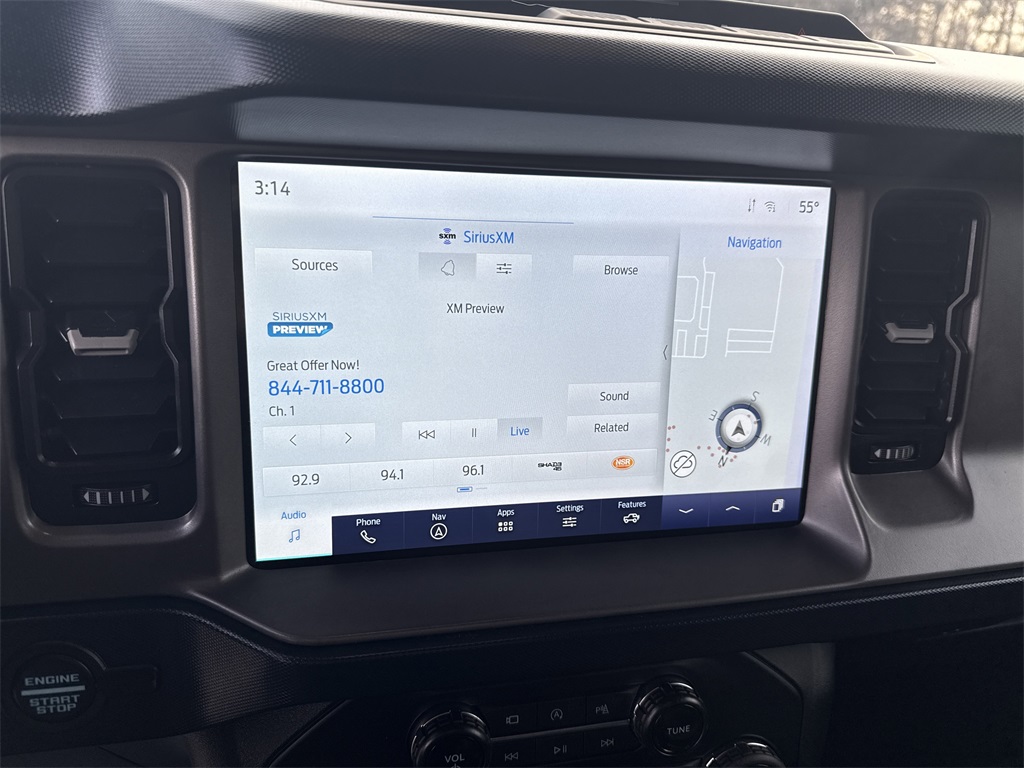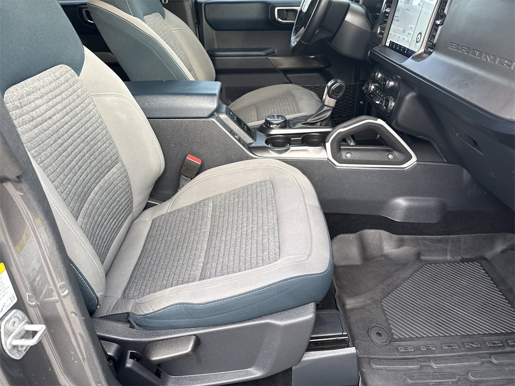 **Local Trade In**, **One Owner**, Soft Top, **Heated Seats, **Front bucket seats with center console**, Apple car play/ Android auto, **Ford Sync Bluetooth**, **Bluetooth/Hands Free**, **Rear back up camera**, **Reverse Sensing System**, **Blind Spot Detection**, **Remote start**, **SIRIUS SAT. RADIO**, **Upgraded wheels**, and **Upgraded wheels and tires** Equipment Group 313A High Package (12" LCD Capacitive Touchscreen w/Swipe Capability, 360-Degree Camera, Additional Sound Deadening, Forward Sensing System, Information on Demand Panel, and Sideview Mirrors), 4-Wheel Disc Brakes, 6 Speakers, ABS brakes, Air Conditioning, AM/FM radio: SiriusXM with 360L, AM/FM Stereo, Auto High-beam Headlights, Brake assist, Compass, Delay-off headlights, Driver door bin, Driver vanity mirror, Dual front impact airbags, Dual front side impact airbags, Emergency communication system: 911 Assist, Exterior Parking Camera Rear, Front anti-roll bar, Front Bucket Seats, Front Center Armrest, Front reading lights, Front wheel independent suspension, Fully automatic headlights, Heated door mirrors, Illuminated entry, Integrated roll-over protection, Low tire pressure warning, Occupant sensing airbag, Outside temperature display, Overhead airbag, Overhead console, Panic alarm, Passenger door bin, Passenger vanity mirror, Power door mirrors, Power steering, Power windows, Radio data system, Remote keyless entry, Security system, SiriusXM Radio w/360L, Speed control, Split folding rear seat, Steering wheel mounted audio controls, SYNC 4, Tachometer, Telescoping steering wheel, Tilt steering wheel, Traction control, Trip computer, and Variably intermittent wipers Shottenkirk Ford of Jasper is pleased to offer you this exceptional 2021 Ford Bronco. This Outer Banks Bronco Exterior is finished in Gray Metallic and the interior is finished in Dark Gray W/Navy Pier Cloth. CARFAX One-Owner.