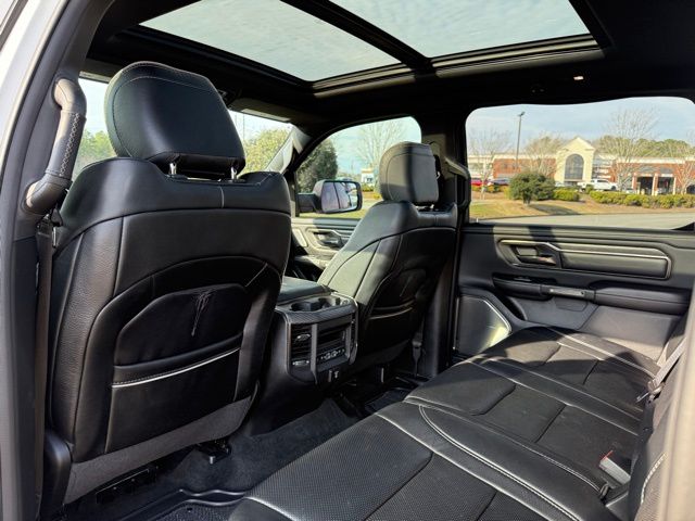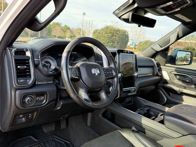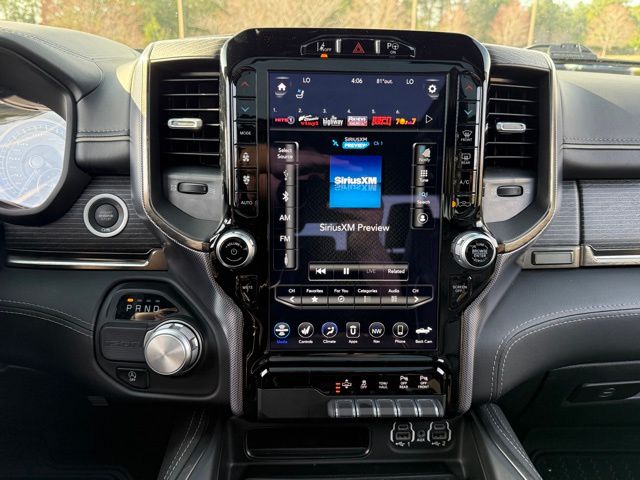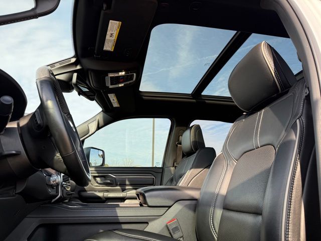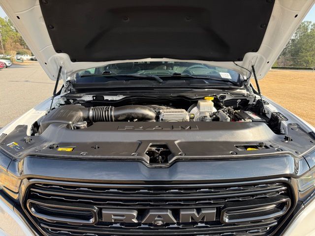 This vehicle comes well equipped with Limited Level 1 Equipment Group (Adaptive Cruise Control w/Stop & Go, Lane Keep Assist, Parallel & Perp Park Assist w/Stop, Pedestrian Emergency Braking, Surround View Camera System, and Ventilated Rear Seats), Night Edition (Accent Color Premium Power Mirrors, Black Day Light Opening Moldings, Black Exterior Truck Badging, Black Grille Surround Texture 7 Chrome, Black Headlamp Bezels, Black Painted Exterior Mirrors Caps, Body Color Door Handles, Body Color Front Bumper, Body Color Rear Bumper w/Step Pads, Dual Exhaust w/Black Tips, harman/kardon 19 Speaker Premium Sound, RAM Grille Badge - Black, Sport Performance Hood, Tow Hooks, Tri-Fold Tonneau Cover, and Wheels: 22" x 9" Black Aluminum), Quick Order Package 27M Limited, Technology Group (Heads-Up Display, LED CHMSL Lamp, and Rearview Autodim Digital Display Mirror), 1500 Limited, 4D Crew Cab, HEMI 5.7L V8 Multi Displacement VVT, 8-Speed Automatic, RWD, Bright White Clearcoat, and Black Leather Limited Level 1 Equipment Group (Adaptive Cruise Control w/Stop & Go, Lane Keep Assist, Parallel & Perp Park Assist w/Stop, Pedestrian Emergency Braking, Surround View Camera System, and Ventilated Rear Seats), Night Edition (Accent Color Premium Power Mirrors, Black Day Light Opening Moldings, Black Exterior Truck Badging, Black Grille Surround Texture 7 Chrome, Black Headlamp Bezels, Black Painted Exterior Mirrors Caps, Body Color Door Handles, Body Color Front Bumper, Body Color Rear Bumper w/Step Pads, Dual Exhaust w/Black Tips, harman/kardon 19 Speaker Premium Sound, RAM Grille Badge - Black, Sport Performance Hood, Tow Hooks, Tri-Fold Tonneau Cover, and Wheels: 22" x 9" Black Aluminum), Quick Order Package 27M Limited, Technology Group (Heads-Up Display, LED CHMSL Lamp, and Rearview Autodim Digital Display Mirror), 1500 Limited, 4D Crew Cab, HEMI 5.7L V8 Multi Displacement VVT, 8-Speed Automatic, RWD, Bright White Clearcoat, Black Leather, 1-Yr SiriusXM Guardian Trial, 10 Speakers, 4-Wheel Disc Brakes, 48V Belt Starter Generator, 4G LTE Wi-Fi Hot Spot, ABS brakes, Adjustable pedals, Air Conditioning, Alloy wheels, AM/FM radio: SiriusXM with 360L, Anti-Spin Differential Rear Axle, Apple CarPlay, Apple CarPlay/Android Auto, Audio memory, Auto High-beam Headlights, Auto-dimming door mirrors, Auto-dimming Rear-View mirror, Auto-leveling suspension, Automatic temperature control, Bodyside moldings, Brake assist, Bumpers: chrome, Chrome Exter