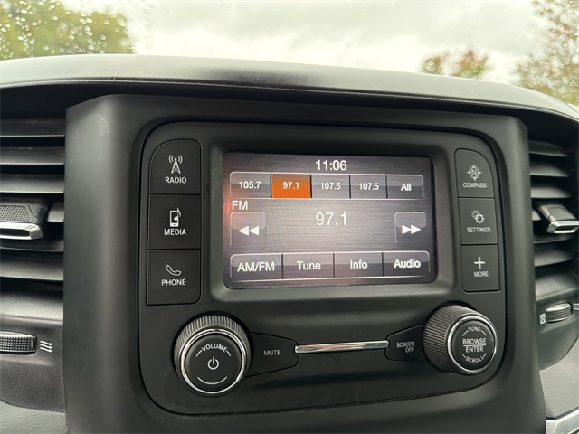 This vehicle comes well equipped with Quick Order Package 2HZ Big Horn, 2 Way Rear Headrest Seat, 4 Way Front Headrests, 4-Wheel Disc Brakes, 40/20/40 Split Bench Seat, 6 Speakers, ABS brakes, Active Noise Control System, Air Conditioning, AM/FM radio, Brake assist, Bumpers: chrome, Center Stack Storage Drawer, Chrome Flat Cab-Length Side Steps, Cloth 40/20/40 Bench Seat, Compass, Delay-off headlights, Driver door bin, Dual front impact airbags, Dual front side impact airbags, Electronic Stability Control, Electronically Controlled Throttle, Front anti-roll bar, Front Armrest w/Cupholders, Front Center Armrest w/Storage, Front License Plate Bracket, Front reading lights, Fully automatic headlights, GPS Antenna Input, Heated door mirrors, Illuminated entry, Integrated Voice Command w/Bluetooth, Low tire pressure warning, Manual Adjust 4-Way Driver Seat, Manual Adjust 4-Way Front Passenger Seat, Manufacturer's Statement of Origin, Occupant sensing airbag, Outside temperature display, Overhead airbag, Overhead console, Panic alarm, ParkView Rear Back-Up Camera, Passenger door bin, Passenger vanity mirror, Power door mirrors, Power steering, Power windows, Radio data system, Radio: Uconnect 3 w/5" Display, Rear anti-roll bar, Rear Folding Seat, Rear seat center armrest, Rear step bumper, Remote keyless entry, Speed control, Tachometer, Tilt steering wheel, Tip Start, Tow Hooks, Traction control, Trip computer, Turn signal indicator mirrors, Vendor Painted Cargo Box Tracking, and Voltmeter Quick Order Package 2HZ Big Horn, 2 Way Rear Headrest Seat, 4 Way Front Headrests, 4-Wheel Disc Brakes, 40/20/40 Split Bench Seat, 6 Speakers, ABS brakes, Active Noise Control System, Air Conditioning, AM/FM radio, Brake assist, Bumpers: chrome, Center Stack Storage Drawer, Chrome Flat Cab-Length Side Steps, Cloth 40/20/40 Bench Seat, Compass, Delay-off headlights, Driver door bin, Dual front impact airbags, Dual front side impact airbags, Electronic Stability Control, Electronically Controlled Throttle, Front anti-roll bar, Front Armrest w/Cupholders, Front Center Armrest w/Storage, Front License Plate Bracket, Front reading lights, Fully automatic headlights, GPS Antenna Input, Heated door mirrors, Illuminated entry, Integrated Voice Command w/Bluetooth, Low tire pressure warning, Manual Adjust 4-Way Driver Seat, Manual Adjust 4-Way Front Pa