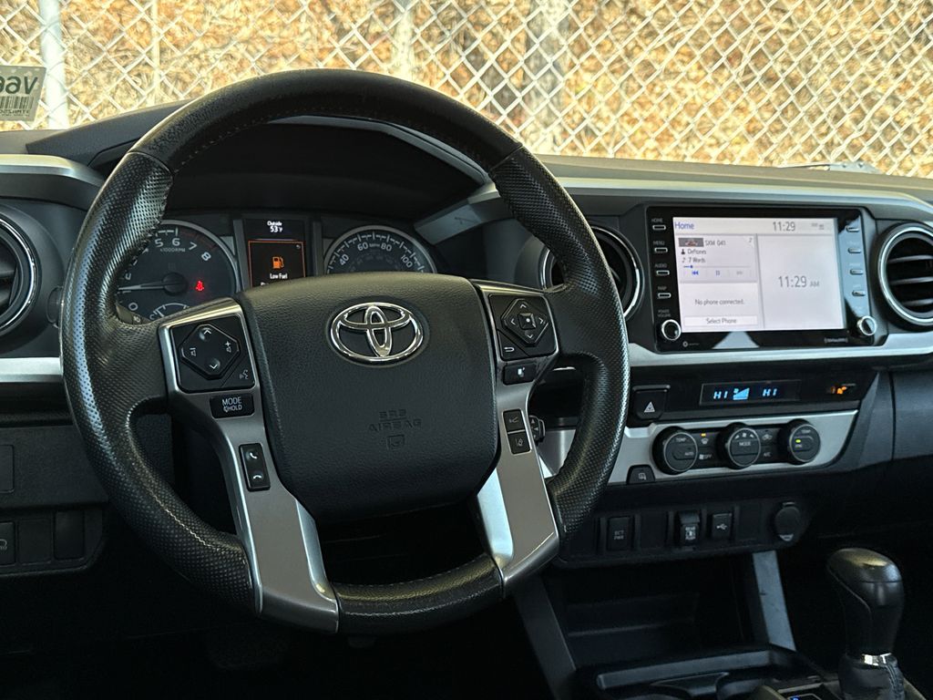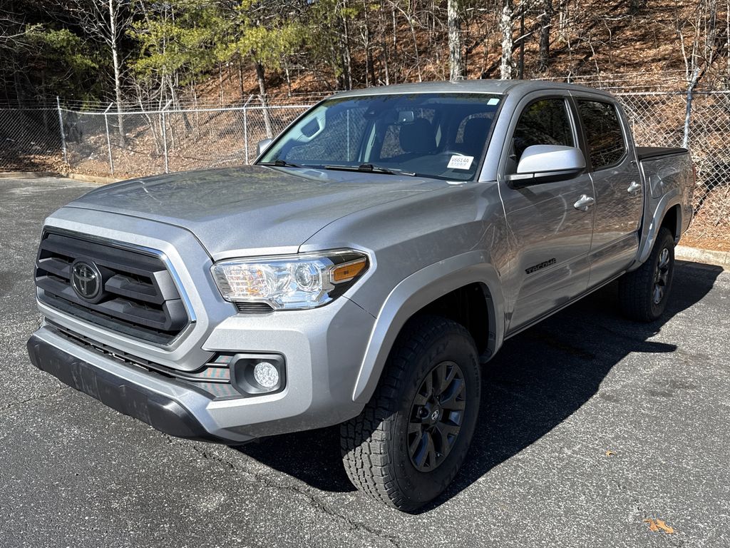 **Local Trade In**, **Clean Carfax**, **Front bucket seats with center console**, **Bluetooth/Hands Free**, **Rear back up camera**, **Reverse Sensing System**, **Blind Spot Detection**, **Lane monitor**, **Drivers Power Seat**, **Remote start**, and **SIRIUS SAT. RADIO** 6 Speakers, ABS brakes, Active Cruise Control, Air Conditioning, Alloy wheels, AM/FM radio: SiriusXM, Anti-whiplash front head restraints, Apple CarPlay/Android Auto, Auto High-beam Headlights, Auto-dimming Rear-View mirror, Automatic temperature control, Axle Ratio: 3.91, Brake assist, Bumpers: body-color, Driver door bin, Dual front impact airbags, Dual front side impact airbags, Electronic Stability Control, Emergency communication system: Safety Connect with 1-year trial, Exterior Parking Camera Rear, Fabric Seat Trim (FC), Front anti-roll bar, Front Bucket Seats, Front Center Armrest, Front fog lights, Front reading lights, Front Seats, Front wheel independent suspension, Illuminated entry, Knee airbag, Low tire pressure warning, Occupant sensing airbag, Outside temperature display, Overhead airbag, Overhead console, Panic alarm, Passenger door bin, Power door mirrors, Power driver seat, Power steering, Power windows, Radio: AM/FM Radio, Rear step bumper, Remote keyless entry, Speed control, Speed-sensing steering, Split folding rear seat, Steering wheel mounted audio controls, Tachometer, Telescoping steering wheel, Tilt steering wheel, Traction control, Trip computer, Variably intermittent wipers, and Wheels: 16" x 7J Silver Alloy Shottenkirk Ford of Jasper is pleased to offer you this exceptional 2021 Toyota Tacoma. This SR5 Tacoma Exterior is finished in Silver Sky Metallic and the interior is finished in Cement w/Fabric Seat Trim (FB) Clean CARFAX.