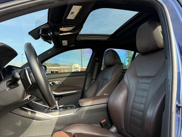 This vehicle comes well equipped with Connected Package Pro, Driving Assistance Package (Active Blind Spot Detection, Active Driving Assistant, Lane Departure Warning System, and Park Distance Control), Premium Package (Comfort Access Keyless Entry, Gesture Control, Head-Up Display, Heated Front Seats, Heated Steering Wheel, and Lumbar Support), 330i, 2.0L 4-Cylinder DOHC 16V Turbocharged, RWD, Phytonic Blue Metallic, Mocha Leather, 10 Speakers, 4-Wheel Disc Brakes, ABS brakes, Air Conditioning, AM/FM radio: SiriusXM with 360L, Apple CarPlay & Android Auto Compatibility, Apple CarPlay Compatibility, Auto High-beam Headlights, Auto-dimming door mirrors, Auto-dimming Rear-View mirror, Automatic temperature control, BMW Assist eCall, BMW TeleServices, Brake assist, Bumpers: body-color, Compass, ConnectedDrive Services, Delay-off headlights, Driver door bin, Driver vanity mirror, Dual front impact airbags, Dual front side impact airbags, Electronic Stability Control, Emergency communication system: BMW Assist eCall, Enhanced Bluetooth, Exterior Parking Camera Rear, Four wheel independent suspension, Front anti-roll bar, Front Bucket Seats, Front Center Armrest, Front dual zone A/C, Front reading lights, Fully automatic headlights, Garage door transmitter, Genuine wood console insert, Genuine woo