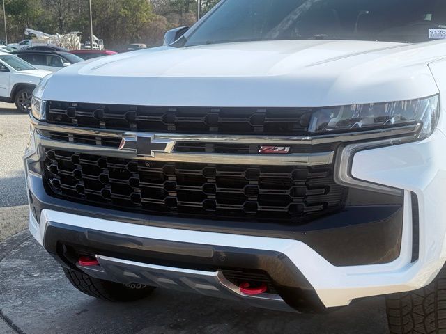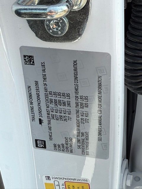 This vehicle comes well equipped with Advanced Trailering Package (Hitch Guidance w/Hitch View, Integrated Trailer Brake Controller, and Smart Trailer Integration Indicator), Driver Alert Package (Lane Change Alert w/Side Blind Zone Alert and Rear Cross Traffic Alert), Luxury Package (2nd Row Pwr Release 60/40 Split-Folding Bench Seat, 3rd Row 60/40 Power-Folding Split-Bench Seat, HD Surround Vision, Heated 2nd Row Outboard Seats, Heated Steering Wheel, Memory Settings, Outside Heated Power-Adjustable Mirrors, Power Tilt & Telescopic Steering Column, and Rear Pedestrian Alert), Max Trailering Package (Extra Capacity Cooling System), Off-Road Capability Package (Air Ride Adaptive Suspension, Electronic Limited-Slip Differential, and Magnetic Ride Control Suspension), Preferred Equipment Group 2Z7 (1st & 2nd Row Color-Keyed Carpeted Floor Mats, 2-Speed Active Electronic AutoTrac Transfer Case, Auto-Dimming Inside Rear-View Mirror, Automatic Stop/Start, Black Tubular Assist Steps, Bose 9-Speaker Stereo Audio System Feature, Bright Front & Rear Door Sill Plates, Color-Keyed Carpeting Floor Covering, Driver & Front Outboard Passenger Airbags, Enhanced Driver Information Center, Floor Console w/Storage Area, Front High-Approach Angle Fascia, Hands-Free Rear Power Programmable Liftgate, Hill Descent Control, Infotainment Display, Leather-Wrapped Steering Wheel, LED Daytime Running Lamps, Memory Settings for Driver, Red Horizontal-Mounted Recovery Hooks, Remote Start, SiriusXM Radio w/360L, Start/Stop System Disable Button, Universal Home Remote, and Wireless Charging), Z71 Off-Road Package, Tahoe Z71, 4D Sport Utility, EcoTec3 5.3L V8, 10-Speed Automatic with Overdrive, 4WD, Summit White, Black Leather, and Navigation System Advanced Trailering Package (Hitch Guidance w/Hitch View, Integrated Trailer Bra