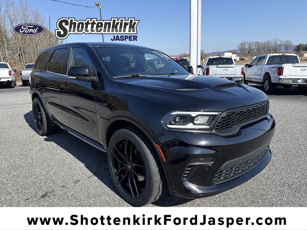 **Local Trade In**, **Clean Carfax**, **Low Mileage**, **Power Sunroof/Moonroof**, **Leather interior**, **Heated Seats, **Front bucket seats with center console**, Apple car play/ Android auto, **Bluetooth/Hands Free**, **Rear back up camera**, **Reverse Sensing System**, **Blind Spot Detection**, **Lane monitor**, **2nd row buckets seats**, **Power liftgate**, **Remote start**, **SIRIUS SAT. RADIO**, and SiriusXM Guardian Connected Service w/Trial Period SiriusXM with 6Month Radio Sub Call 8006432112 SiriusXM with 360L Uconnect 5 Nav with 10.1Inch Touch Screen Display 10.1Inch Touchscreen Display Dodge Performance Pages Apple CarPlay Google Android Auto Global Telematics Box Module (TBM) 4G LTE WiFi Hot Spot Connected Travel and Traffic Services Wireless ChargingPad Heated Front Seats Heated SecondRow Seats Heated Steering Wheel SteeringWheelMounted Paddle Shifters Pwr 8Way Driver Seat with Memory & 8Way Pass Seat Power Driver / Passenger 4Way Lumbar Adjust EXTERIOR FEATURES BiFunction LED Projector Headlamps LED Aux Low Beam and Turn Signal Premium LED Fog Lamps 20Inch x 8.0Inch FineSilver Wheels 265/50R20 BSW AllSeason LRR Tires Performance Hood FullSize Spare Tire Dual Rear Exhaust w/ Bright Tips Blacktop Package (Gloss Black Badges, Gloss Black Exterior Mirrors, Satin Black Dodge Tail Lamp Badge, and Wheels: 20" x 8.0" Black Noise Aluminum), Quick Order Package 22S R/T, 2nd Row Fold/Tumble Captain Chairs, 2nd Row Mini Console w/Cupholders, 2nd Row Seat Mounted Inboard Armrests, 3.09 Rear Axle Ratio, 3rd row seats: split-bench, 4-Wheel Disc Brakes, 6-Passenger Seating, 9 Speakers, ABS brakes, Air Conditioning, Alloy wheels, AM/FM radio: SiriusXM w/360L, Anti-whiplash front head restraints, Apple CarPlay/Android Auto, Audio memory, Auto High-beam Headlights, Auto-dimming door mirrors, Auto-dimming Rear-View mirror, Auto-leveling suspension, Automatic temperature control, Brake assist, Bumpers: body-color, Compass, Delay-off headlights, Driver door bin, Driver vanity mirror, Dual front impact airbags, Dual front side impact airbags, Electronic Stability Control, Emergency communication system: SiriusXM Guardian, Four wheel independent suspension, Front anti-roll bar, Front Bucket Seats, Front Center Armrest w/Storage, Front dual zone A/C, Front fog lights, Front reading lights, Fully automatic headlights, Garage door transmitter, Heated door mirrors, Heated front seats, Heated rear seats, Heated steering wheel, Heavy-Duty Engine Cooling, Illuminated entry, Knee airbag, Leather steering wheel, Leather Suede Bucket Seats, Low tire pressure warning, Memory seat, Mini Console 3rd Row Floor Mat, Navigation system: TomTom, Occupant sensing airbag, Outside temperature display, Overhead airbag, Overhead console, Panic alarm, ParkView Rear Back-Up Camera, Passenger door bin, Passenger vanity mirror, Power door mirrors, Power driver seat, Power Liftgate, Power passenger seat, Power steering, Power windows, Radio data system, Radio: Uconnect 5 Nav w/10.1" Display, Rain sensing wipers, Rear air conditioning, Rear anti-roll bar, Rear Load Leveling Suspension, Rear reading lights, Rear seat center armrest, Rear window defroster, Rear window wiper, Remote keyless entry, Security system, Speed control, Speed-sensing steering, Speed-Sensitive Wipers, Split folding rear seat, Spoiler, Steering wheel mounted audio controls, Tachometer, Telescoping steering wheel, Tilt steering wheel, Traction control, Trip computer, Turn signal indicator mirrors, Variably intermittent wipers, and Voltmeter Shottenkirk Ford of Jasper is pleased to offer you this exceptional 2022 Dodge Durango. This R/T Durango Exterior is finished in DB Black Crystal Clearcoat and the interior is finished in Black Leather. Clean CARFAX.