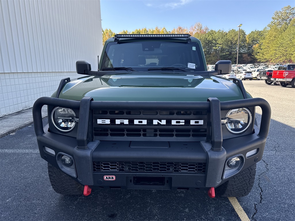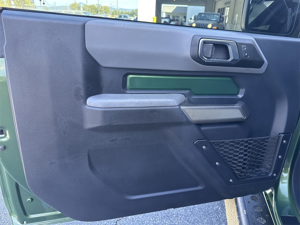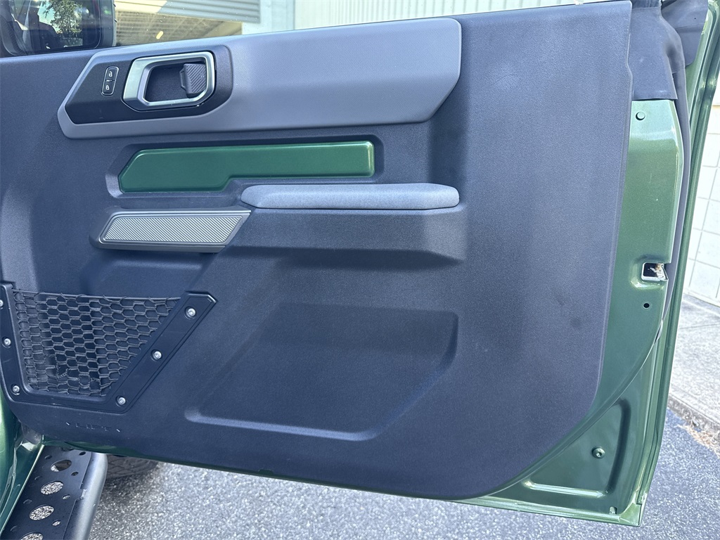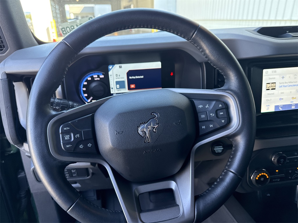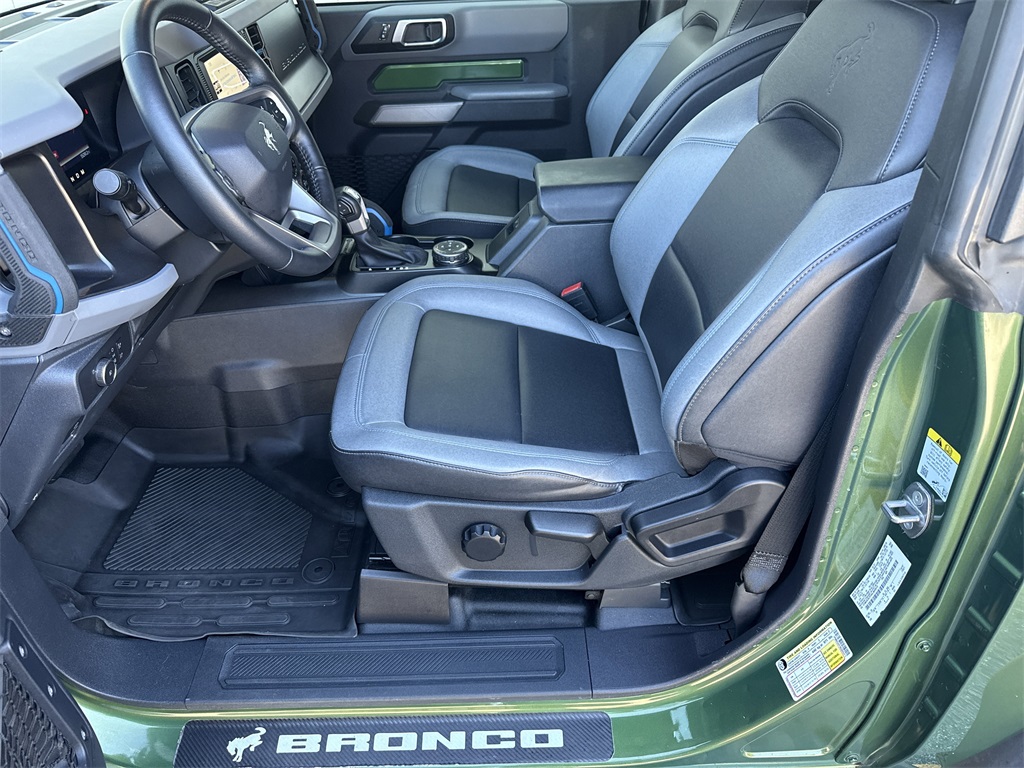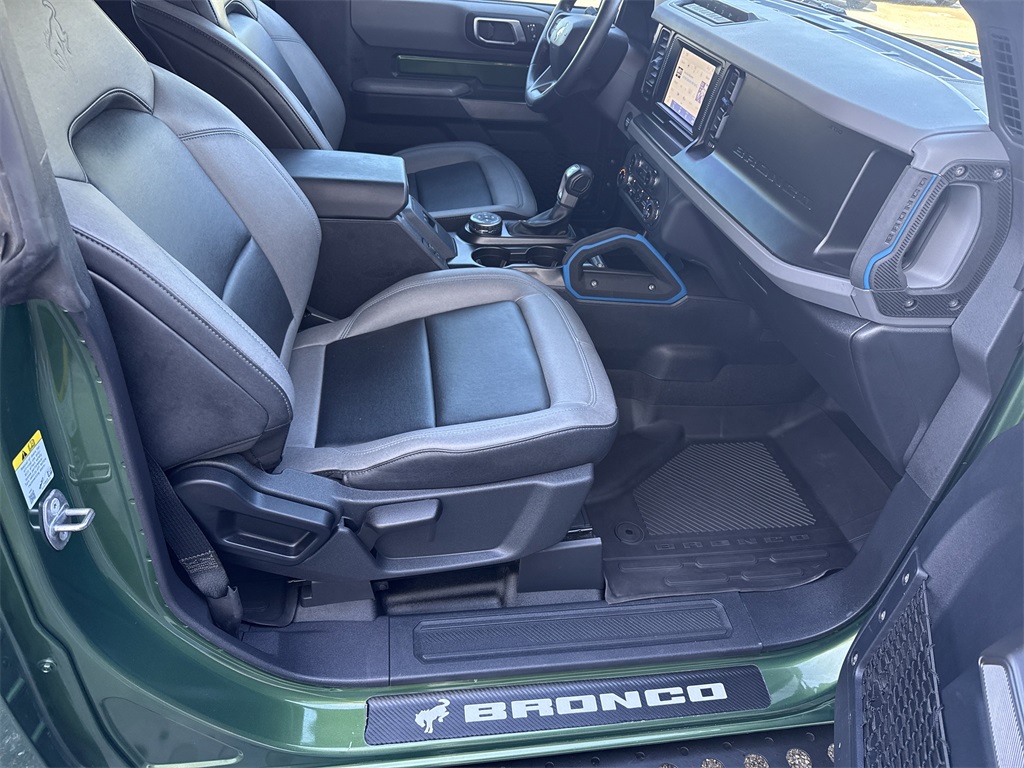**Local Trade In**, **One Owner**, Sasquatch package, Hard Top, **Leather interior**, **Heated Seats, **Front bucket seats with center console**, Apple car play/ Android auto, **Ford Sync Bluetooth**, **Bluetooth/Hands Free**, **Rear back up camera**, **Reverse Sensing System**, **Blind Spot Detection**, **Remote start**, and **SIRIUS SAT. RADIO** Equipment Group 321A Standard Package, Sasquatch Package (4.7 Final Drive Ratio, High Clearance Fender Flares, High Clearance Suspension, Position-Sensitive Bilstein Shock Absorbers, and Wheels: 17" Black High Gloss-Painted Aluminum), 4-Wheel Disc Brakes, 6 Speakers, ABS brakes, Air Conditioning, AM/FM radio: SiriusXM with 360L, AM/FM Stereo, Auto High-beam Headlights, Brake assist, Brush Guard, Compass, Convertible HardTop, Convertible roof lining, Delay-off headlights, Driver door bin, Driver vanity mirror, Dual front impact airbags, Dual front side impact airbags, Electronic Stability Control, Emergency communication system: 911 Assist, Exterior Parking Camera Rear, Front & Rear Floor Liners w/o Carpet Floor Mats, Front anti-roll bar, Front Bucket Seats, Front Center Armrest, Front reading lights, Front wheel independent suspension, Fully automatic headlights, Glass rear window, Heated door mirrors, Illuminated entry, Integrated roll-over protection, Keyless Entry Keypad, Leather Shift Knob, Low tire pressure warning, Marine Grade Vinyl Bucket Seats, Occupant sensing airbag, Outside temperature display, Overhead airbag, Overhead console, Panic alarm, Passenger door bin, Passenger vanity mirror, Power door mirrors, Power steering, Power windows, Radio data system, Rear window defroster, Rear window wiper, Remote keyless entry, Security system, SiriusXM Radio w/360L, Speed control, Split folding rear seat, Steering wheel mounted audio controls, SYNC 4, Tachometer, Telescoping steering wheel, Tilt steering wheel, Traction control, Trip computer, and Variably intermittent wipers Shottenkirk Ford of Jasper is pleased to offer you this exceptional 2022 Ford Bronco. This Black Diamond Bronco Exterior is finished in Eruption Green Metallic and the interior is finished in Dark Space Gray w/Black Onyx w/Marine Grade Vinyl Bucket Seats. CARFAX One-Owner. Priced below KBB Fair Purchase Price!