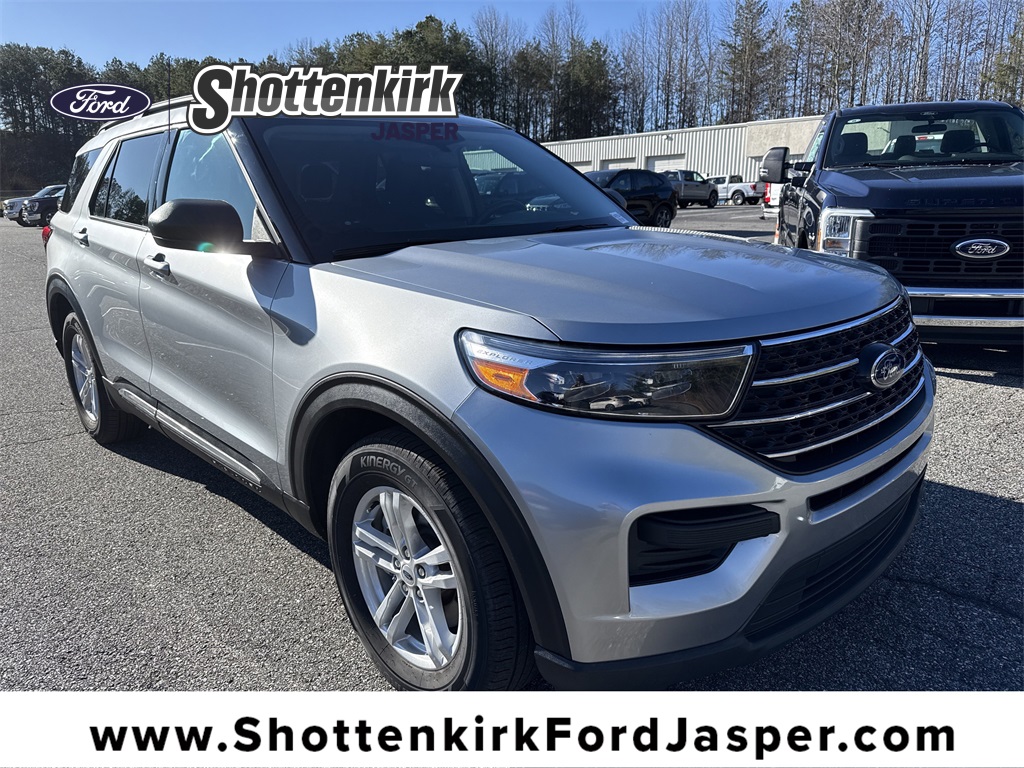 **One Owner**, **Clean Carfax**, **Low Mileage**, **Heated Seats, **Front bucket seats with center console**, Apple car play/ Android auto, **Ford Sync Bluetooth**, **Bluetooth/Hands Free**, **Rear back up camera**, **Reverse Sensing System**, **Blind Spot Detection**, **Drivers Power Seat**, **Passenger power seat**, **Power liftgate**, **Power windows and locks**, **Remote start**, and **SIRIUS SAT. RADIO** Equipment Group 200A, 1st Row Heated Seats, 3.58 Non-Limited-Slip Rear Axle Ratio, 3rd row seats: bench, 4-Wheel Disc Brakes, 4G LTE Wi-Fi Hotspot Removal Credit, 6 Speakers, ABS brakes, Air Conditioning, Alloy wheels, AM/FM radio: SiriusXM, AM/FM Stereo, Auto High-beam Headlights, Auto Start-Stop Removal, Automatic temperature control, Brake assist, Bumpers: body-color, Compass, Delay-off headlights, Driver door bin, Driver vanity mirror, Dual front impact airbags, Dual front side impact airbags, Electronic Stability Control, Emergency communication system: SYNC 3 911 Assist, Exterior Parking Camera Rear, FordPass Connect, Four wheel independent suspension, Front anti-roll bar, Front Bucket Seats, Front Center Armrest, Front dual zone A/C, Front reading lights, Fully automatic headlights, Heated door mirrors, Heated front seats, Illuminated entry, Knee airbag, Leather steering wheel, Low tire pressure warning, Occupant sensing airbag, Outside temperature display, Overhead airbag, Overhead console, Panic alarm, Passenger door bin, Passenger vanity mirror, Power door mirrors, Power driver seat, Power Liftgate, Power passenger seat, Power steering, Power windows, Rear air conditioning, Rear anti-roll bar, Rear reading lights, Rear window defroster, Rear window wiper, Remote keyless entry, Roof rack: rails only, Security system, Speed control, Speed-sensing steering, Speed-Sensitive Wipers, Split folding rear seat, Spoiler, Steering wheel mounted audio controls, SYNC 3 Communications & Entertainment System, SYNC 3/Apple CarPlay/Android Auto, Tachometer, Telescoping steering wheel, Tilt steering wheel, Traction control, Trip computer, Unique Cloth Captain's Chairs, Variably intermittent wipers, and Wheels: 18" 5-Spoke Silver-Painted Aluminum Shottenkirk Ford of Jasper is pleased to offer you this exceptional 2022 Ford Explorer. This XLT Explorer Exterior is finished in Iconic Silver Metallic and the interior is finished in Ebony w/Unique Cloth Captain's Chairs. CARFAX One-Owner. Clean CARFAX. 21/28 City/Highway MPG Priced below KBB Fair Purchase Price!