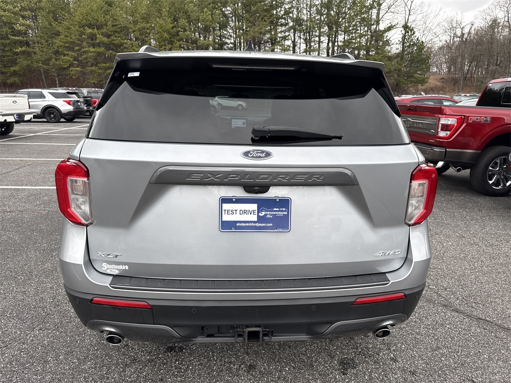 **One Owner**, **Clean Carfax**, Twin Panel Moonroof, **Panoramic Vista Roof**, **Leather interior**, **Heated Seats, **Front bucket seats with center console**, Apple car play/ Android auto, **Ford Sync Bluetooth**, **Bluetooth/Hands Free**, **Rear back up camera**, **Reverse Sensing System**, **Blind Spot Detection**, **Lane monitor**, **GPS/ Navigation**, **Drivers Power Seat**, **Power liftgate**, **Remote start**, **SIRIUS SAT. RADIO**, **XLT Sport Package**, and Forward collison/adaptive cruise control Class IV Trailer Tow Package, Equipment Group 202A (1st Row Heated Seats, Acoustic-Laminated Front Side Windows, ActiveX Captain's Chairs, Heated Steering Wheel, LED Fog Lamps, Remote Start System, and SecuriCode Keyless Entry Keypad), Ford Co-Pilot360 Assist+ (Evasive Steering Assist, Intelligent Adaptive Cruise Control, Speed Sign Recognition, and Voice-Activated Touchscreen Navigation System), XLT Sport Appearance Package (Wheels: 20" 10-Spoke Carbonized Gray-Painted), 3.58 Non-Limited-Slip Rear Axle Ratio, 3rd row seats: bench, 4-Wheel Disc Brakes, 6 Speakers, ABS brakes, Air Conditioning, Alloy wheels, AM/FM radio: SiriusXM, AM/FM Stereo, Auto High-beam Headlights, Auto Start-Stop Removal, Automatic temperature control, Brake assist, Bumpers: body-color, Compass, Delay-off headlights, Driver door bin, Driver vanity mirror, Dual front impact airbags, Dual front side impact airbags, Electronic Stability Control, Emergency communication system: SYNC 3 911 Assist, Exterior Parking Camera Rear, FordPass Connect, Four wheel independent suspension, Front anti-roll bar, Front Bucket Seats, Front Center Armrest, Front dual zone A/C, Front reading lights, Fully automatic headlights, Heated door mirrors, Heated front seats, Illuminated entry, Knee airbag, Leather steering wheel, Low tire pressure warning, Occupant sensing airbag, Outside temperature display, Overhead airbag, Overhead console, Panic alarm, Passenger door bin, Passenger vanity mirror, Power door mirrors, Power driver seat, Power Liftgate, Power passenger seat, Power steering, Power windows, Rear air conditioning, Rear anti-roll bar, Rear Auxiliary Controls Credit, Rear reading lights, Rear window defroster, Rear window wiper, Remote keyless entry, Roof rack: rails only, Security system, Speed control, Speed-sensing steering, Speed-Sensitive Wipers, Split folding rear seat, Spoiler, Steering wheel mounted audio controls, SYNC 3 Communications & Entertainment System, SYNC 3/Apple CarPlay/Android Auto, Tachometer, Telescoping steering wheel, Tilt steering wheel, Traction control, Trip computer, Twin Panel Moonroof, Unique Cloth Captain's Chairs, and Variably intermittent wipers Shottenkirk Ford of Jasper is pleased to offer you this exceptional 2022 Ford Explorer. This XLT Explorer Exterior is finished in Iconic Silver Metallic and the interior is finished in Ebony w/ActiveX Captain's Chairs w/Miko Inserts. CARFAX One-Owner. Clean CARFAX. 20/27 City/Highway MPG