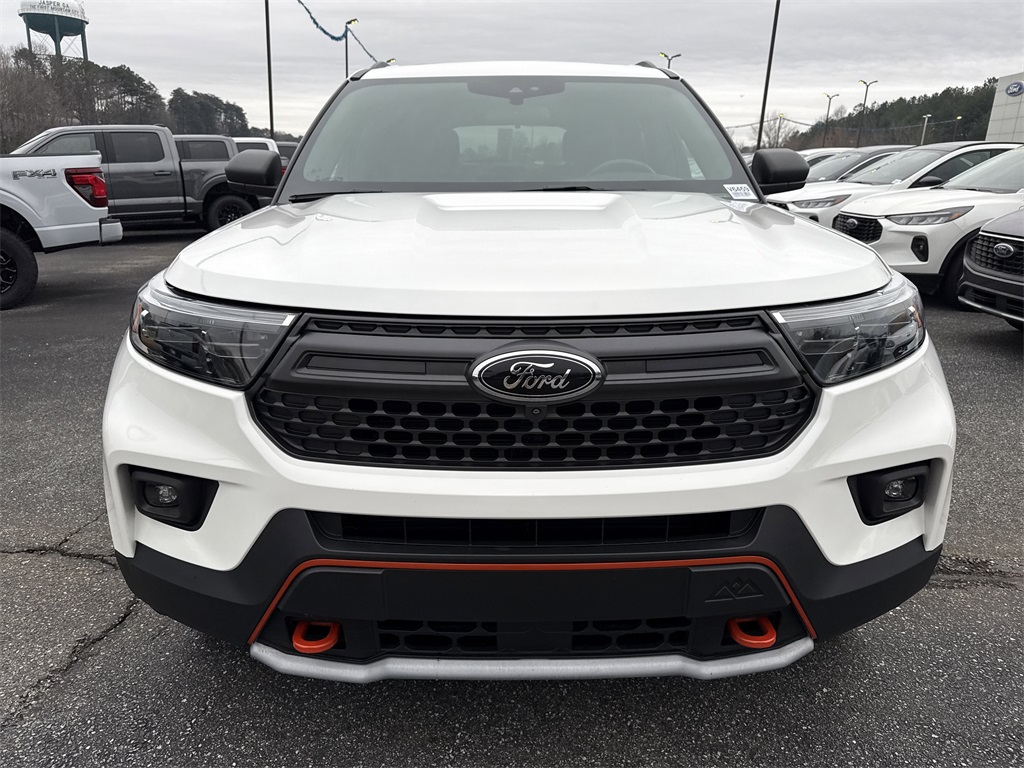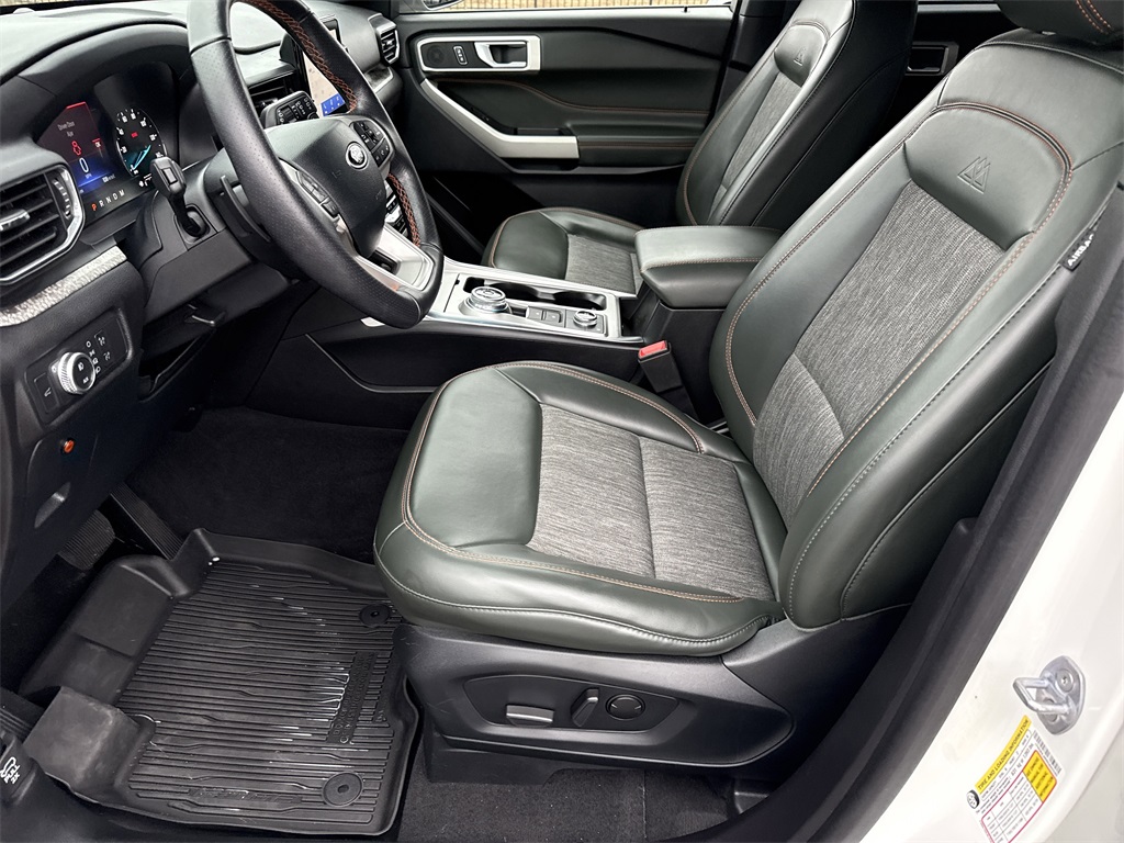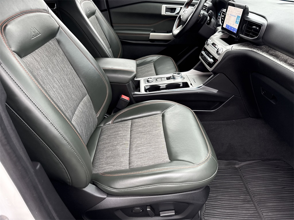 **One Owner**, **Clean Carfax**, **Low Mileage**, Twin Panel Moonroof, **Leather interior**, **Heated/Cooled Seats**, **Heated Seats, **Front bucket seats with center console**, Apple car play/ Android auto, **Ford Sync Bluetooth**, **Bluetooth/Hands Free**, **Rear back up camera**, **Reverse Sensing System**, **Blind Spot Detection**, **Lane monitor**, **GPS/ Navigation**, **2nd Row Heated Seats**, **2nd row buckets seats**, **Drivers Power Seat**, **Passenger power seat**, **Power liftgate**, **Power windows and locks**, **Remote start**, **SIRIUS SAT. RADIO**, Forward collison/adaptive cruise control, B&O sound system, and STAR WHITE MET TRI-COAT .18" BLK-PNTD ALUM WHLS W/LOGO .P265/65R18 A/T BSW TIRES 50 STATE EMISSIONS TWIN PANEL MOONROOF Equipment Group 800A, 1st Row Heated Seats, 2nd Row Heated Seat Controls Credit, 3.58 Torsen Limited Slip Rear Axle, 3rd row seats: bench, 4-Wheel Disc Brakes, 6 Speakers, ABS brakes, ActiveX Seat Material Captain's Charis, Air Conditioning, Alloy wheels, AM/FM radio: SiriusXM, AM/FM Stereo, Auto High-beam Headlights, Auto Start-Stop Removal, Automatic temperature control, Brake assist, Bumpers: body-color, Compass, Delay-off headlights, Driver door bin, Driver vanity mirror, Dual front impact airbags, Dual front side impact airbags, Electronic Stability Control, Emergency communication system: SYNC 3 911 Assist, Exterior Parking Camera Rear, FordPass Connect, Four wheel independent suspension, Front anti-roll bar, Front Bucket Seats, Front Center Armrest, Front dual zone A/C, Front fog lights, Front reading lights, Fully automatic headlights, Heated door mirrors, Heated front seats, Heated rear seats, Heated steering wheel, Illuminated entry, Knee airbag, Leather steering wheel, Low tire pressure warning, Navigation System, Occupant sensing airbag, Outside temperature display, Overhead airbag, Overhead console, Panic alarm, Passenger door bin, Passenger vanity mirror, Power door mirrors, Power driver seat, Power Liftgate, Power passenger seat, Power steering, Power windows, Rear air conditioning, Rear anti-roll bar, Rear Auxiliary Controls Credit, Rear reading lights, Rear window defroster, Rear window wiper, Remote keyless entry, Roof rack: rails only, Security system, SelectShift Capability w/Paddle Shifters, Speed control, Speed-sensing steering, Speed-Sensitive Wipers, Split folding rear seat, Spoiler, Sport steering wheel, Steering wheel mounted audio controls, SYNC 3 Communications & Entertainment System, SYNC 3/Apple CarPlay/Android Auto, Tachometer, Telescoping steering wheel, Tilt steering wheel, Traction control, Trip computer, Twin Panel Moonroof, Variably intermittent wipers, Voice-Activated Touchscreen Navigation System, and Wheels: 18" High Gloss Black-Painted Aluminum Shottenkirk Ford of Jasper is pleased to offer you this exceptional 2022 Ford Explorer. This Timberline Explorer Exterior is finished in Star White Metallic Tri-Coat and the interior is finished in Deep Cypress w/ActiveX Seat Material Captain's Charis. CARFAX One-Owner. Clean CARFAX. Priced below KBB Fair Purchase Price!