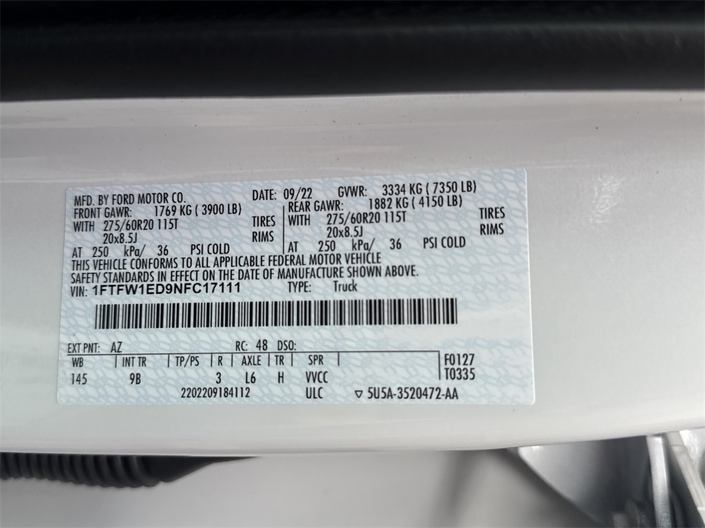 ** Super Clean **, **One Owner**, **Clean Carfax**, Twin Panel Moonroof, **Leather interior**, **Heated/Cooled Seats**, **Heated Seats, **Front bucket seats with center console**, Apple car play/ Android auto, **Ford Sync Bluetooth**, **Bluetooth/Hands Free**, **Rear back up camera**, **Reverse Sensing System**, **Blind Spot Detection**, **Lane monitor**, **GPS/ Navigation**, **2nd Row Heated Seats**, **FX4 Package**, **New tires**, **Power liftgate**, **Remote start**, Power running boards, **SIRIUS SAT. RADIO**, **Spotless inside and out**, **Spray in bedliner**, **Upgraded wheels and tires**, **Well maintained**, Forward collison/adaptive cruise control, and B&O sound system Bed Utility Package (BoxLink, LED Box Lighting, Power Tailgate, and Tailgate Step w/Tailgate Work Surface), Equipment Group 700A Standard, FX4 Off-Road Package (4x4 FX4 Off-Road Bodyside Decal, Electronic Locking w/3.31 Axle Ratio, Hill Descent Control, Monotube Rear Shocks, Off-Road Tuned Front Shock Absorbers, Rock Crawl Mode, and Tray Style Floor Liner), GVWR: 7,350 lbs Payload Package, Tow Technology Package (360 Degree Camera and Pro Trailer Backup Assist), 20" Polished Aluminum Wheels, 4-Wheel Disc Brakes, 8 Speakers, ABS brakes, Adjustable pedals, Air Conditioning, Alloy wheels, AM/FM radio: SiriusXM with 360L, Auto High-beam Headlights, Auto Start-Stop Removal, Auto tilt-away steering wheel, Auto-dimming door mirrors, Auto-dimming Rear-View mirror, Automatic temperature control, Brake assist, Bumpers: body-color, Class IV Trailer Hitch Receiver, Compass, Delay-off headlights, Driver door bin, Driver vanity mirror, Dual front impact airbags, Dual front side impact airbags, Electronic Stability Control, Emergency communication system: SYNC 4 911 Assist, Exterior Parking Camera Rear, Front anti-roll bar, Front Bucket Seats, Front Center Armrest, Front dual zone A/C, Front fog lights, Front reading lights, Front wheel independent suspension, Fully automatic headlights, Garage door transmitter, Heated door mirrors, Heated front seats, Heated rear seats, Heated steering wheel, Illuminated entry, Integrated Trailer Brake Controller, Interior Work Surface, LED Sideview Mirror Spotlights, Low tire pressure warning, Memory seat, Multicontour Seats w/Active Motion Removal, Occupant sensing airbag, Onboard Scale w/Smart Hitch, Outside temperature display, Overhead airbag, Overhead console, Panic alarm, Passenger door bin, Passenger vanity mirror, Pedal memory, Power door mirrors, Power driver seat, Power passenger seat, Power steering, Power windows, Radio data system, Radio: B&O Sound System by Bang & Olufsen, Rain sensing wipers, Rear reading lights, Rear seat center armrest, Rear step bumper, Rear window defroster, Remote keyless entry, Security system, Speed control, Speed-sensing steering, Split folding rear seat, Steering wheel memory, Steering wheel mounted audio controls, SYNC 4 w/Enhanced Voice Recognition, Tachometer, Telescoping steering wheel, Tilt steering wheel, Tough Bed Spray-In Bedliner, Traction control, Trip computer, Turn signal indicator mirrors, Twin Panel Moonroof, Unique Multi-Contour Leather Bucket Seats, Variably intermittent wipers, Ventilated front seats, Voltmeter, and Wheel Well Liner Shottenkirk Ford of Jasper is pleased to offer you this exceptional 2022 Ford F-150. This Platinum F-150 Exterior is finished in Star White Metallic Tri-Coat and the interior is finished in Black w/Leather-Trimmed 40/Console/40 Front Seat. CARFAX One-Owner. Clean CARFAX. Priced below KBB Fair Purchase Price!2022 Ford F-150 Platinum 10-Speed Automatic 4WD 3.5L PowerBoost Full-Hybrid V6Shottenkirk Customer Care* is included in all Purchases! 6 Months or 6000 Miles Powertrain Coverage, 1 Year Paintless Dent/Ding Removal - One year Windshield Repair, see dealer for complete details in store or at www.shottenkirkfordjasper.com Another fine automobile offered by Shottenkirk Automotive Group Online All the Time!