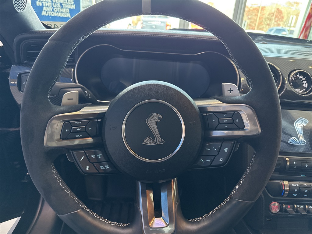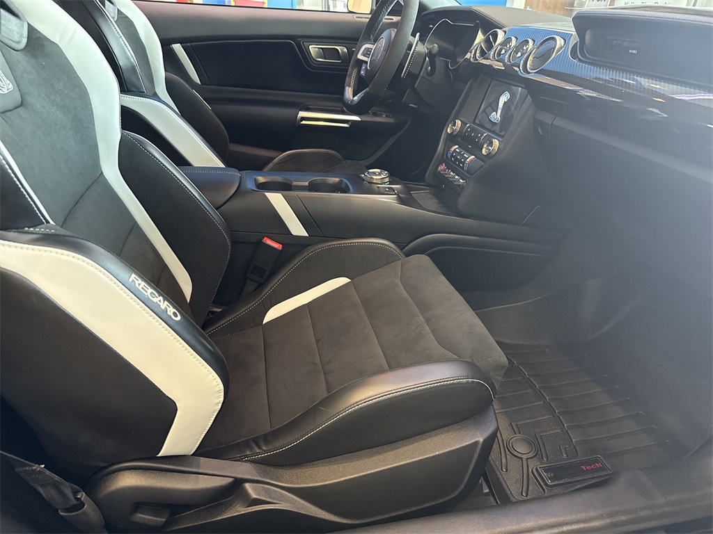 **Local Trade In**, **One Owner**, **Clean Carfax**, **Low Mileage**, **Leather interior**, **Heated Seats, **Front bucket seats with center console**, Apple car play/ Android auto, **Ford Sync Bluetooth**, **Bluetooth/Hands Free**, **Rear back up camera**, **Reverse Sensing System**, **Blind Spot Detection**, **Lane monitor**, **GPS/ Navigation**, **Remote start**, **SIRIUS SAT. RADIO**, **Spotless inside and out**, **Upgraded wheels and tires**, GOLDEN TICKET, TRACK PACK, CERAMIC COATED, and GEORGIA CAR Carbon Fiber Track Pack (Adjustable Strut Top Mounts, Exposed Carbon Fiber GT4 Track Wing, Exposed Carbon Fiber Instrument Panel, RECARO Leather-Trimmed Seats w/Miko Suede, and Wheels: 20" Exposed Carbon Fiber), Equipment Group 950A, Technology Package (BLIS Blind Spot Information System, Heated Mirrors, Radio: B&O Sound System by Bang & Olufsen, and Voice-Activated Touch-Screen Navigation System), 4-Wheel Disc Brakes, 9 Speakers, ABS brakes, Adaptive suspension, Air Conditioning, AM/FM radio: SiriusXM, AM/FM Stereo, Auto-dimming Rear-View mirror, Automatic temperature control, Brake assist, Bumpers: body-color, Climate Controlled Front Seats, Compass, Delay-off headlights, Driver door bin, Driver vanity mirror, Dual front impact airbags, Dual front side impact airbags, Electronic Stability Control, Emergency communication system: 911 Assist, Exterior Parking Camera Rear, Four wheel independent suspension, Front anti-roll bar, Front Bucket Seats, Front Center Armrest, Front dual zone A/C, Front reading lights, Fully automatic headlights, Garage door transmitter, Heated front seats, High-Intensity Discharge Headlights, Illuminated entry, Knee airbag, Leather-Trimmed Sport Seats, Low tire pressure warning, Occupant sensing airbag, Outside temperature display, Overhead airbag, Panic alarm, Passenger door bin, Passenger vanity mirror, Power door mirrors, Power driver seat, Power passenger seat, Power steering, Power windows, Radio data system, Rear anti-roll bar, Rear window defroster, Remote keyless entry, Security system, SiriusXM Radio, Speed control, Speed-sensing steering, Speed-Sensitive Wipers, Split folding rear seat, Spoiler, Sport steering wheel, Steering wheel mounted audio controls, SYNC 3 Communications & Entertainment System, Tachometer, Telescoping steering wheel, Tilt steering wheel, Traction control, Trip computer, Variably intermittent wipers, Ventilated front seats, and Voltmeter Shottenkirk Ford of Jasper is pleased to offer you this exceptional 2022 Ford Mustang. This Shelby GT500 Mustang Exterior is finished in Shadow Black and the interior is finished in Ebony w/Metal Gray Stitch w/Leather-Trimmed Bucket Seats w/Color Accents. CARFAX One-Owner. Clean CARFAX.