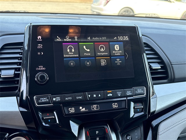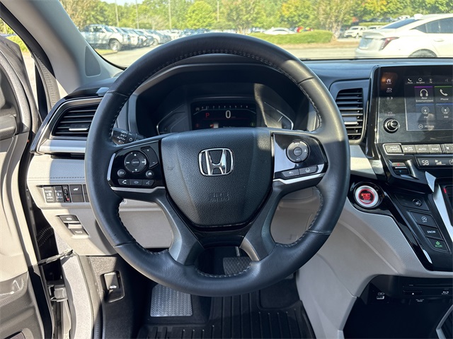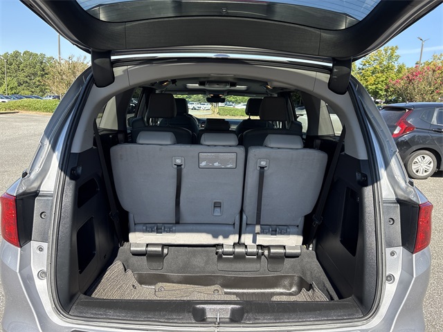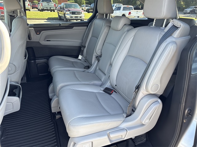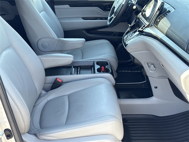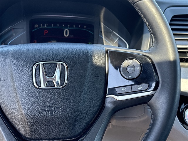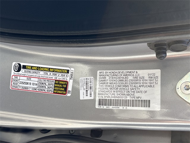 This vehicle comes well equipped with 3rd row seats: split-bench, 4-Wheel Disc Brakes, 7 Speakers, A/V remote: CabinControl, ABS brakes, Adaptive Cruise Control: Adaptive Cruise Control (ACC) with Low-Speed Follow, Air Conditioning, Alloy wheels, AM/FM radio: SiriusXM, Anti-whiplash front head restraints, Apple CarPlay/Android Auto, Auto High-beam Headlights, Auto-dimming Rear-View mirror, Automatic temperature control, Blind Spot Information (BSI) System warning, Brake assist, Bumpers: body-color, CD player, Compass, Delay-off headlights, Driver door bin, Driver vanity mirror, Driver's Seat Mounted Armrest, Dual front impact airbags, Dual front side impact airbags, DVD-Audio, Electronic Stability Control, Emergency communication system: HondaLink, Exterior Parking Camera Rear, Forward collision: Collision Mitigation Braking System (CMBS) + FCW mitigation, Four wheel independent suspension, Front anti-roll bar, Front Bucket Seats, Front dual zone A/C, Front fog lights, Front reading lights, Fully automatic headlights, Garage door transmitter: HomeLink, Headphones, Heated door mirrors, Heated Front Bucket Seats, Heated front seats, Illuminated entry, Knee airbag, Lane departure: Lane Keeping Assist System (LKAS) active, Leather Seat Trim, Leather steering wheel, Low tire pressure warning, Memory seat, Navigation system: Honda Satellite-Linked Navigation System, Occupant sensing airbag, Outside temperature display, Overhead airbag, Overhead console, Panic alarm, Passenger door bin, Passenger seat