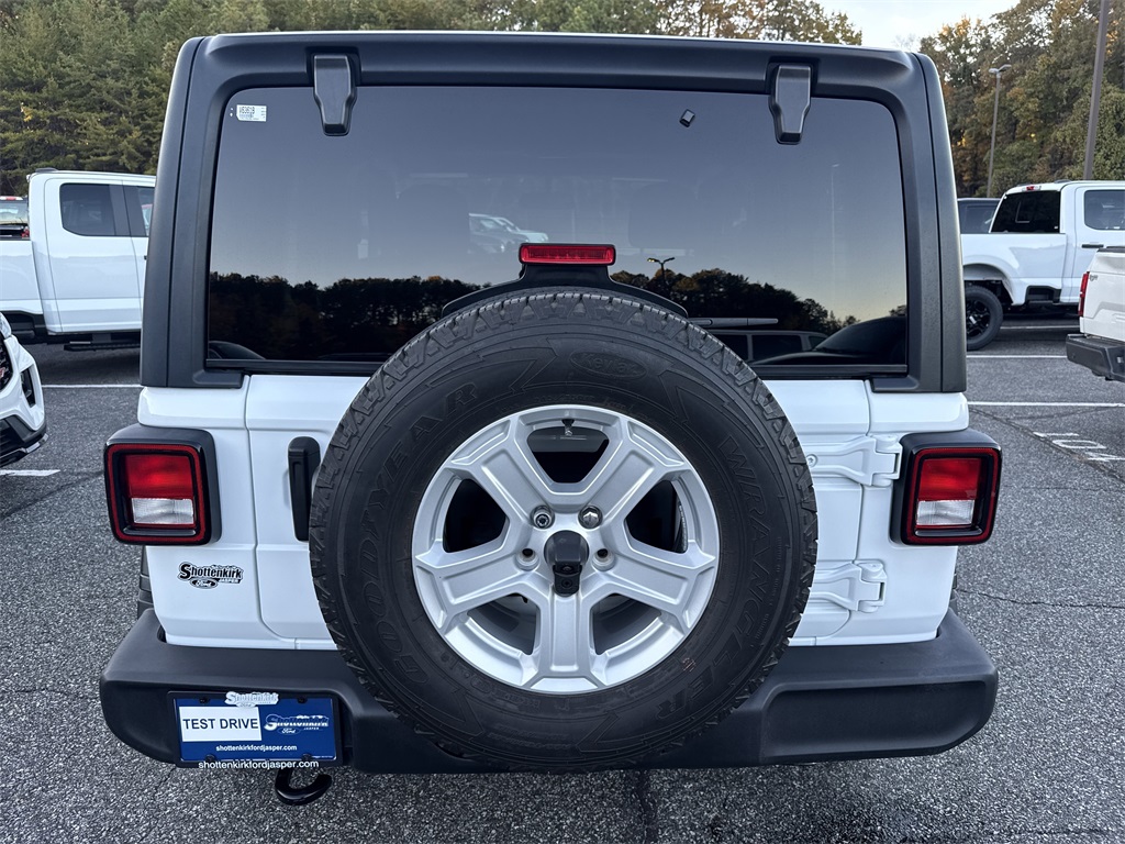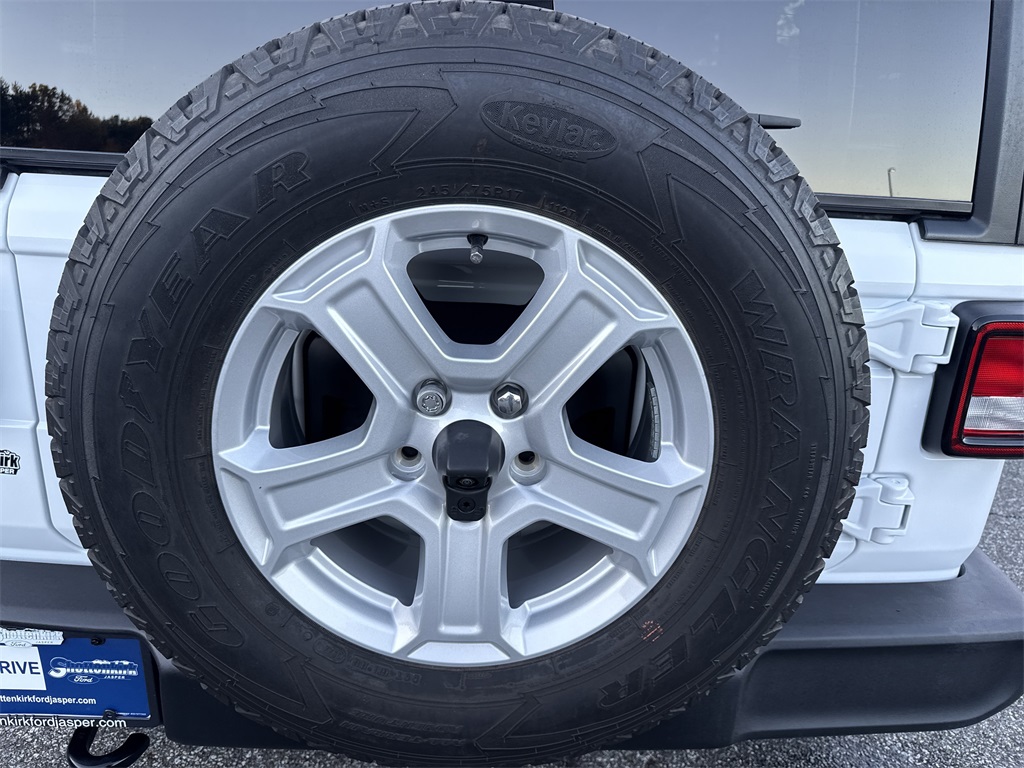 **Local Trade In**, **One Owner**, **Clean Carfax**, **Low Mileage**, Soft Top, **Front bucket seats with center console**, **Bluetooth/Hands Free**, **Rear back up camera**, **Reverse Sensing System**, and **SIRIUS SAT. RADIO** Cold Weather Group (Heated Front Seats, Heated Steering Wheel, and Leather Wrapped Steering Wheel), Convenience Group (Universal Garage Door Opener), Quick Order Package 22S Sport S (7.0" Touchscreen Display, Air Conditioning, Apple CarPlay, Automatic Headlamps, Deep Tint Sunscreen Windows, Front 1-Touch Down Power Windows, Global Telematics Box Module (TBM), Google Android Auto, GPS Antenna Input, Integrated Center Stack Radio, Integrated Voice Command w/Bluetooth, Power Heated Mirrors, R1234YF A/C Refrigerant, Radio: Uconnect 4 w/7" Display, Remote Keyless Entry, Security Alarm, SiriusXM Guardian-Included Trial (B), Speed Sensitive Power Locks, Sport S, Sun Visors w/Illuminated Vanity Mirrors, USB Host Flip, and Wheels: 17" x 7.5" Tech Silver Aluminum), 220 Amp Alternator, 3.45 Overall Top Gear Ratio, 4-Wheel Disc Brakes, 8 Speakers, ABS brakes, Alpine Premium Audio System, AM/FM radio, Auxiliary Battery, Black 3-Piece Hard Top, Brake assist, Cloth Low-Back Bucket Seats, Compass, Corning Gorilla Glass, Delay-off headlights, Driver door bin, Driver vanity mirror, Dual front impact airbags, Dual front side impact airbags, Electronic Stability Control, Emergency communication system: SiriusXM Guardian, Engine Oil Cooler, Freedom Panel Storage Bag, Front anti-roll bar, Front Bucket Seats, Front Center Armrest w/Storage, Front fog lights, Front reading lights, Integrated roll-over protection, Low tire pressure warning, Manufacturer's Statement of Origin, MOPAR All-Weather Floor Mats, No Soft Top, Non-Locking Fuel Cap w/o Discriminator, Normal Duty Suspension, Occupant sensing airbag, Outside temperature display, ParkView Rear Back-Up Camera, Passenger door bin, Passenger vanity mirror, Power steering, Radio data system, Radio: Uconnect 3 w/5" Display, Rear anti-roll bar, Rear reading lights, Rear Window Defroster, Rear Window Wiper/Washer, Speed control, Start-Stop Dual Battery System, Steering wheel mounted audio controls, Tachometer, Telescoping steering wheel, Tilt steering wheel, Traction control, Trip computer, and Variably intermittent wipers Shottenkirk Ford of Jasper is pleased to offer you this exceptional 2022 Jeep Wrangler. This Sport S Wrangler Exterior is finished in Bright White Clearcoat and the interior is finished in Black Cloth. CARFAX One-Owner. Clean CARFAX.