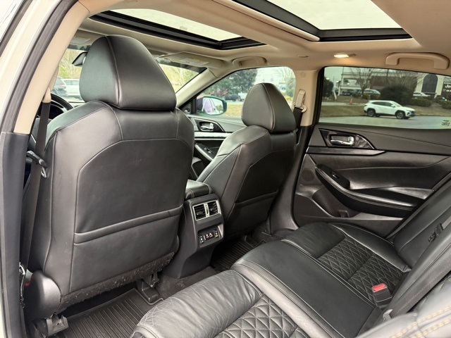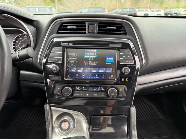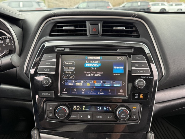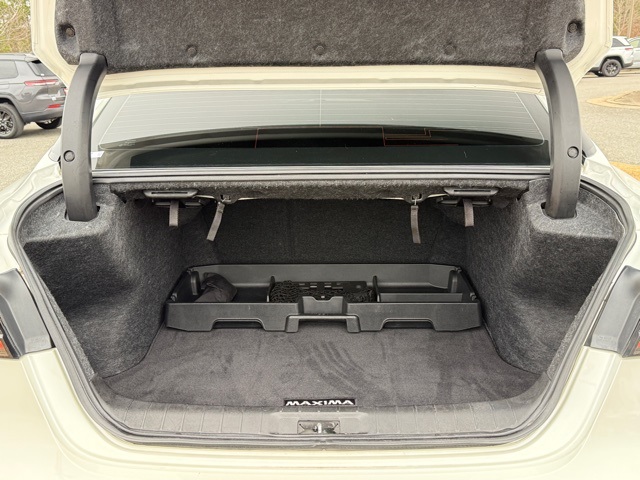 This vehicle comes well equipped with Maxima Platinum, 4D Sedan, 3.5L V6 DOHC 24V, CVT with Xtronic, FWD, Pearl White Tricoat, Charcoal Leather, and Navigation System Maxima Platinum, 4D Sedan, 3.5L V6 DOHC 24V, CVT with Xtronic, FWD, Pearl White Tricoat, Charcoal Leather, Navigation System, 11 Speakers, 19" Aluminum-Alloy Wheels, 4-Wheel Disc Brakes, ABS brakes, Air Conditioning, Alloy wheels, AM/FM radio: SiriusXM, Auto High-beam Headlights, Auto tilt-away steering wheel, Auto-dimming door mirrors, Auto-dimming Rear-View mirror, Automatic temperature control, Bag Hooks, Blind Spot Warning, Body-Colored Splash Guards, Brake assist, Bumpers: body-color, CD player, Compass, Delay-off headlights, Driver door bin, Driver vanity mirror, Dual front impact airbags, Dual front side impact airbags, Electronic Stability Control, Emergency communication system: NissanConnect Services, Exterior Parking Camera Rear, First-Aid Kit, Four wheel independent suspension, Front anti-roll bar, Front Bucket Seats, Front Center Armrest, Front dual zone A/C, Front fog lights, Front reading lights, Front Zero Gravity Climate-Controlled Seats, Fully automatic headlights, Garage door transmitter: HomeLink, Heated door mirrors, Heated front seats, Heated rear seats, Heated steering wheel, Illuminated entry, Knee airbag, Low tire pressure warning, Memory seat, NissanConnect featuring Apple CarPlay and Android Auto, Occupant sensing airbag, Outside temperature display, Overhead airbag, Overhead console, Panic alarm, Passenger door bin, Passenger vanity mirror, Power door mirrors, Power driver seat, Power moonroof, Power passenger seat, Power steering, Power windows, Premium Ascot Leather-Appointed Seat Trim, Radio data system, Radio: AM/FM/CD Bose Audio System, Rain sensing wipers, Rear anti-roll bar, Rear Diffuser, Rear reading lights, Rear seat center armrest, Rear side impact airbag, Rear Window Blind, Rear window defroster, Remote keyless entry, Security system, Sliding Trunk Organizer Tray, Speed control, Speed-sensing steering, Speed-Sensitive Wipers, Split folding rear seat, Sport Floor Mats, Sport steering wheel, Steering wheel memory, Steering wheel mounted audio controls, Tachometer, Telescoping steering wheel, Tilt steering wheel, Traction control, Trip computer, Trunk Mat, Trunk Net, Turn signal indicator mirrors, Variably intermittent wipers, and Ventilated front seats.