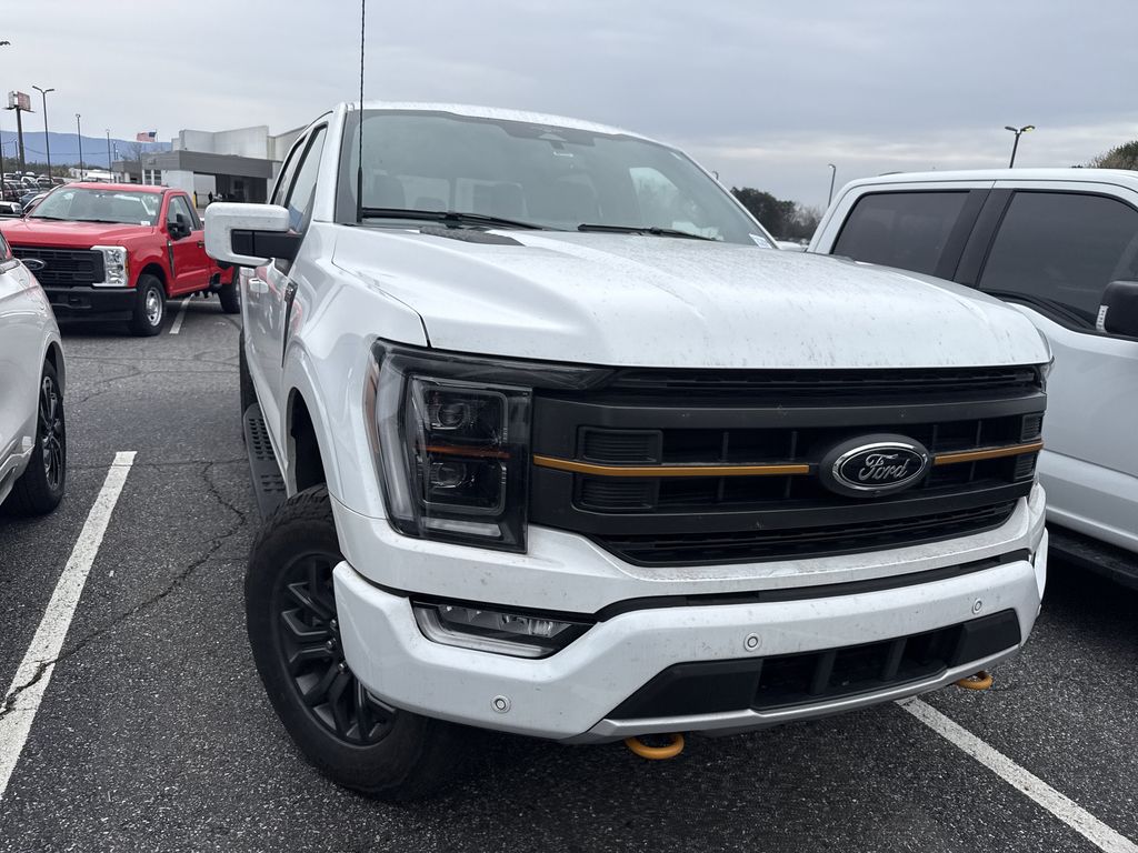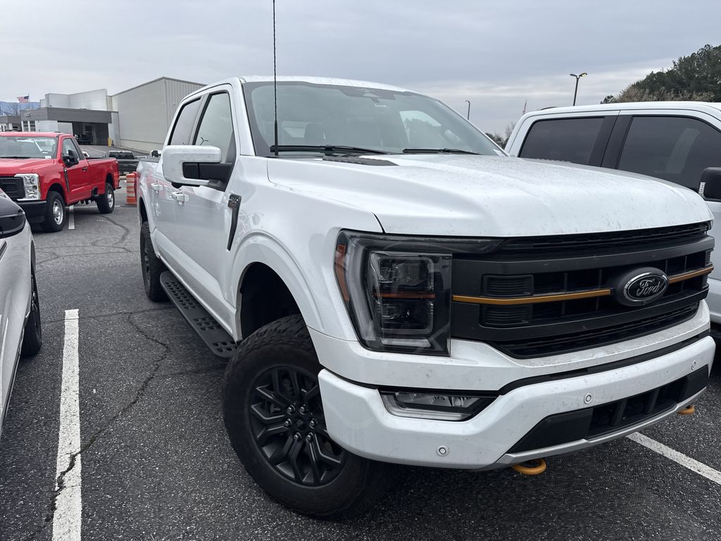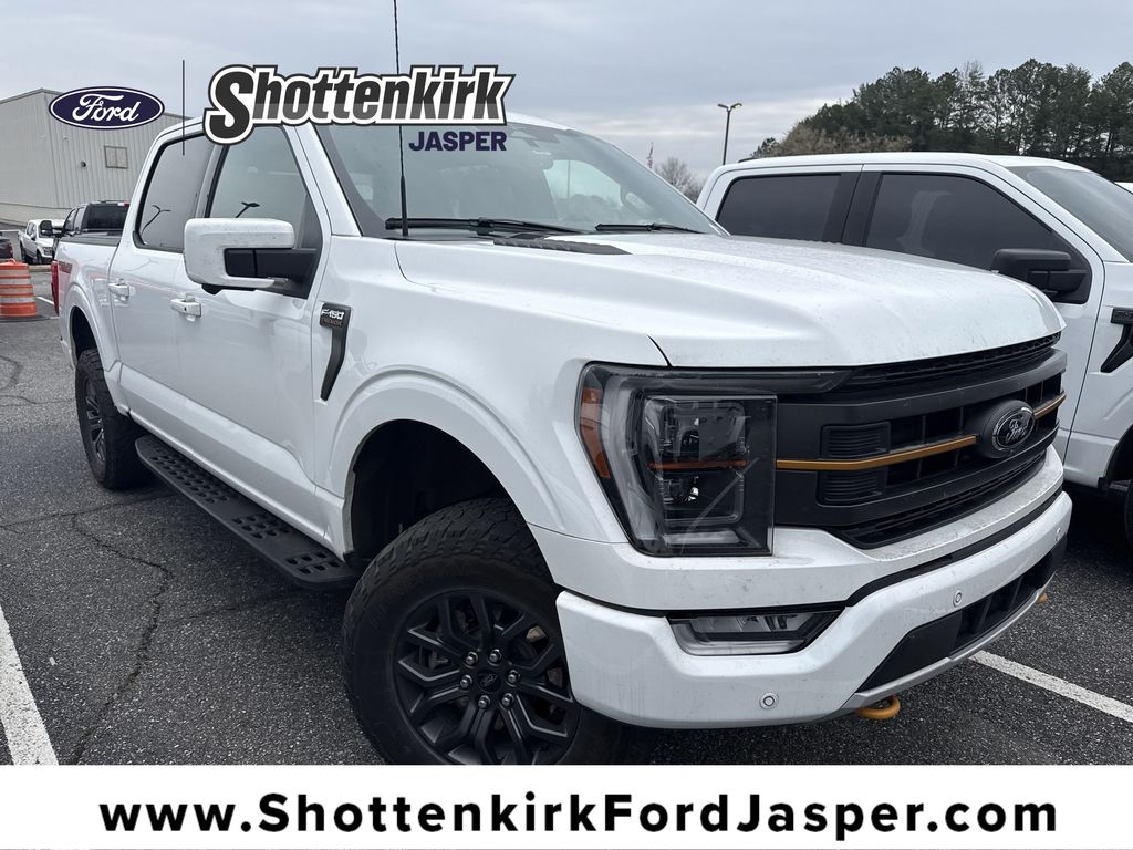 **Local Trade In**, **One Owner**, **Clean Carfax**, **Low Mileage**, Twin Panel Moonroof, **Leather interior**, **Heated/Cooled Seats**, **Front bucket seats with center console**, Apple car play/ Android auto, **Ford Sync Bluetooth**, **Bluetooth/Hands Free**, **Rear back up camera**, **Reverse Sensing System**, **Blind Spot Detection**, **Lane monitor**, **GPS/ Navigation**, **Drivers Power Seat**, **Passenger power seat**, **Power liftgate**, **Remote start**, **Fixed running boards/side steps**, **SIRIUS SAT. RADIO**, Forward collison/adaptive cruise control, B&O sound system, and EQUIPMENT GROUP 402A 7,525.00 TREMOR SERIES 360-DEGREE CAMERA PACKAGE LED SIDE-MIRROR SPOTLIGHTS POWER-SLIDING REAR WINDOW WIRELESS CHARGING PAD OPTIONAL EQUIPMENT/OTHER .18" ALLOY W/ DARK MATTE FINIS 3.5L V6 ECOBOOST NO CHARGE .275/70R 18 ALL-TERRAIN 3.73 ELECTRONIC LOCK RR AXLE NO CHARGE 7000# GVWR PACKAGE FRONT LICENSE PLATE BRACKET NO CHARGE ADVANCED SECURITY PACK REMOVAL- 50.00 50 STATE EMISSIONS NO CHARGE FORD CO-PILOT 360 ASSIST 2.0 NO CHARGE .CNCTD BLT-IN NAV (3-YR INC) TWIN PANEL MOONROOF 1,495.00 LINER-TRAY STYLE-W/CARPET MAT 200.00 INTERIOR WORK SURFACE 195.00 TRAILER TOW PACKAGE 445.00 .INTEGRATED TRAILER BRAKE CONT B&O SOUND SYSTEM, 8 SPKR FRONT AXLE W/TORSEN DIFF 500.00 CHMSL CAMERA REMOVAL- 175.00 BED UTILITY PACKAGE 995.00 .BOXLINK .POWER TAILGATE .TAILGATE STEP .LED BOX LIGHTING Equipment Group 402A High (12" Productivity Screen in Instrument Cluster, 2nd Row Heated Seats, 360 Degree Camera, Advanced Security Pack, Heated Steering Wheel, LED Projector w/Dynamic Bending Headlamps, Power Glass Sideview Mirr w/Body-Color Skull Caps, Power Tilt/Telescoping Steering Column w/Memory, Power-Adjustable Pedals w/Memory, Power-Sliding Rear Window, Pro Trailer Backup Assist & Pro Trailer Hitch Assist, Radio: B&O Sound System by Bang & Olufsen, Rain-Sensing Wipers, Unique Tremor Leather-Trimmed Bucket Seats, Universal Garage Door Opener, and Wireless Charging Pad), Ford Co-Pilot360 Assist 2.0 (Connected Built-In Navigation, Evasive Steering Assist, Intelligent Adaptive Cruise Control w/Stop & Go, Intersection Assist, and Speed Sign Recognition), GVWR: 7,000 lbs Payload Package, 4-Wheel Disc Brakes, 6 Speakers, ABS brakes, Air Conditioning, Alloy wheels, AM/FM radio: SiriusXM with 360L, Auto High-beam Headlights, Auto-dimming door mirrors, Automatic temperature control, Brake assist, Bumpers: body-color, Class IV Trailer Hitch Receiver, Compass, Delay-off headlights, Driver door bin, Dual front impact airbags, Dual front side impact airbags, Electronic Locking w/3.73 Axle Ratio, Electronic Stability Control, Emergency communication system: SYNC 4 911 Assist, Exterior Parking Camera Rear, Front anti-roll bar, Front Bucket Seats, Front Center Armrest, Front dual zone A/C, Front fog lights, Front reading lights, Front wheel independent suspension, Fully automatic headlights, Heated door mirrors, Heated front seats, Illuminated entry, Low tire pressure warning, Navigation system: Connected Navigation, Occupant sensing airbag, Outside temperature display, Overhead airbag, Overhead console, Panic alarm, Passenger door bin, Passenger vanity mirror, Power door mirrors, Power driver seat, Power passenger seat, Power steering, Power windows, Radio data system, Radio: AM/FM SiriusXM w/360L, Rear reading lights, Rear step bumper, Rear window defroster, Remote keyless entry, Security system, Speed control, Speed-sensing steering, Split folding rear seat, Steering wheel mounted audio controls, SYNC 4 w/Enhanced Voice Recognition, Tachometer, Telescoping steering wheel, Tilt steering wheel, Traction control, Trip computer, Turn signal indicator mirrors, Twin Panel Moonroof, Unique Sport Cloth 40/Console/40 Power Front Seat, Variably intermittent wipers, Voltmeter, and Wheels: 18" Alloy w/Dark Matte Finish Shottenkirk Ford of Jasper is pleased to offer you this exceptional 2023 Ford F-150. This Tremor F-150 Exterior is finished in Oxford White and the inter