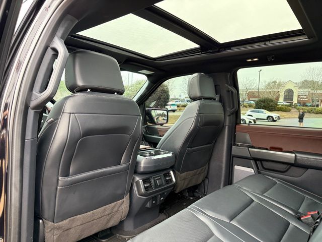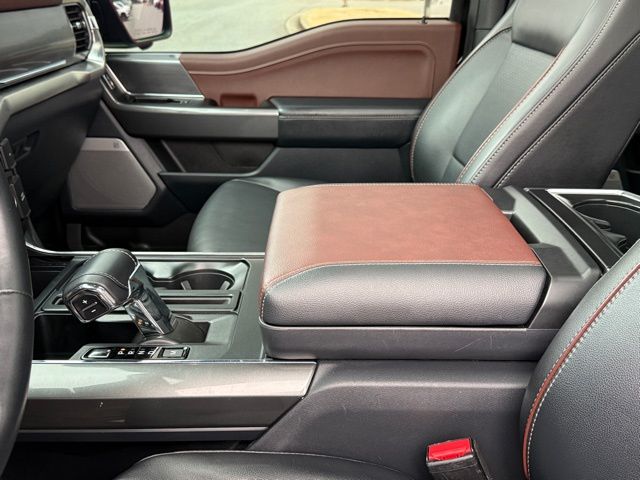 The interior of this F-150 is equally impressive, with luxurious leather-trimmed bucket seats, a premium B&O sound system, dual-zone automatic climate control, and a host of advanced technology features. The SYNC 4 infotainment system with enhanced voice recognition, wireless charging pad, and 360-degree camera system ensure you stay connected and aware of your surroundings.