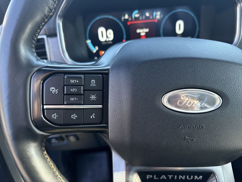 **One Owner**, **Low Mileage**, Twin Panel Moonroof, **Power Sunroof/Moonroof**, **Dual moonroof**, **Leather interior**, **Heated/Cooled Seats**, **Heated Seats, **Front bucket seats with center console**, Apple car play/ Android auto, **Ford Sync Bluetooth**, **Bluetooth/Hands Free**, **Rear back up camera**, **Reverse Sensing System**, **Blind Spot Detection**, **Lane monitor**, **GPS/ Navigation**, **2nd Row Heated Seats**, **Drivers Power Seat**, **FX4 Package**, **Passenger power seat**, **Power liftgate**, **Remote start**, Power running boards, **SIRIUS SAT. RADIO**, Forward collison/adaptive cruise control, B&O sound system, and EQUIPMENT GROUP 701A 3,950.00 PLATINUM SERIES B&O UNLEASHED SOUND SYS 18SPK BED UTILITY PACKAGE LED BOX LIGHTING BOXLINK TAILGATE STEP POWER TAILGATE FORD BLUECRUISE 1.0 360-DEGREE CAMERA PACKAGE OPTIONAL EQUIPMENT/OTHER .20" POLISHED ALUMINUM WHEELS 3.5L V6 ECOBOOST 740.00 .275/60R20 BSW ALL-TERRAIN 3.55 ELECTRONIC LOCK RR AXLE NO CHARGE 7050# GVWR PACKAGE FRONT LICENSE PLATE BRACKET NO CHARGE ADVANCED SECURITY PACK REMOVAL - 50.00 50 STATE EMISSIONS NO CHARGE TWIN PANEL MOONROOF 1,495.00 LINER-TRAY STYLE-W/CARPET MAT NO CHARGE INTERIOR WORK SURFACE 195.00 MAX TRAILER TOW PACKAGE 2,040.00 FX4 OFF-ROAD PACKAGE 1,095.00 .SKID PLATES CHMSL CAMERA REMOVAL - 175.00 EXTENDED RANGE 36GAL FUEL TANK NO CHARGE BLUECRUISE Bed Utility Package (BoxLink, LED Box Lighting, Power Tailgate, and Tailgate Step w/Tailgate Work Surface), Equipment Group 701A High (360 Degree Camera, Pro Trailer Backup Assist & Pro Trailer Hitch Assist, and Radio: B&O Unleashed Sound System by Bang & Olufsen), Ford BlueCruise 1.0 (Active Park Assist 2.0), FX4 Off-Road Package (4x4 FX4 Off-Road Bodyside Decal, Hill Descent Control, Monotube Rear Shocks, Off-Road Tuned Front Shock Absorbers, Rock Crawl Mode, and Tray Style Floor Liner), Max Trailer Tow Package (Class IV Trailer Hitch Receiver, Extended Range 36 Gallon Fuel Tank, and Integrated Trailer Brake Controller), Trailer Tow Package, 20" Polished Aluminum Wheels, 4-Wheel Disc Brakes, 8 Speakers, ABS brakes, Active Park Assist 2.0 Removal, Adjustable pedals, Air Conditioning, Alloy wheels, AM/FM radio: SiriusXM with 360L, Auto High-beam Headlights, Auto tilt-away steering wheel, Auto-dimming door mirrors, Auto-dimming Rear-View mirror, Automatic temperature control, Brake assist, Bumpers: body-color, Center High-Mounted Stop Lamp CHMSL Camera Removal, Compass, Delay-off headlights, Driver door bin, Driver vanity mirror, Dual front impact airbags, Dual front side impact airbags, Electronic Locking w/3.55 Axle Ratio, Electronic Stability Control, Emergency communication system: SYNC 4 911 Assist, Exterior Parking Camera Rear, Front anti-roll bar, Front Bucket Seats, Front Center Armrest, Front dual zone A/C, Front fog lights, Front reading lights, Front wheel independent suspension, Fully automatic headlights, Garage door transmitter, Heated door mirrors, Heated front seats, Heated rear seats, Heated steering wheel, Illuminated entry, Inclination/Intrusion Sensor Removal, Interior Work Surface, LED Sideview Mirror Spotlights, Low tire pressure warning, Memory seat, Multicontour Seats w/Active Motion Removal, Occupant sensing airbag, Outside temperature display, Overhead airbag, Overhead console, Panic alarm, Passenger door bin, Passenger vanity mirror, Pedal memory, Power door mirrors, Power driver seat, Power passenger seat, Power steering, Power windows, Radio data system, Radio: B&O Sound System by Bang & Olufsen, Rain sensing wipers, Rear reading lights, Rear seat center armrest, Rear step bumper, Rear window defroster, Remote keyless entry, Security system, Speed control, Speed-sensing steering, Split folding rear seat, Steering wheel memory, Steering wheel mounted audio controls, SYNC 4 w/Enhanced Voice Recognition, Tachometer, Telescoping steering wheel, Tilt steering wheel, Traction control, Trip computer, Turn signal indicator mirrors, Twin Panel Moonroof, Unique Multi-