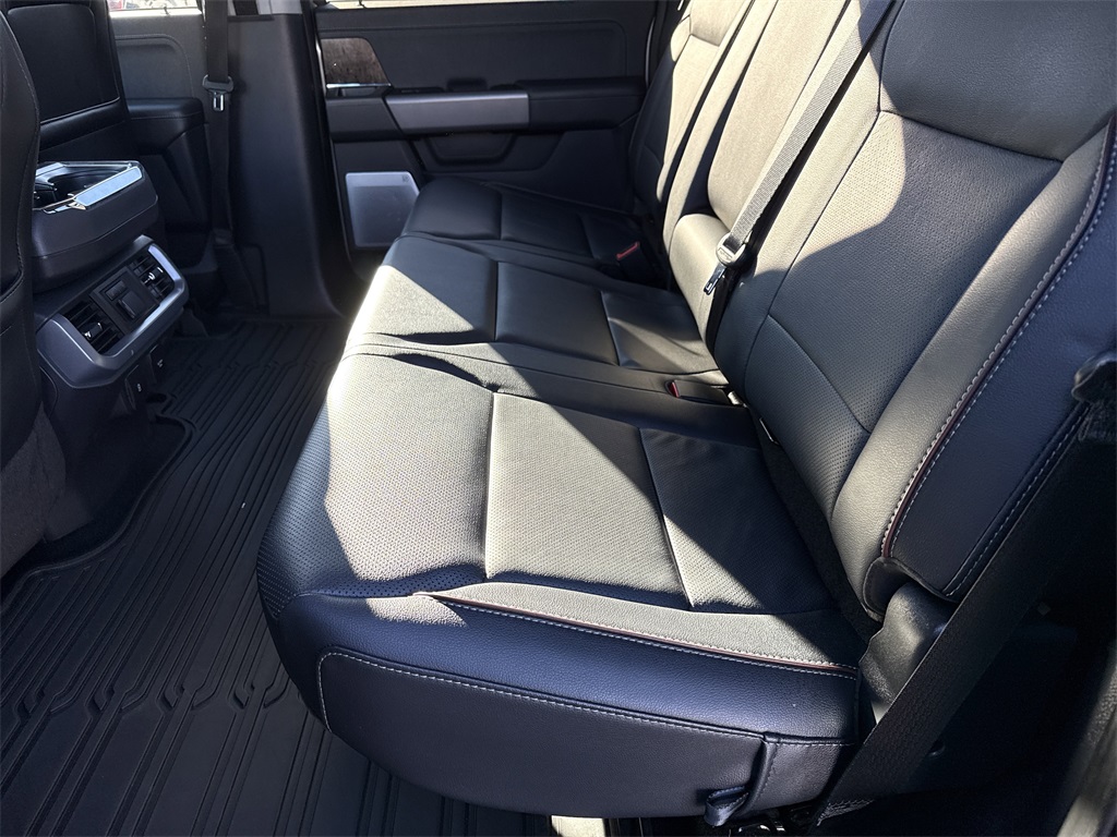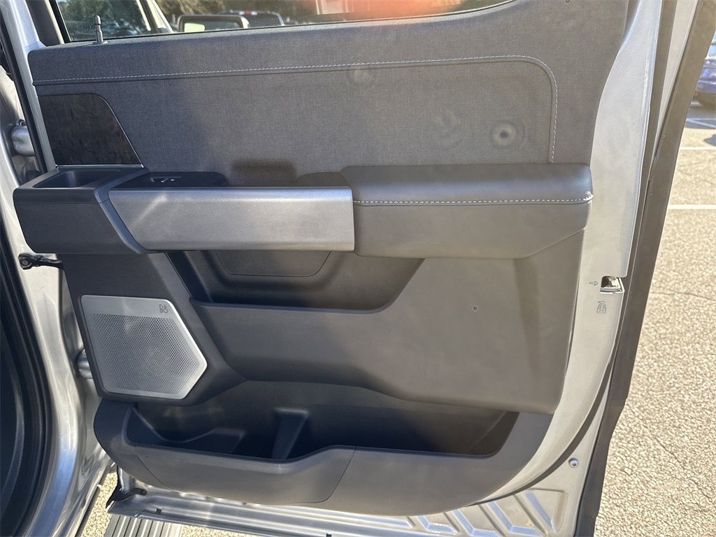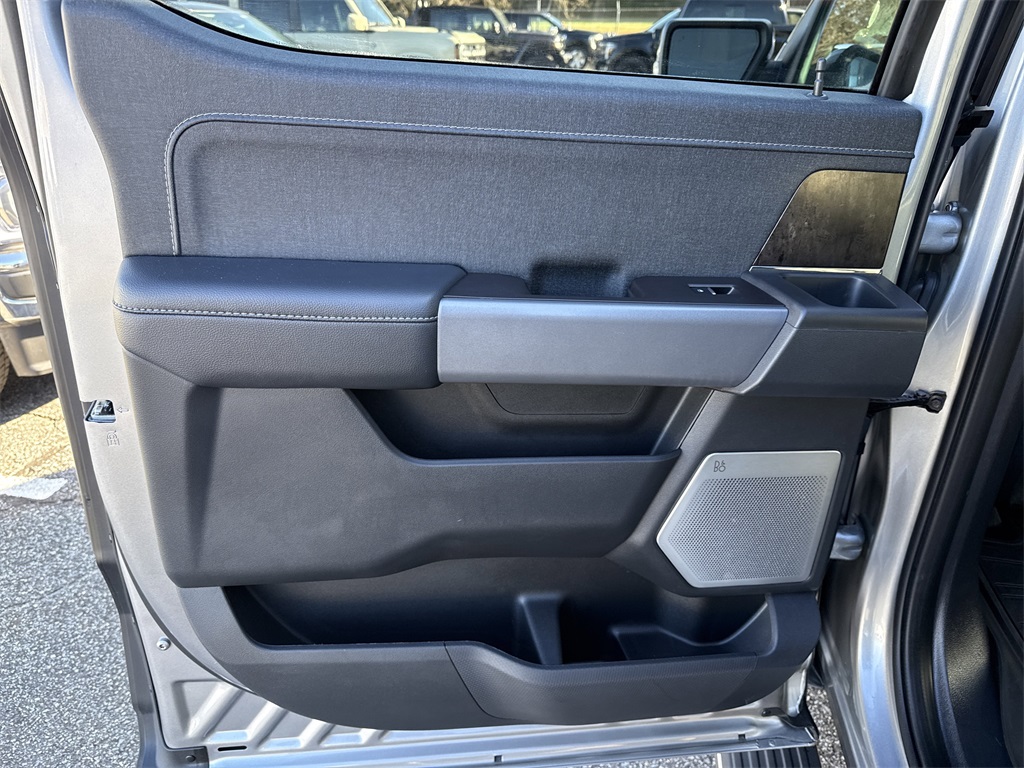 **One Owner**, **Clean Carfax**, Twin Panel Moonroof, **Panoramic Vista Roof**, **Leather interior**, **Heated/Cooled Seats**, **Heated Seats, **Front bucket seats with center console**, Apple car play/ Android auto, **Ford Sync Bluetooth**, **Bluetooth/Hands Free**, **Rear back up camera**, **Reverse Sensing System**, **Blind Spot Detection**, **Lane monitor**, **Drivers Power Seat**, **FX4 Package**, **Passenger power seat**, **Remote start**, Power running boards, **SIRIUS SAT. RADIO**, Forward collison/adaptive cruise control, and B&O sound system Bed Utility Package (BoxLink, LED Box Lighting, Power Tailgate, and Tailgate Step w/Tailgate Work Surface), Equipment Group 502A High (2nd Row Heated Seats, LED Projector w/Dynamic Bending Headlamps, Power Tilt/Telescoping Steering Column w/Memory, Rain-Sensing Wipers, Wheels: 20" Chrome-Like PVD, and Wireless Charging Pad), Ford Co-Pilot360 Assist 2.0 (Connected Built-In Navigation, Evasive Steering Assist, Intelligent Adaptive Cruise Control w/Stop & Go, Intersection Assist, and Speed Sign Recognition), FX4 Off-Road Package (4x4 FX4 Off-Road Bodyside Decal, Hill Descent Control, Monotube Rear Shocks, Off-Road Tuned Front Shock Absorbers, and Rock Crawl Mode), GVWR: 7,350 lbs Payload Package, Trailer Tow Package (Class IV Trailer Hitch Receiver, Integrated Trailer Brake Controller, and Pro Trailer Backup Assist & Pro Trailer Hitch Assist), 360 Degree Camera, 4-Wheel Disc Brakes, 8 Speakers, ABS brakes, Adjustable pedals, Air Conditioning, AM/FM radio: SiriusXM with 360L, Auto High-beam Headlights, Auto Start-Stop Removal (DISC), Auto-dimming door mirrors, Auto-dimming Rear-View mirror, Automatic temperature control, Brake assist, Bumpers: chrome, Chrome wheels, Compass, Delay-off headlights, Driver door bin, Driver vanity mirror, Dual front impact airbags, Dual front side impact airbags, Electronic Locking w/3.73 Axle Ratio, Electronic Stability Control, Emergency communication system: SYNC 4 911 Assist, Exterior Parking Camera Rear, Front anti-roll bar, Front Bucket Seats, Front Center Armrest, Front dual zone A/C, Front fog lights, Front reading lights, Front wheel independent suspension, Fully automatic headlights, Garage door transmitter, Heated door mirrors, Heated front seats, Heated steering wheel, Illuminated entry, Inclination/Intrusion Sensor Removal, Interior Work Surface, Leather-Trimmed Bucket Seats, LED Sideview Mirror Spotlights, Low tire pressure warning, Memory seat, Occupant sensing airbag, Outside temperature display, Overhead airbag, Overhead console, Panic alarm, Passenger door bin, Passenger vanity mirror, Pedal memory, Power door mirrors, Power driver seat, Power passenger seat, Power steering, Power windows, Power-Deployable Running Boards, Pro Power Onboard - 7.2KW, Radio data system, Radio: B&O Sound System by Bang & Olufsen, Radio: B&O Unleashed Sound System by Bang & Olufsen, Rear reading lights, Rear seat center armrest, Rear step bumper, Rear window defroster, Remote keyless entry, Security system, Speed control, Speed-sensing steering, Split folding rear seat, Steering Wheel Heat Removal (DISC), Steering wheel mounted audio controls, SYNC 4 w/Enhanced Voice Recognition, Tachometer, Telescoping steering wheel, Tilt steering wheel, Traction control, Tray Style Floor Liner (47W), Trip computer, Turn signal indicator mirrors, Twin Panel Moonroof, Variably intermittent wipers, Ventilated front seats, and Voltmeter Shottenkirk Ford of Jasper is pleased to offer you this exceptional 2023 Ford F-150. This Lariat F-150 Exterior is finished in Iconic Silver Metallic and the interior is finished in Black w/Leather-Trimmed Bucket Seats. CARFAX One-Owner. Clean CARFAX.